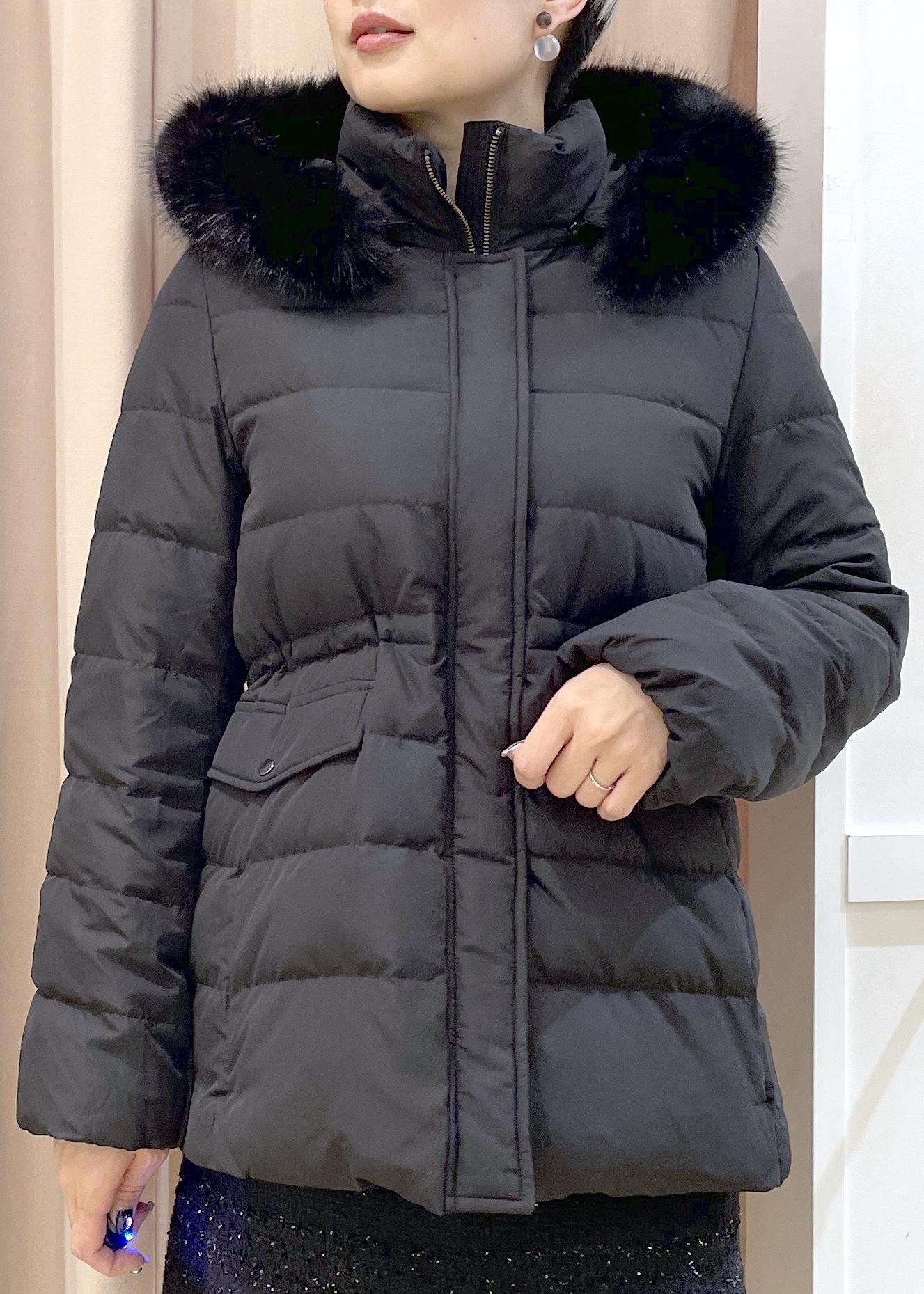着膨れしにくいスッキリとしたシルエットのフェミニンなダウンコートです。