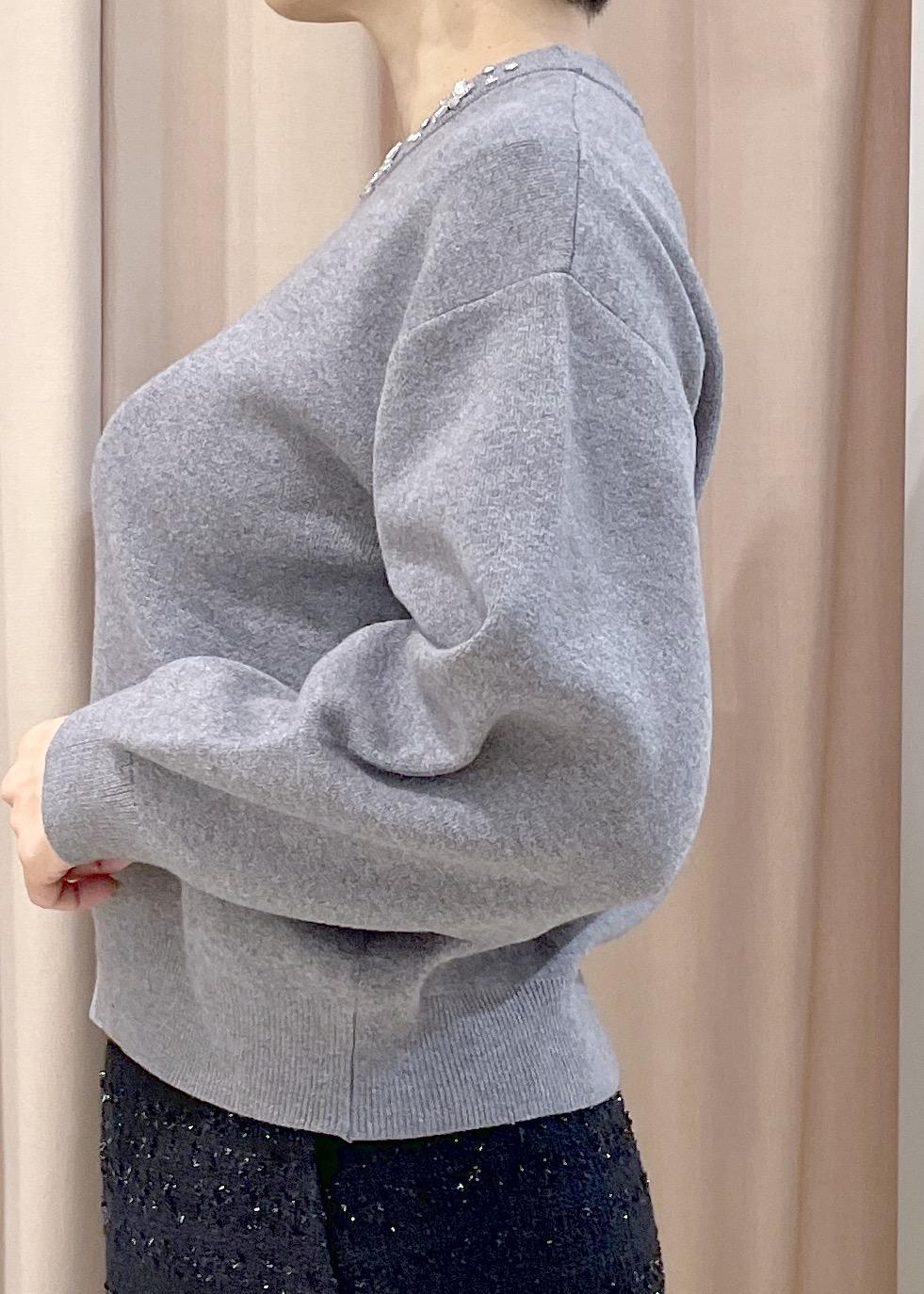 首元のキラキラビジューが大人かわいい一枚です。
