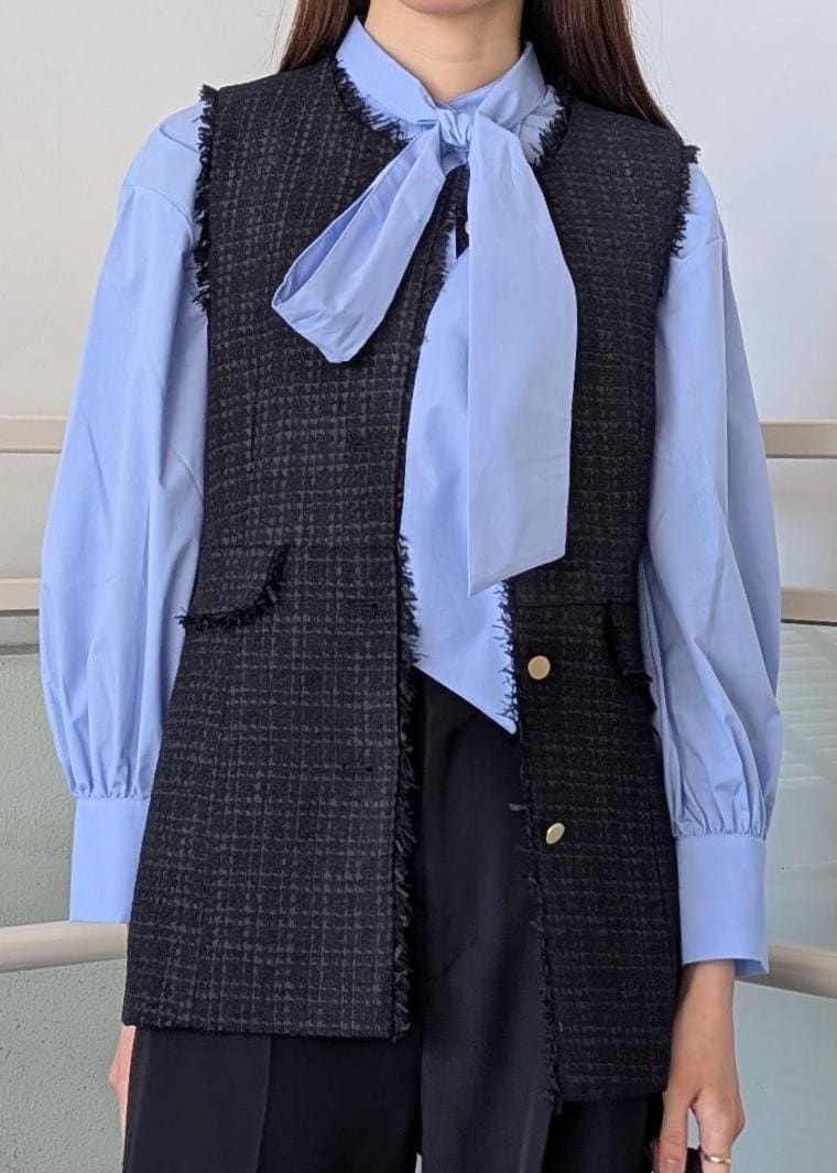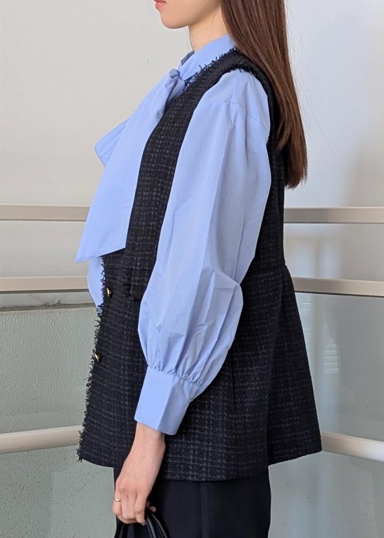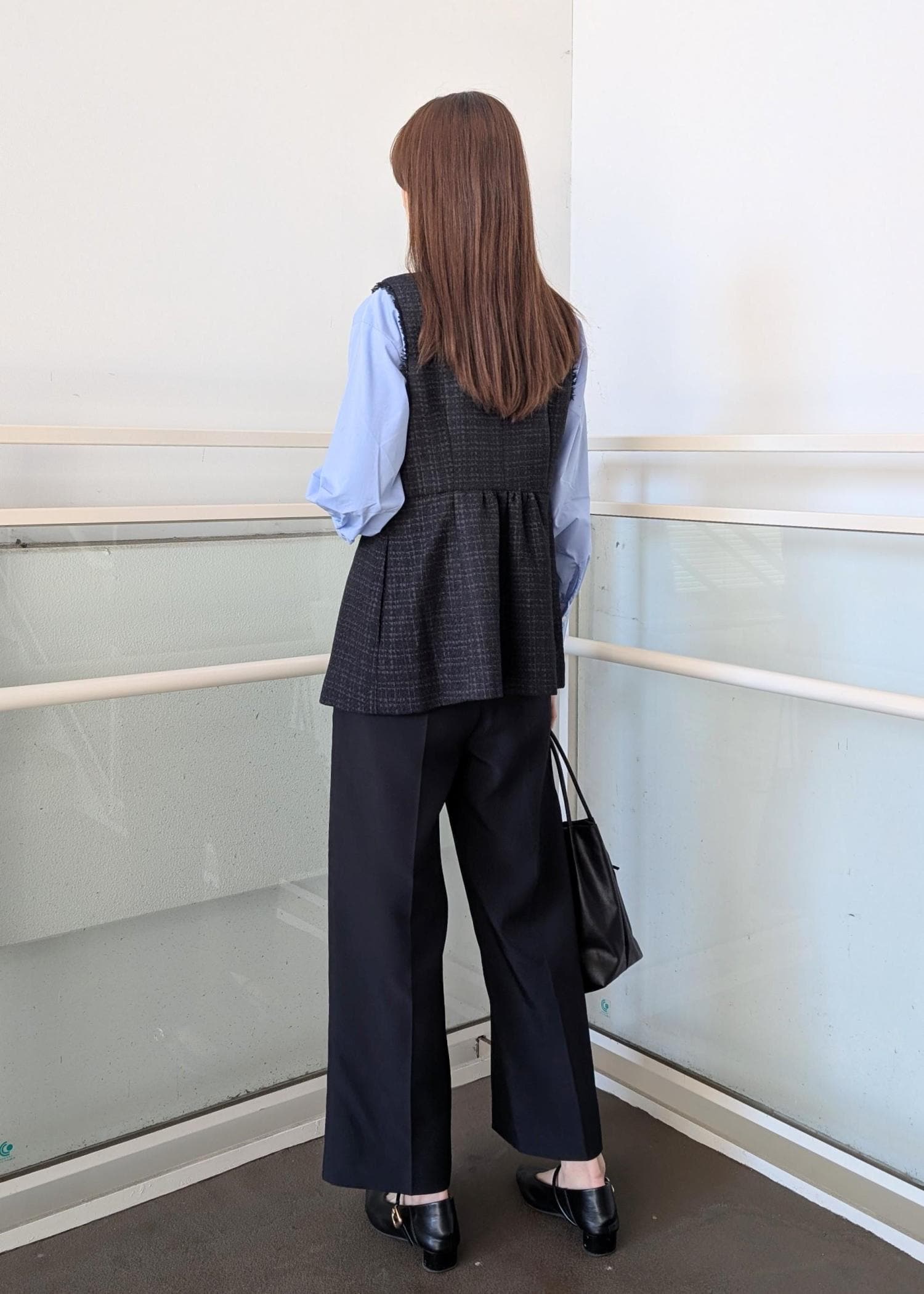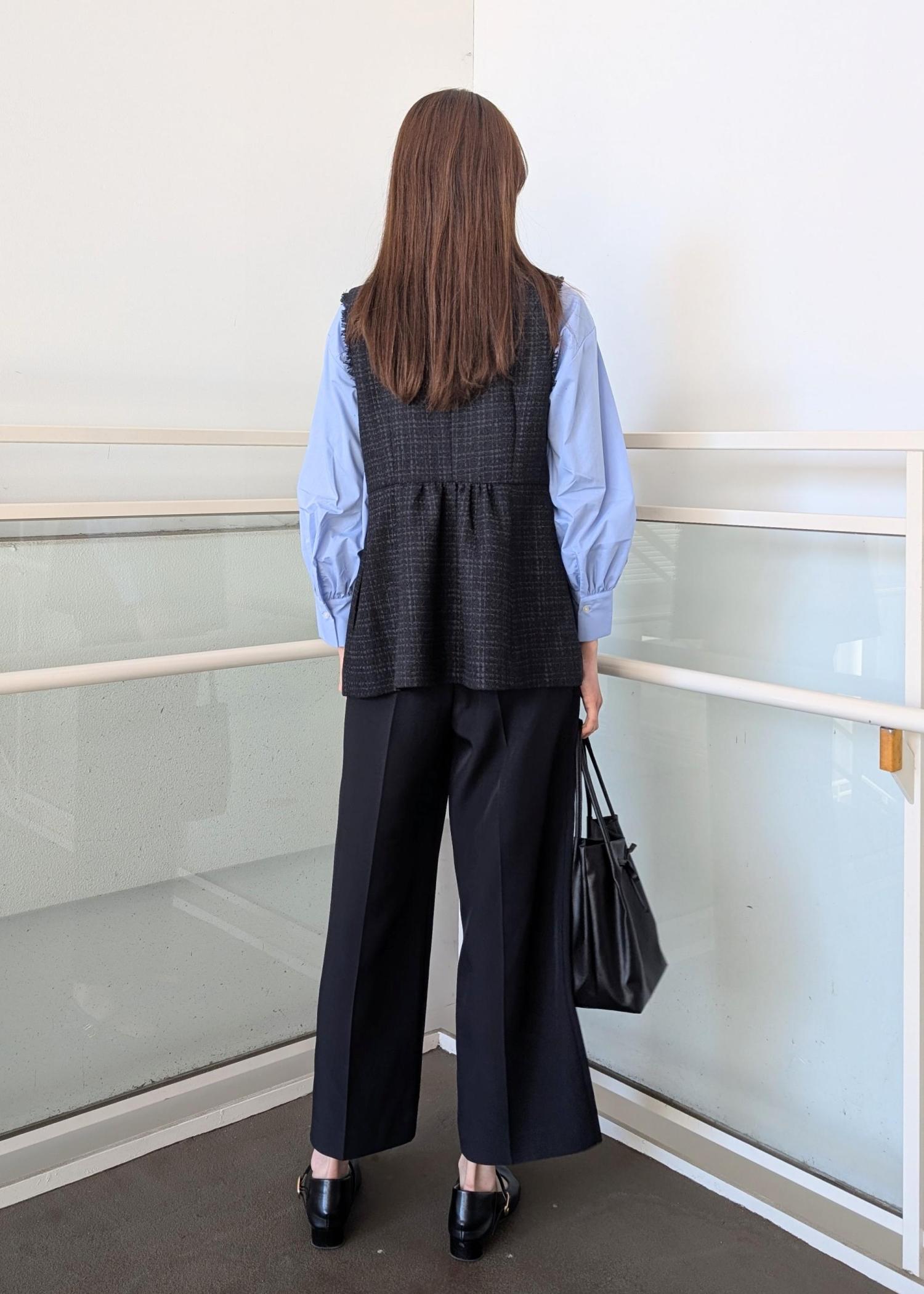 ROPÉ PICNIC【WEB限定カラー】ツイード金ボタンジレベスト/セレモニー対応・リンクコーデネイビー / F¥8,998レビューヒップが完全に隠れるくらいの丈があります。ボウタイブラウスとのレイヤードがおすすめです。