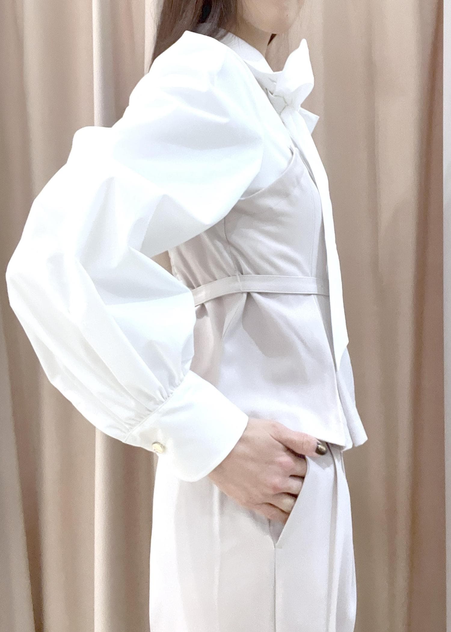 胸周りはピッタリしたサイズ感です。リボンとベルトは取り外し可能です。