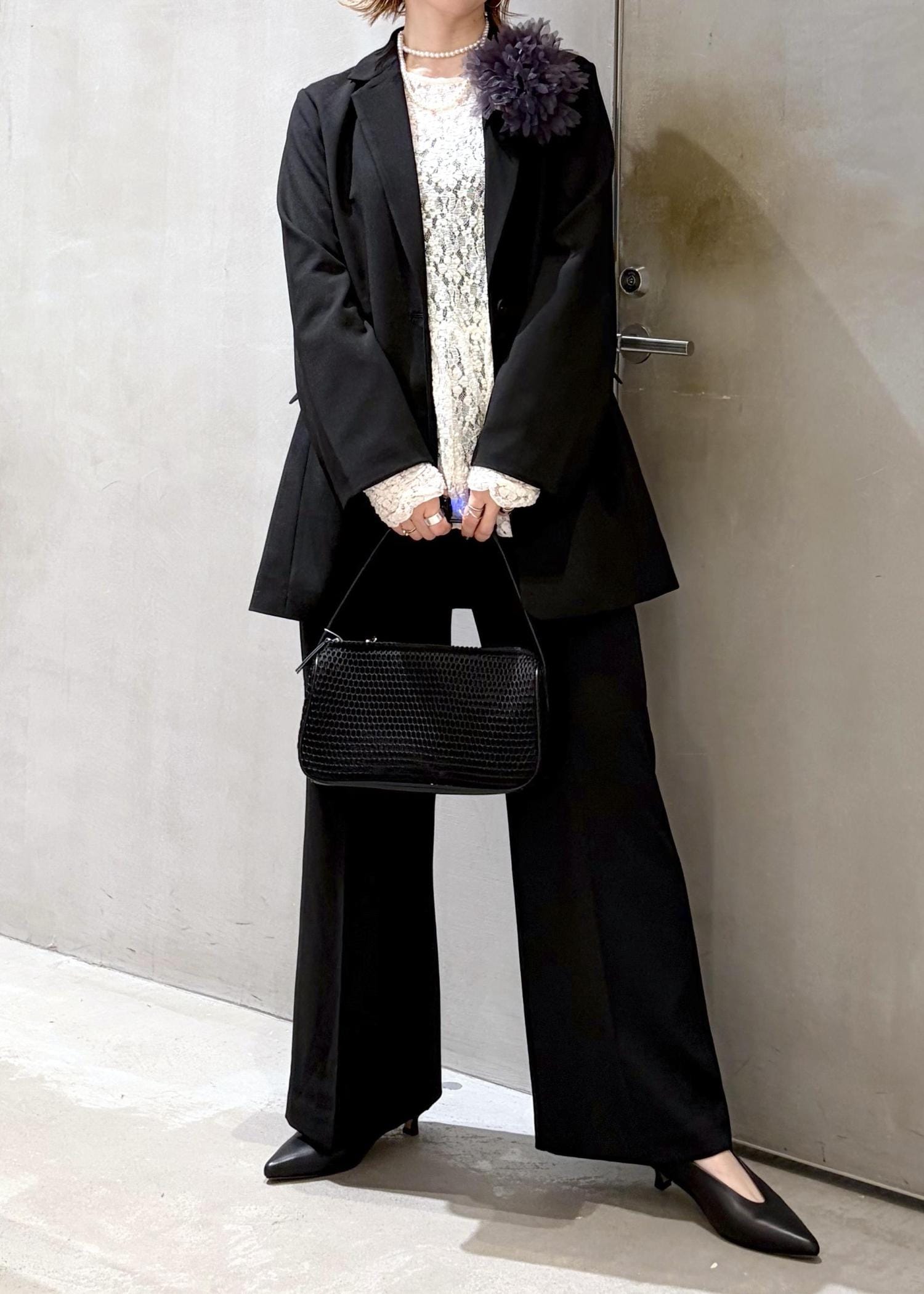 もしくはインナーも変えずに、バックとコサージュのカラーを変えるだけでも雰囲気を変えられ、どちらの式典でも品良く、格好良くご出席いただけますよ。