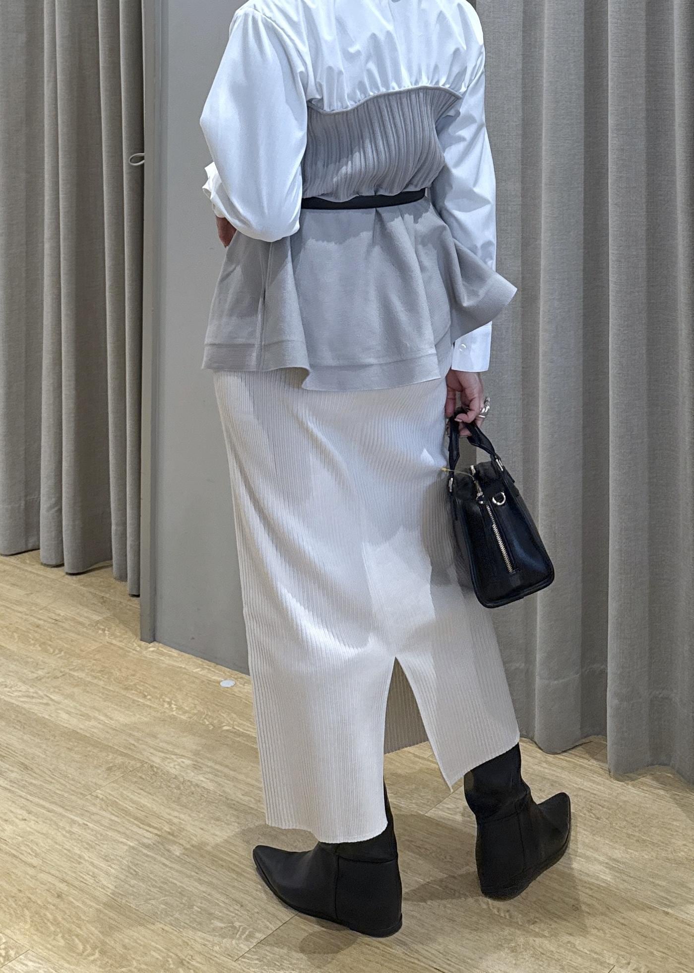 ROPÉ PICNICシャツドッキングペプラムニットライトグレー / F¥5,995レビューペプラムラインのビスチェがドッキングしたシャツ。