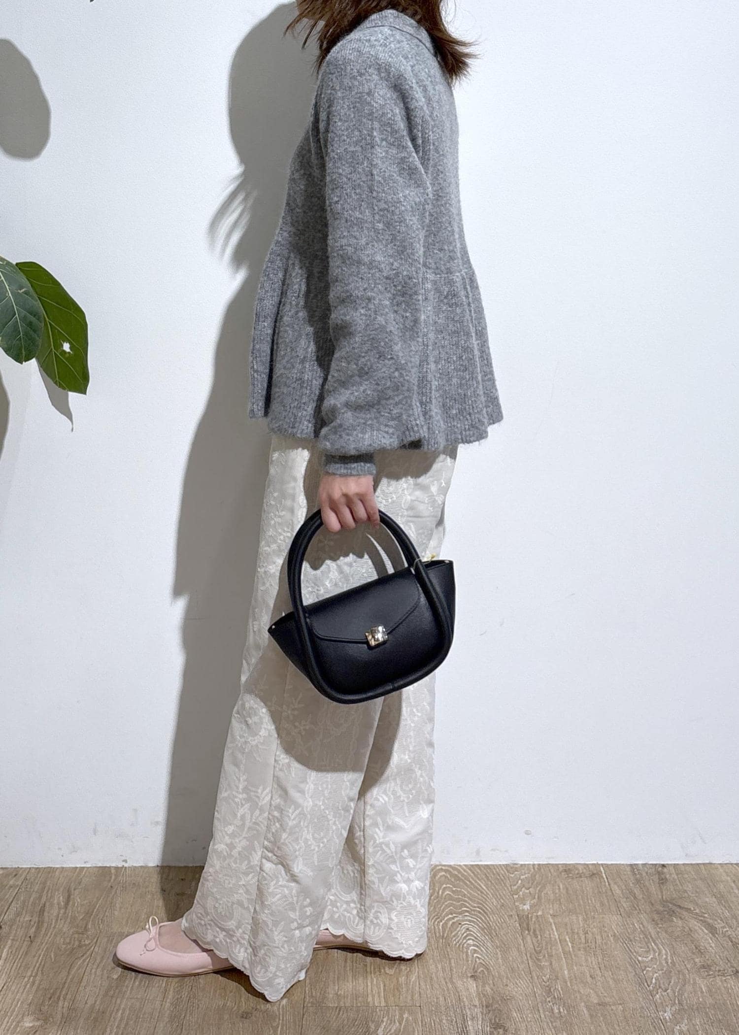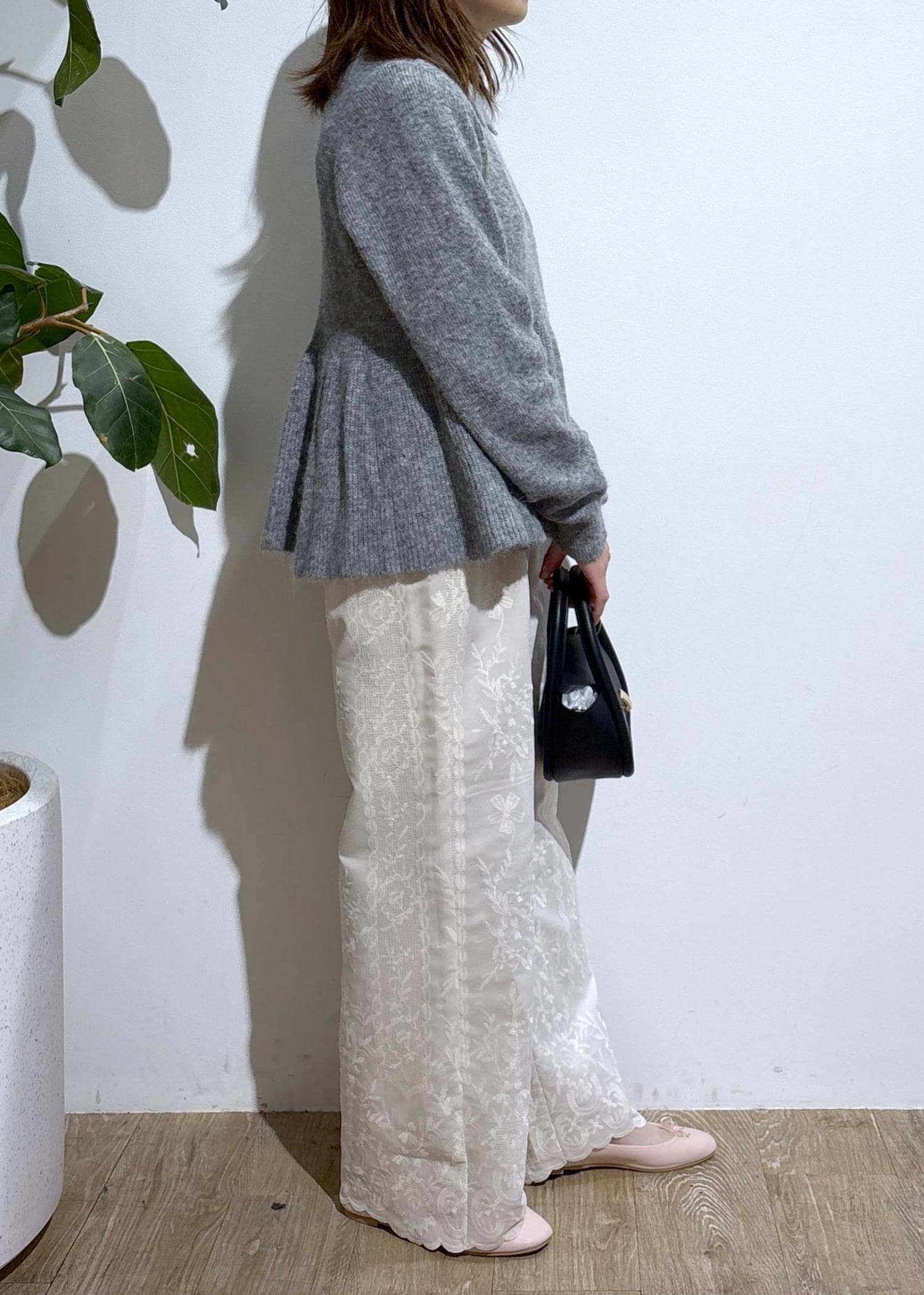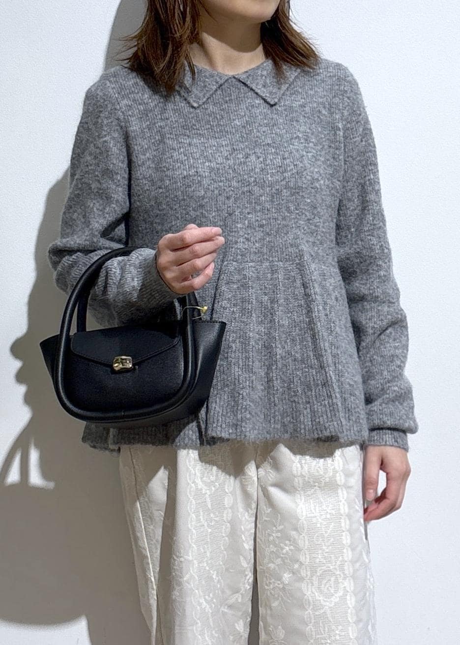 ふんわり柔らかいアンゴラ混素材のペプラムニット。