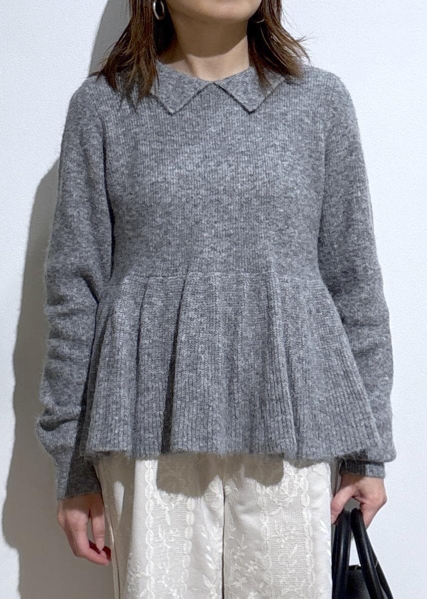 ROPÉ PICNICアンゴラ混ペプラムニットライトグレー / F¥2,998レビュー襟付きのペプラムデザインが新鮮なアンゴラ混ニット。