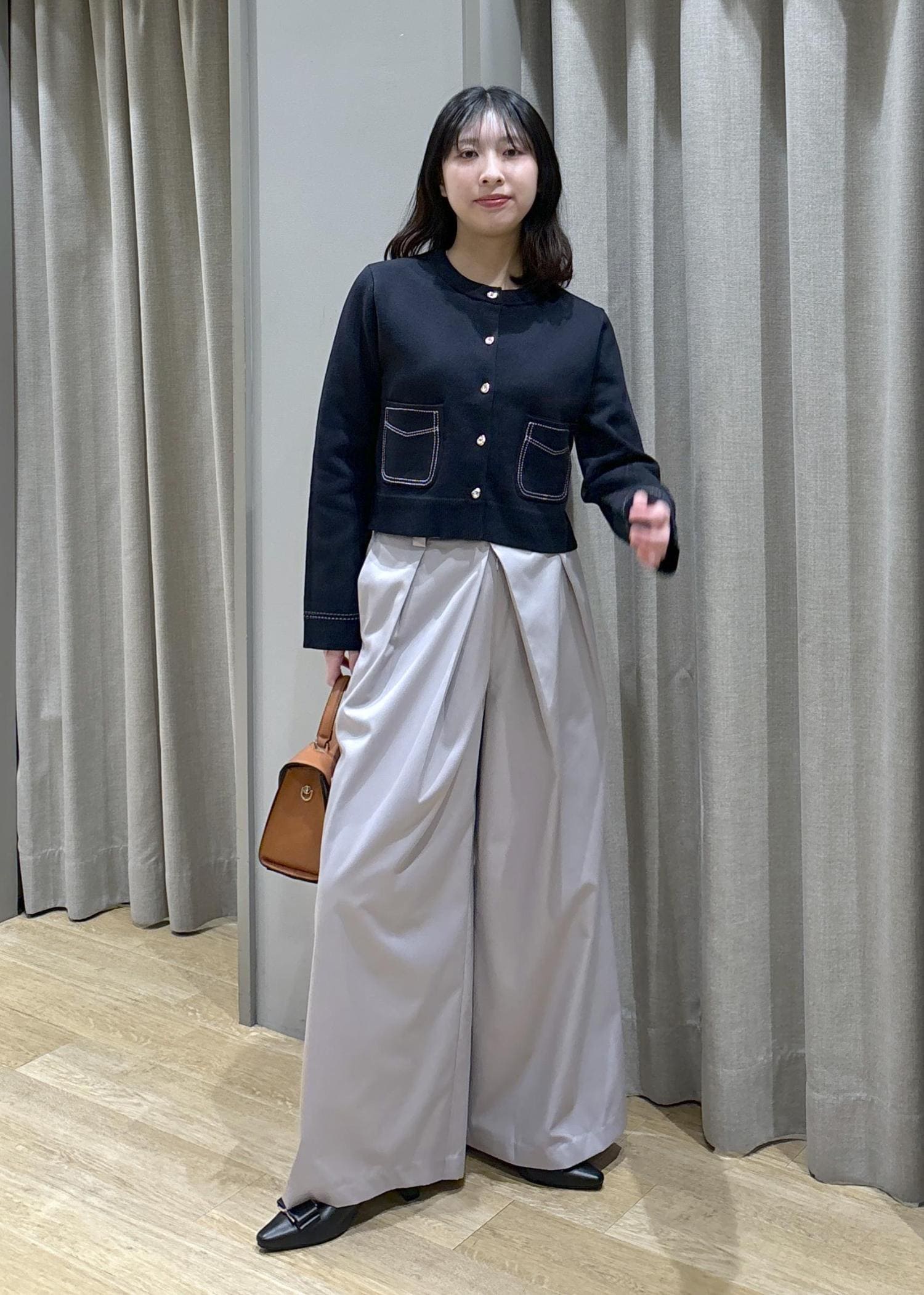 VISフロントタックデザインワイドパンツライトグレー / M¥6,589レビュー身長158cm、Mサイズ着用。