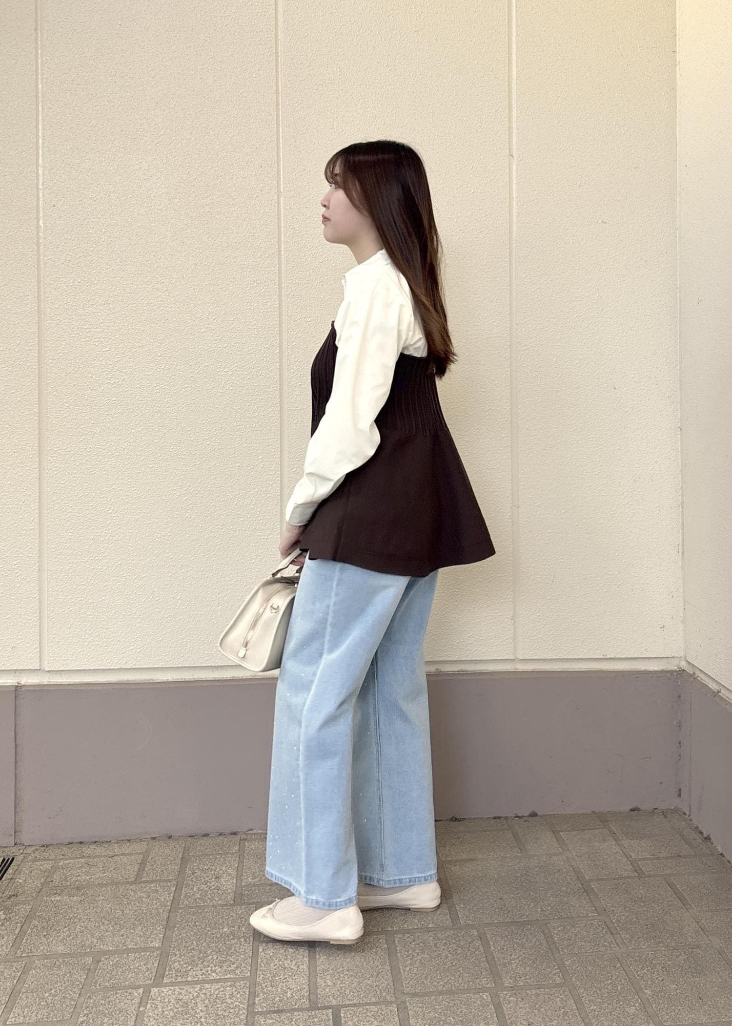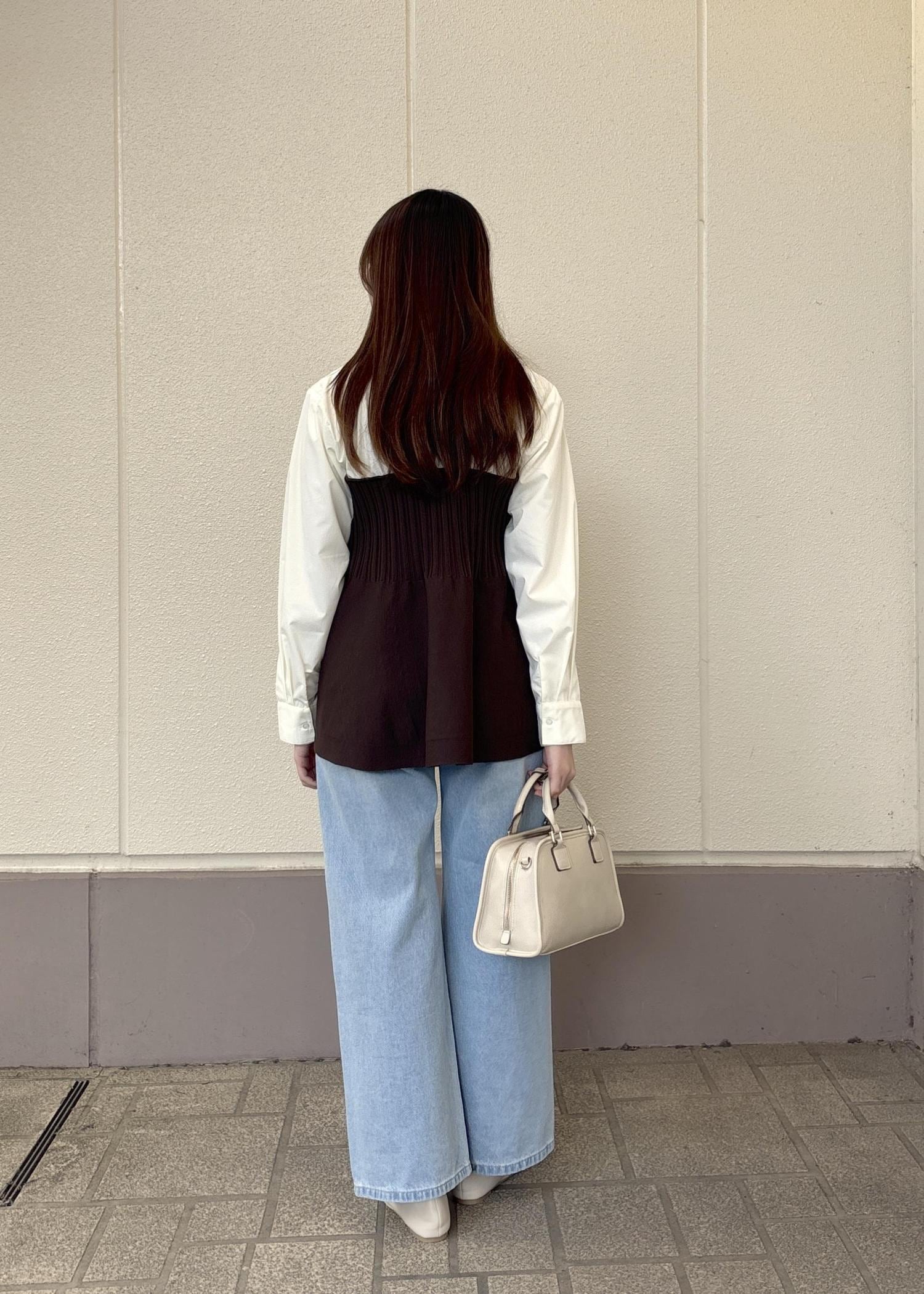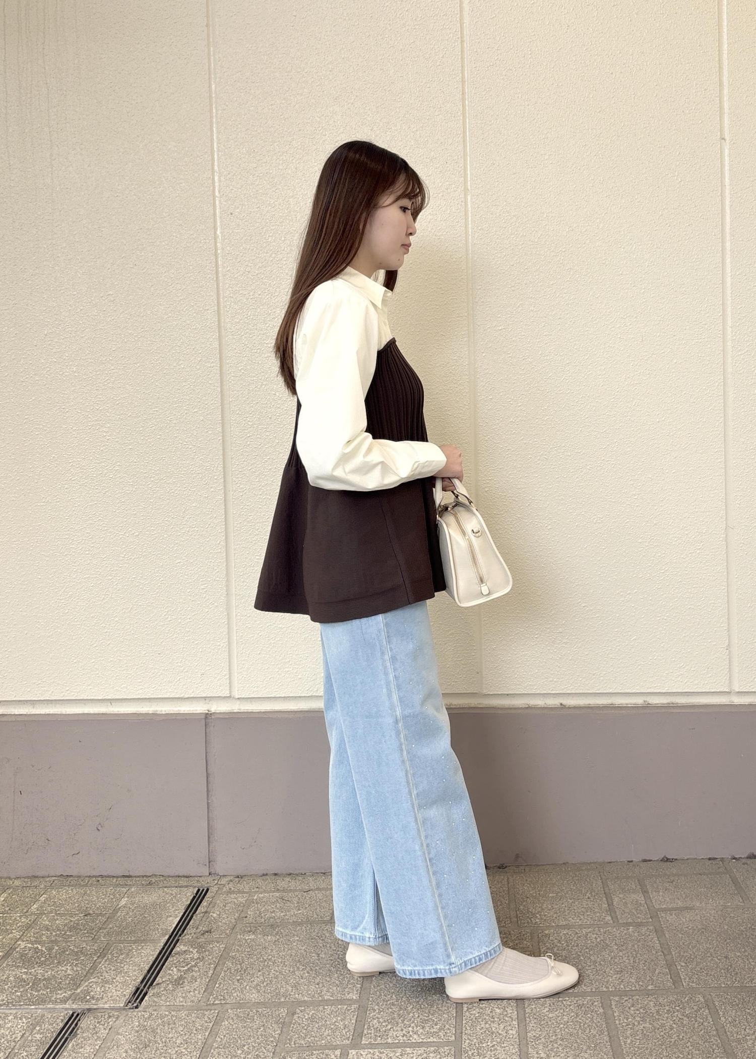 ペプラムになっているので、ボトムスはすっきりめのデザインだとバランスがとりやすいです◎
