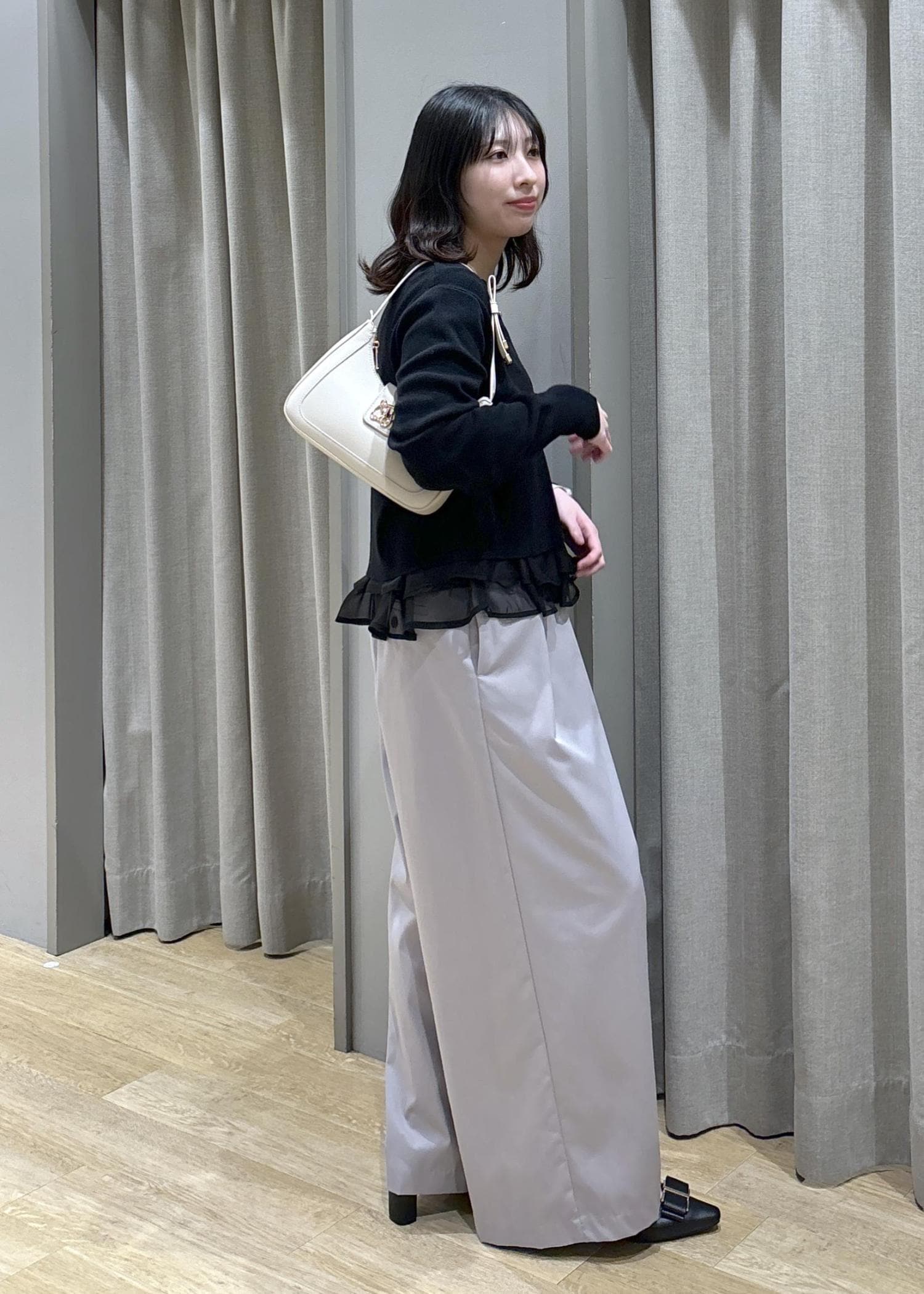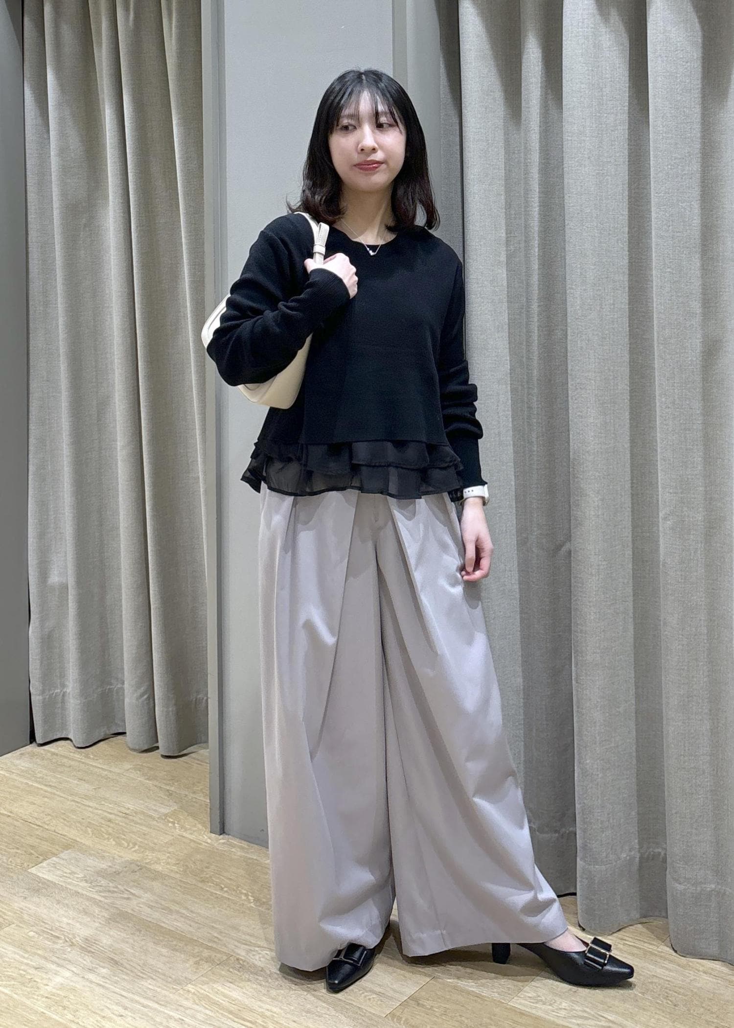 VISフロントタックデザインワイドパンツライトグレー / M¥6,589レビュー身長158cm、Mサイズ着用。