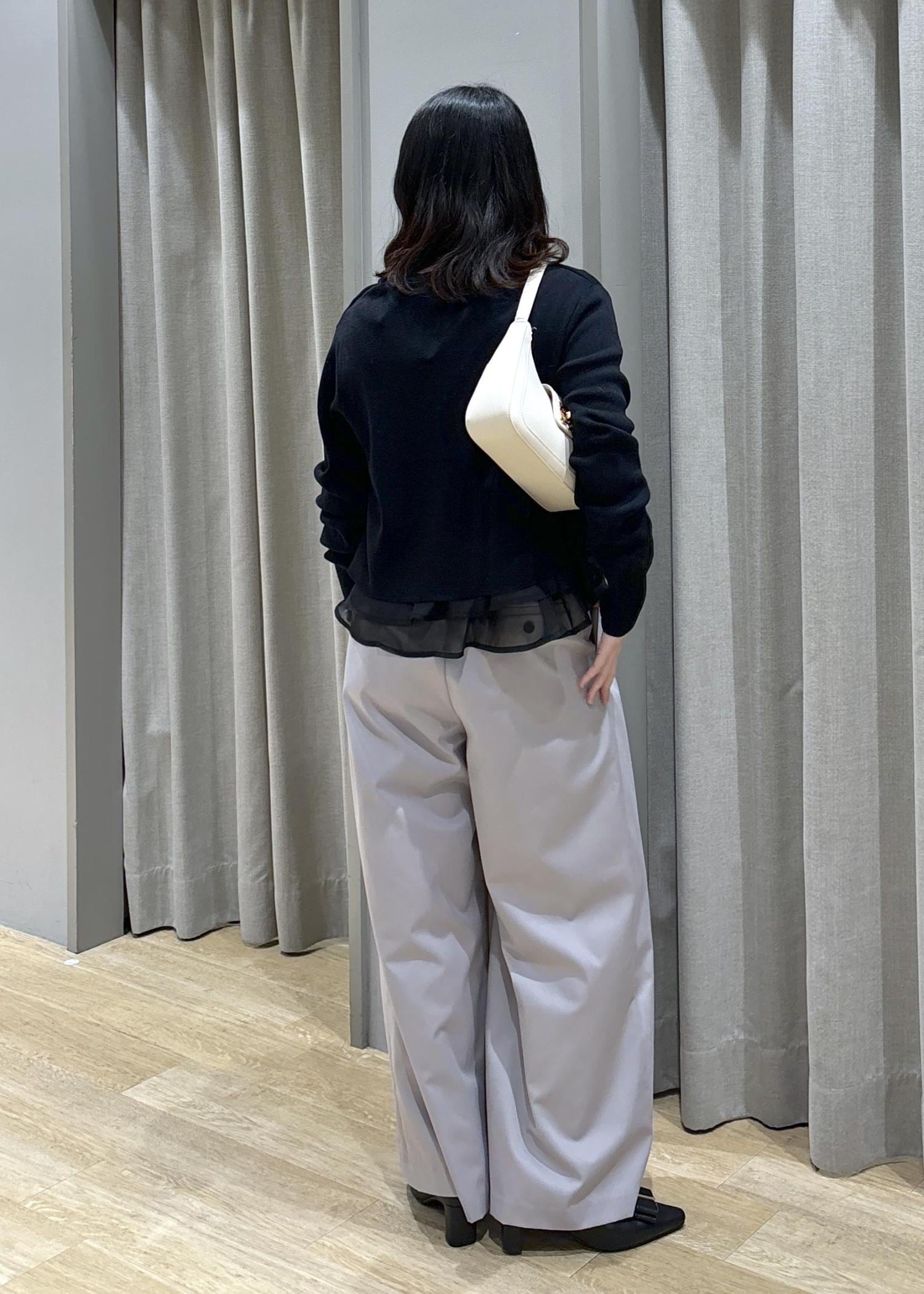 オーガンジードッキングニット×フロントタックパンツ