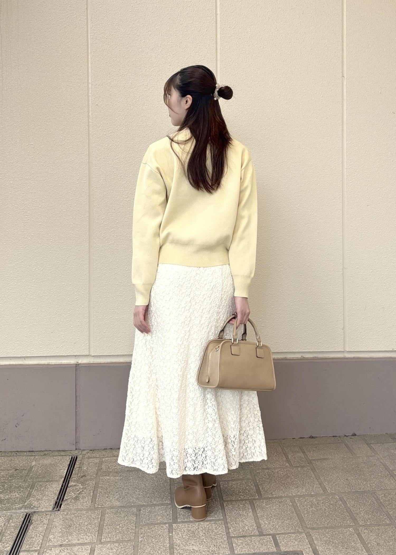 ボトムスは総レースのマーメイドスカートで上品なイメージで組んでみましたが、デニムなど下に合わせるもの次第でカジュアルにも仕上がります!