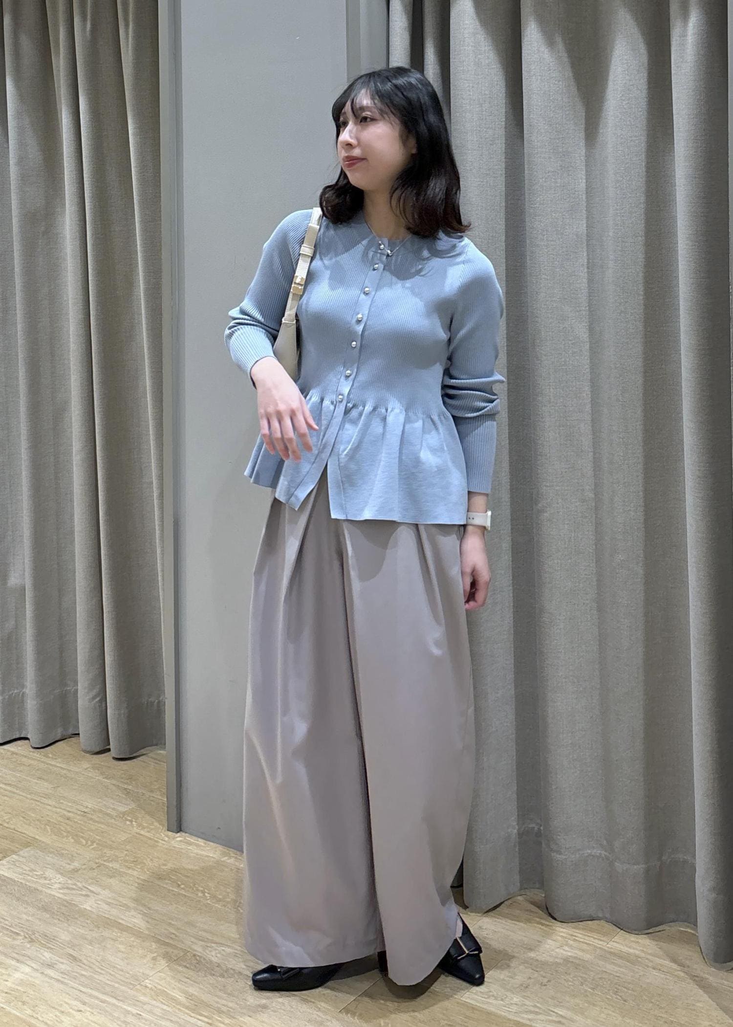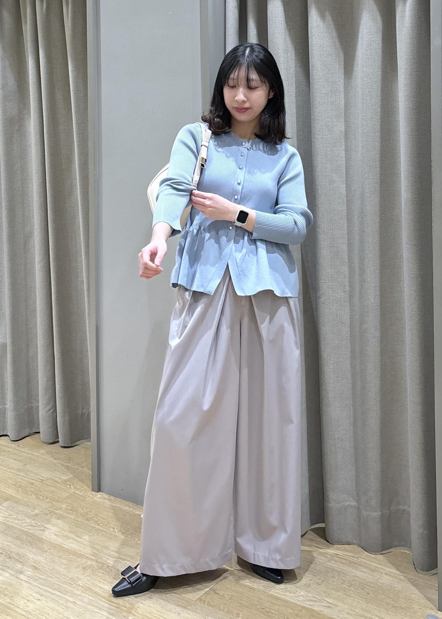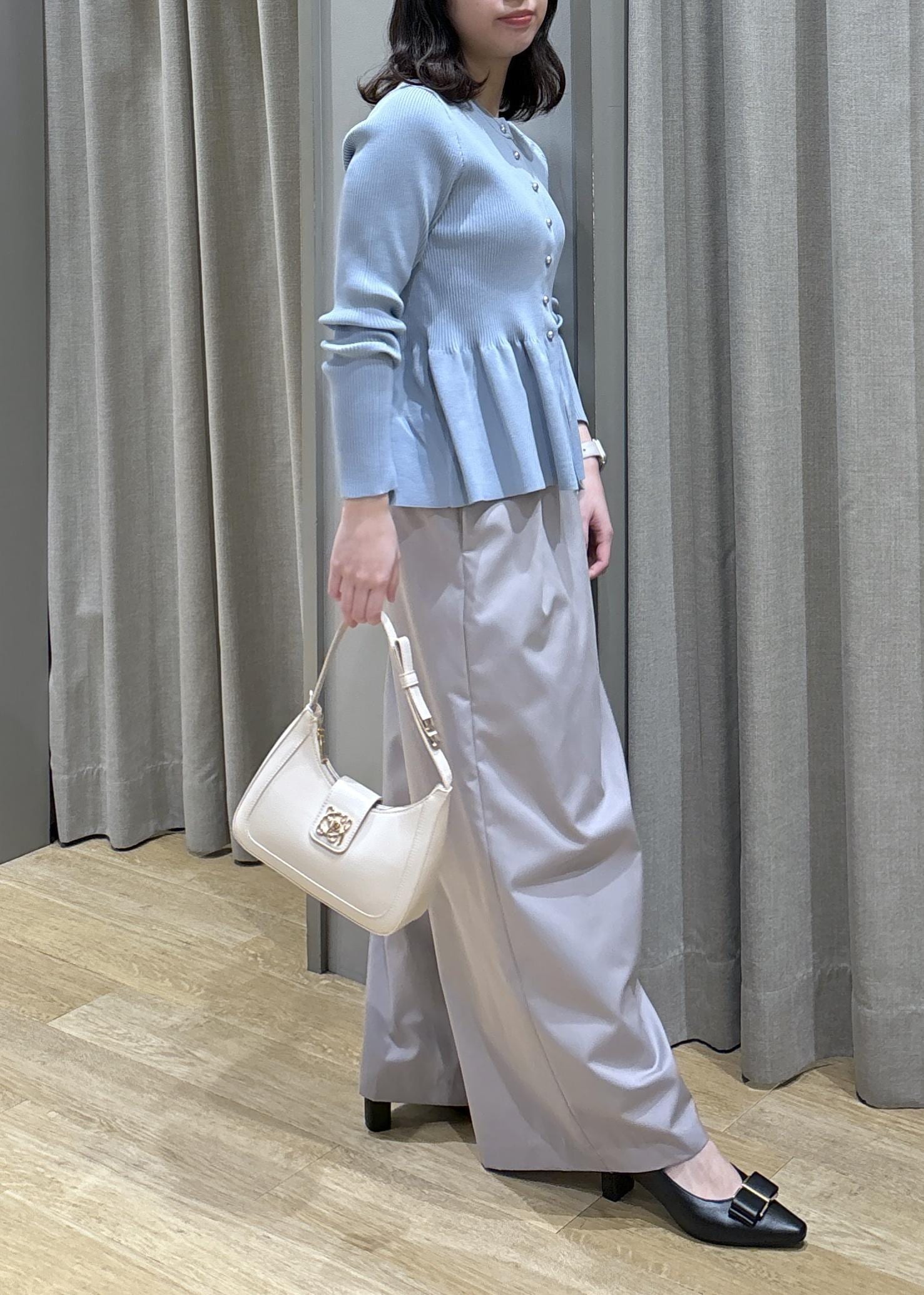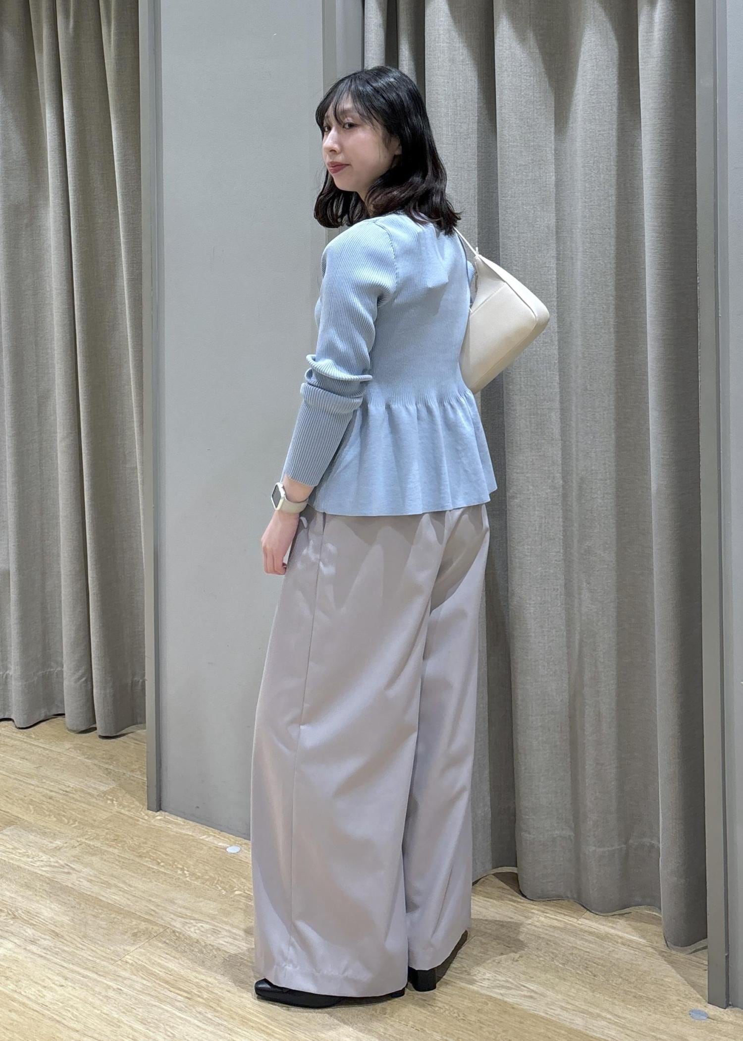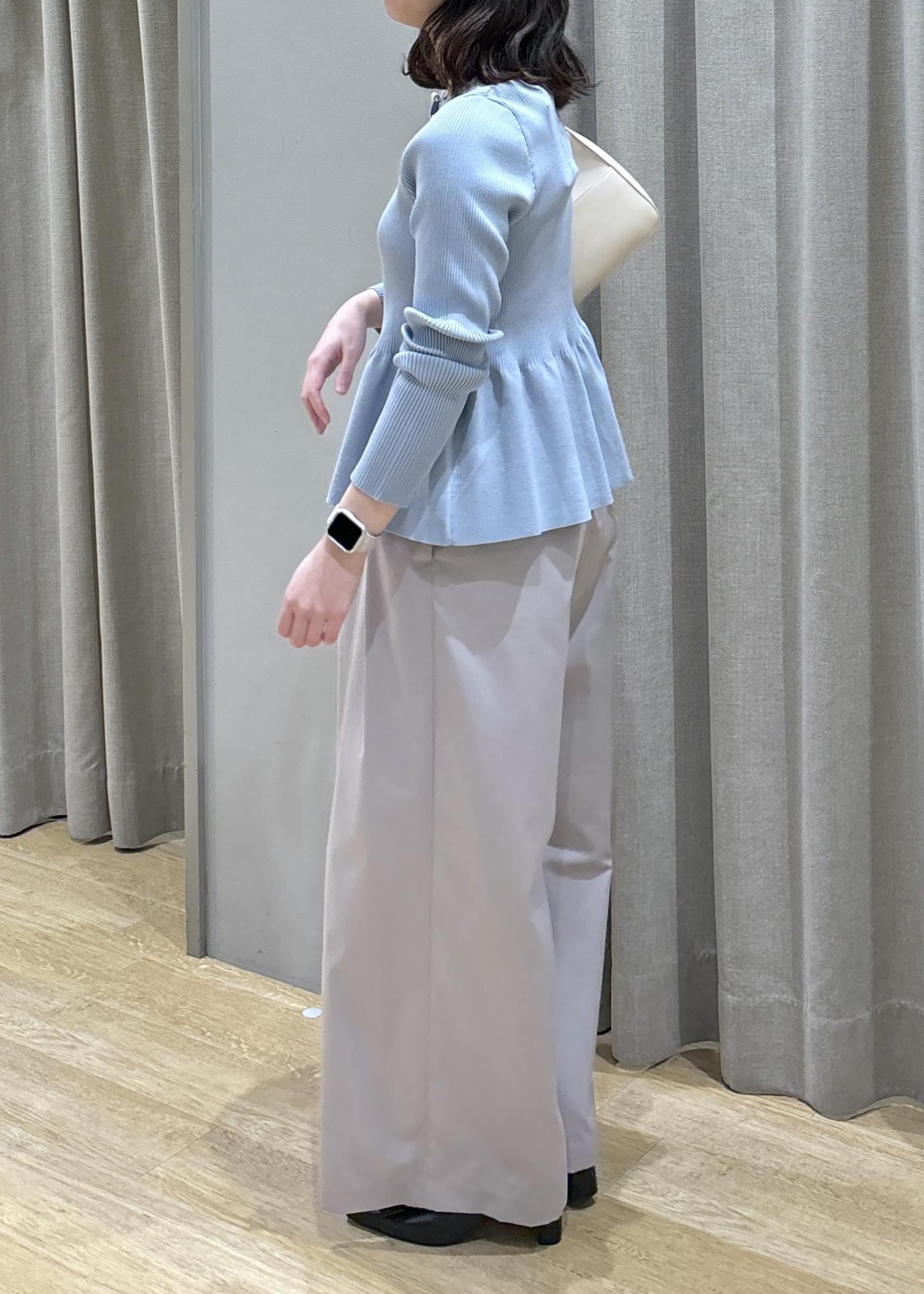 ペプラムカーデ×フロントタックパンツ