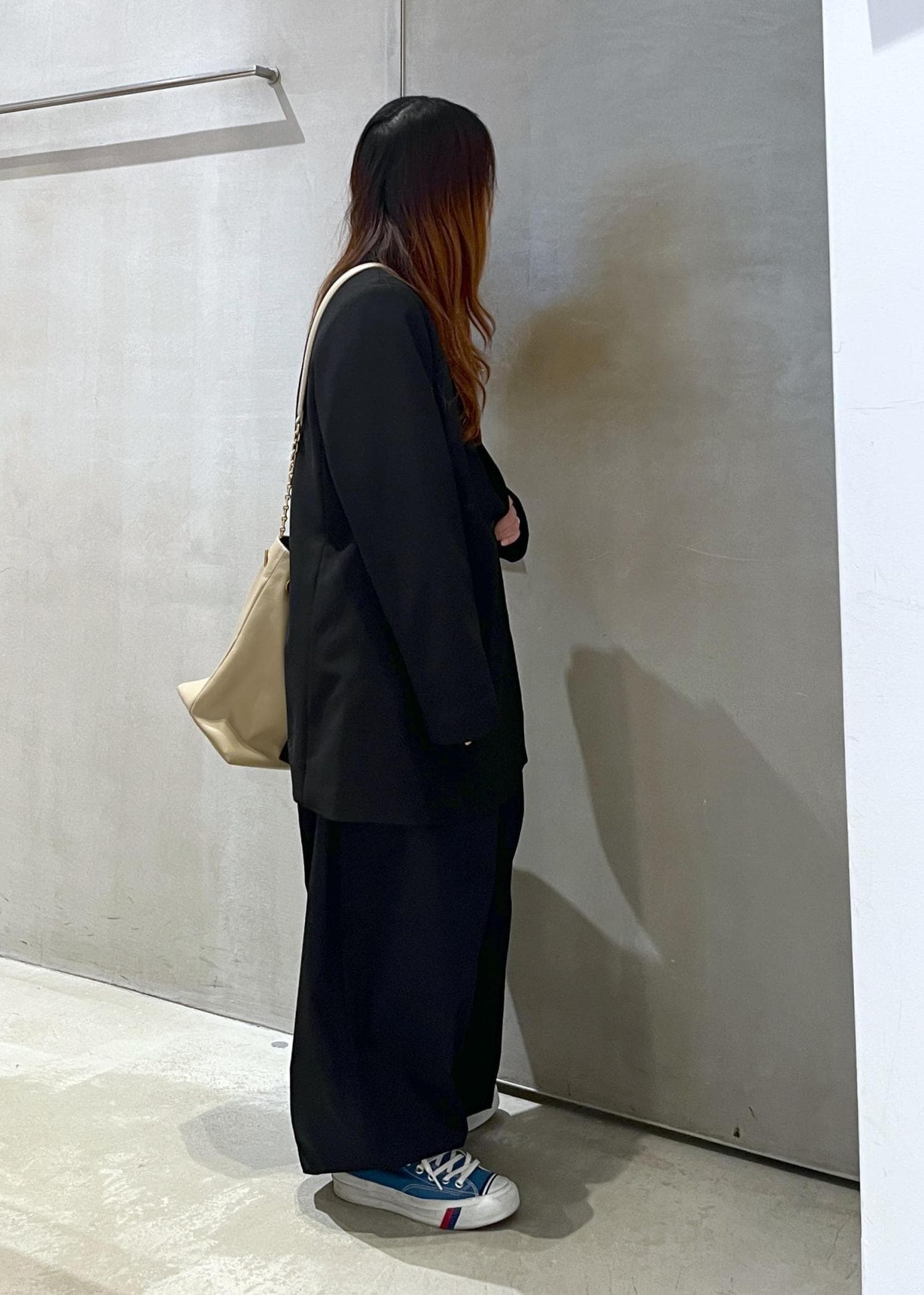 肩パッドがなく落ち感があるのでスッキリとした印象で着用出来ます。
