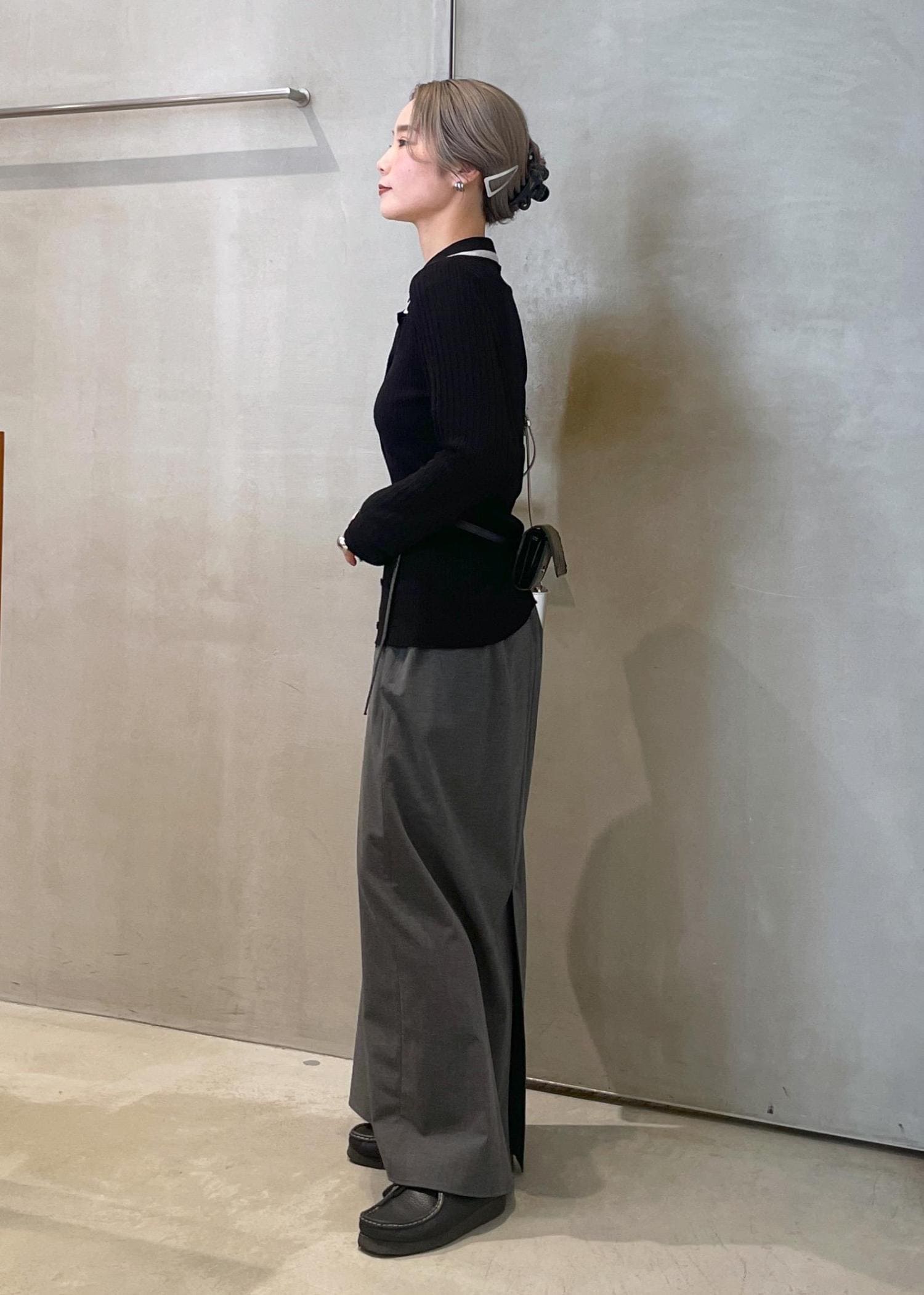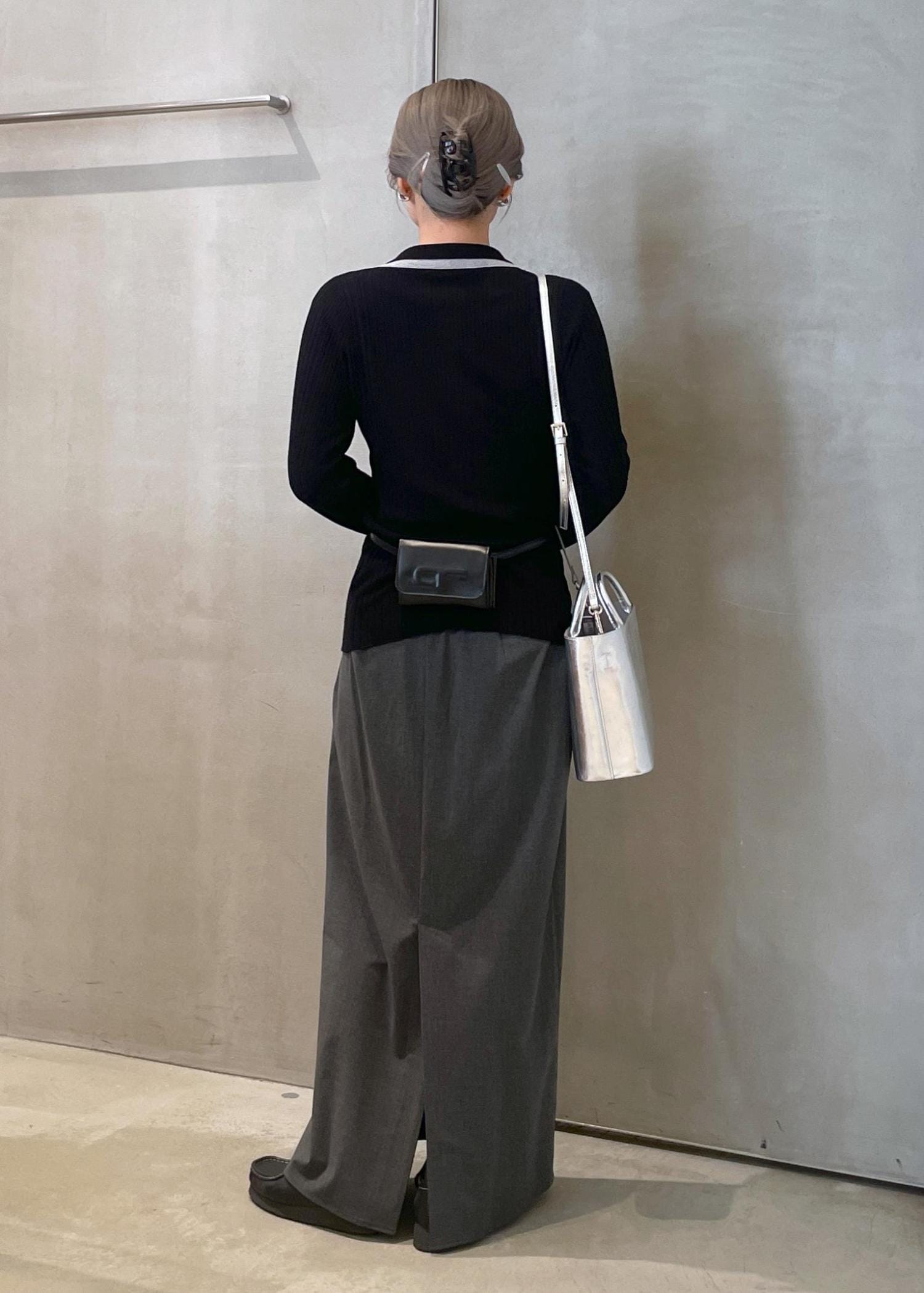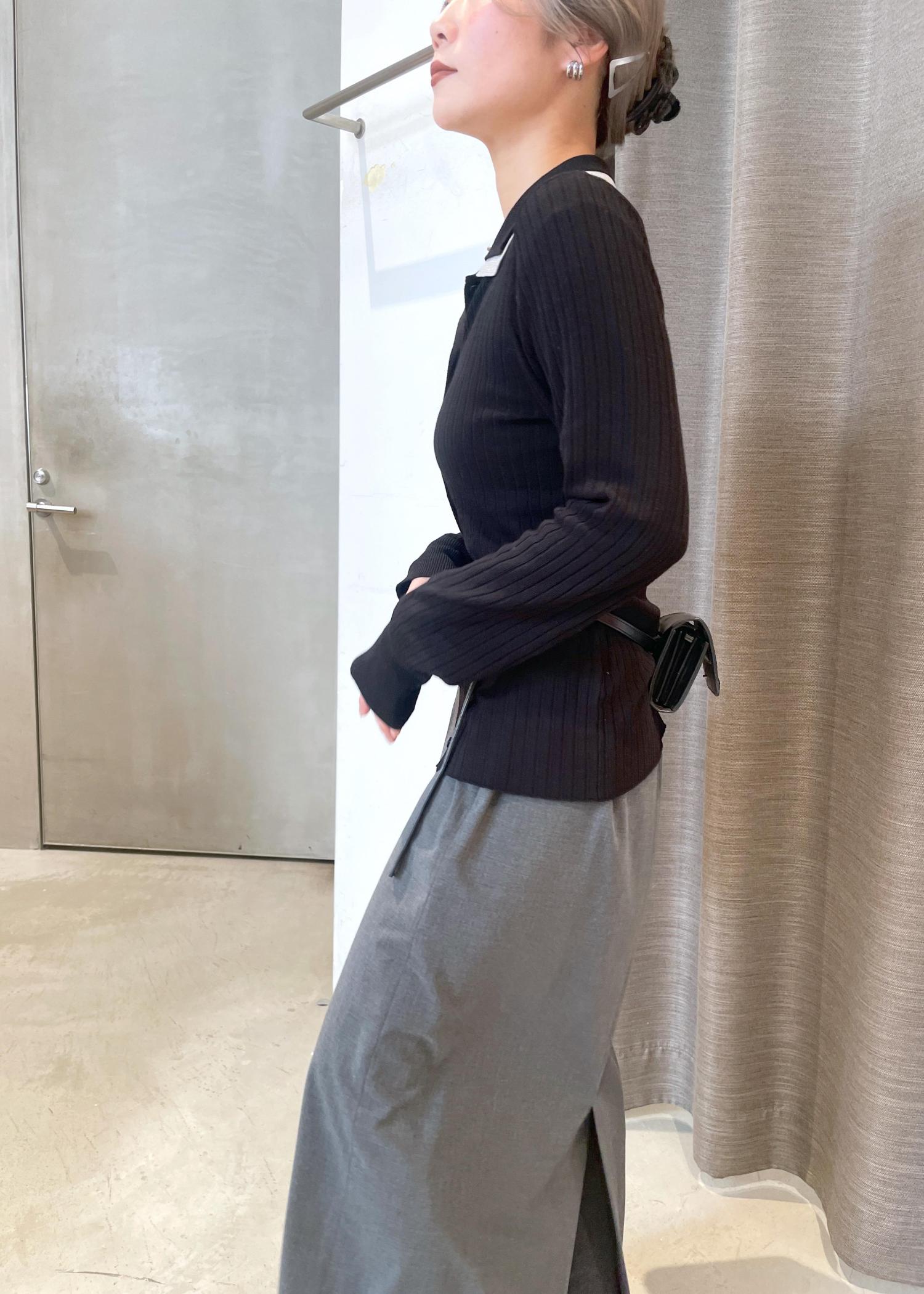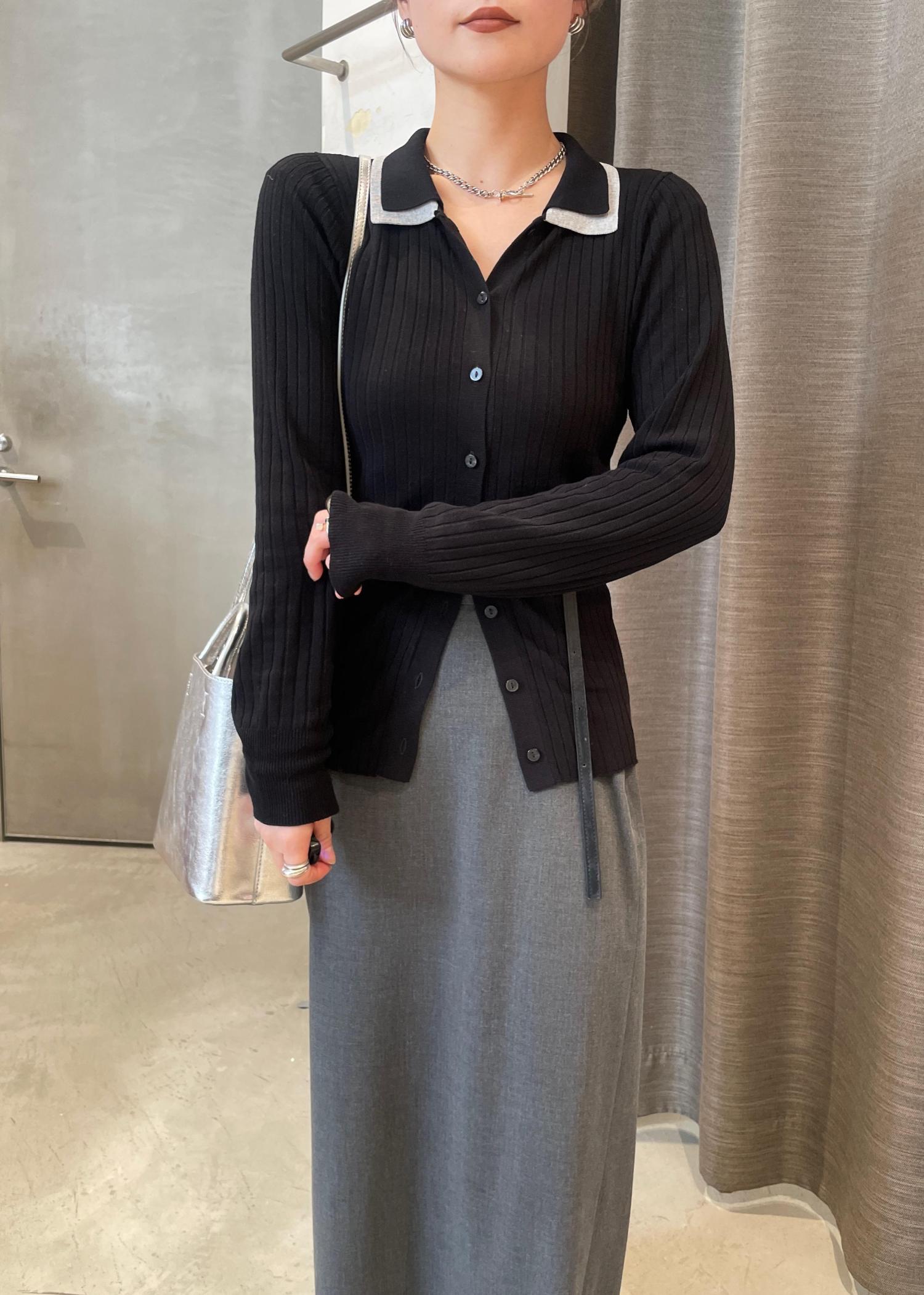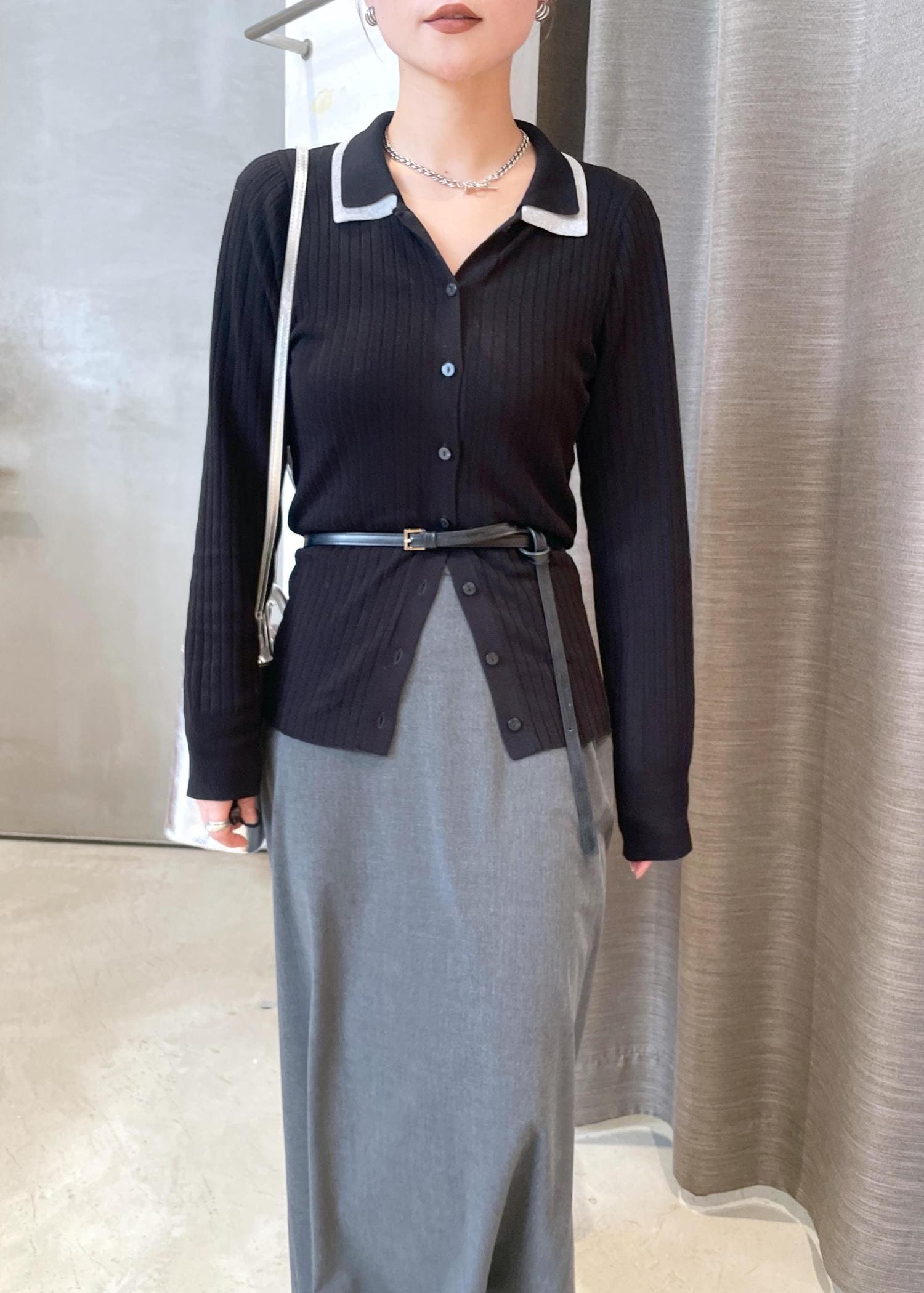 LE CERCLE par ropéレイヤードカラーポロカーディガンブラック / F¥6,490レビューくたっと柔らかく、肌触りの良いさらっとしたスプリングニット。ボディラインに綺麗に沿ったタイトなシルエットで、アームホールから袖までやや広めで腕周りはピタッとしませんでした。腰まで届く丈感が今年っぽいデザインです。
