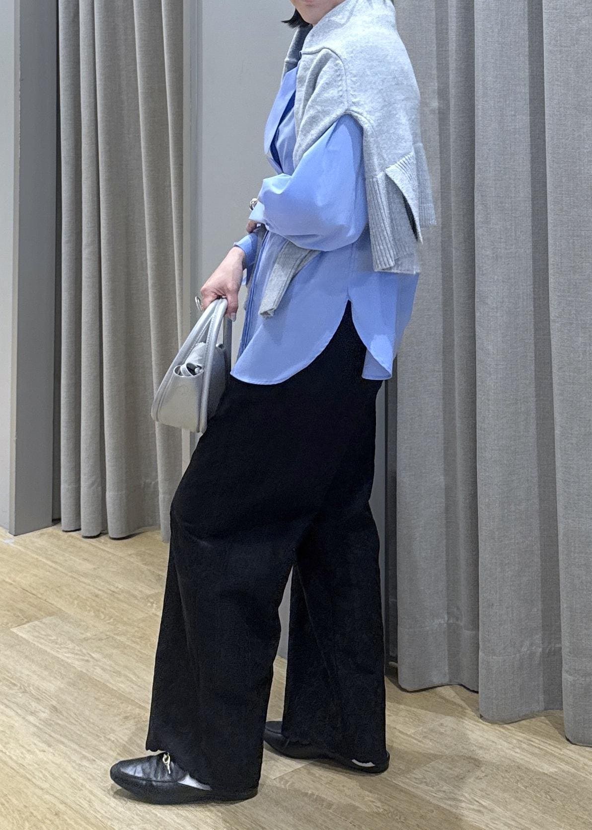生地感はそこまで分厚くなく、アウターを着てもごわつかないです。 -