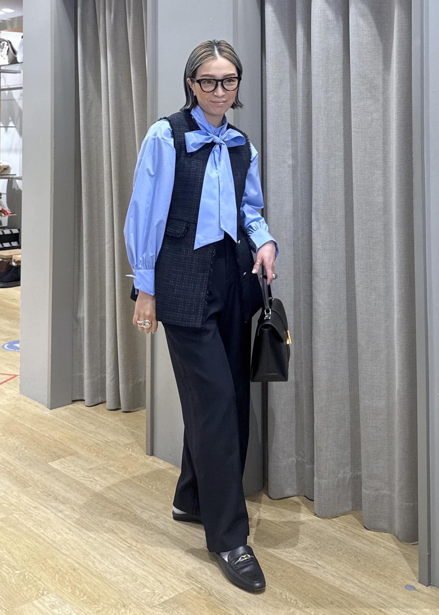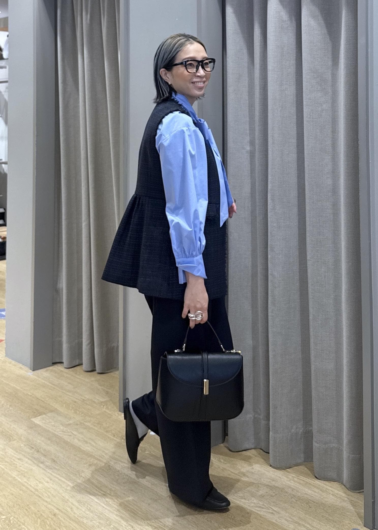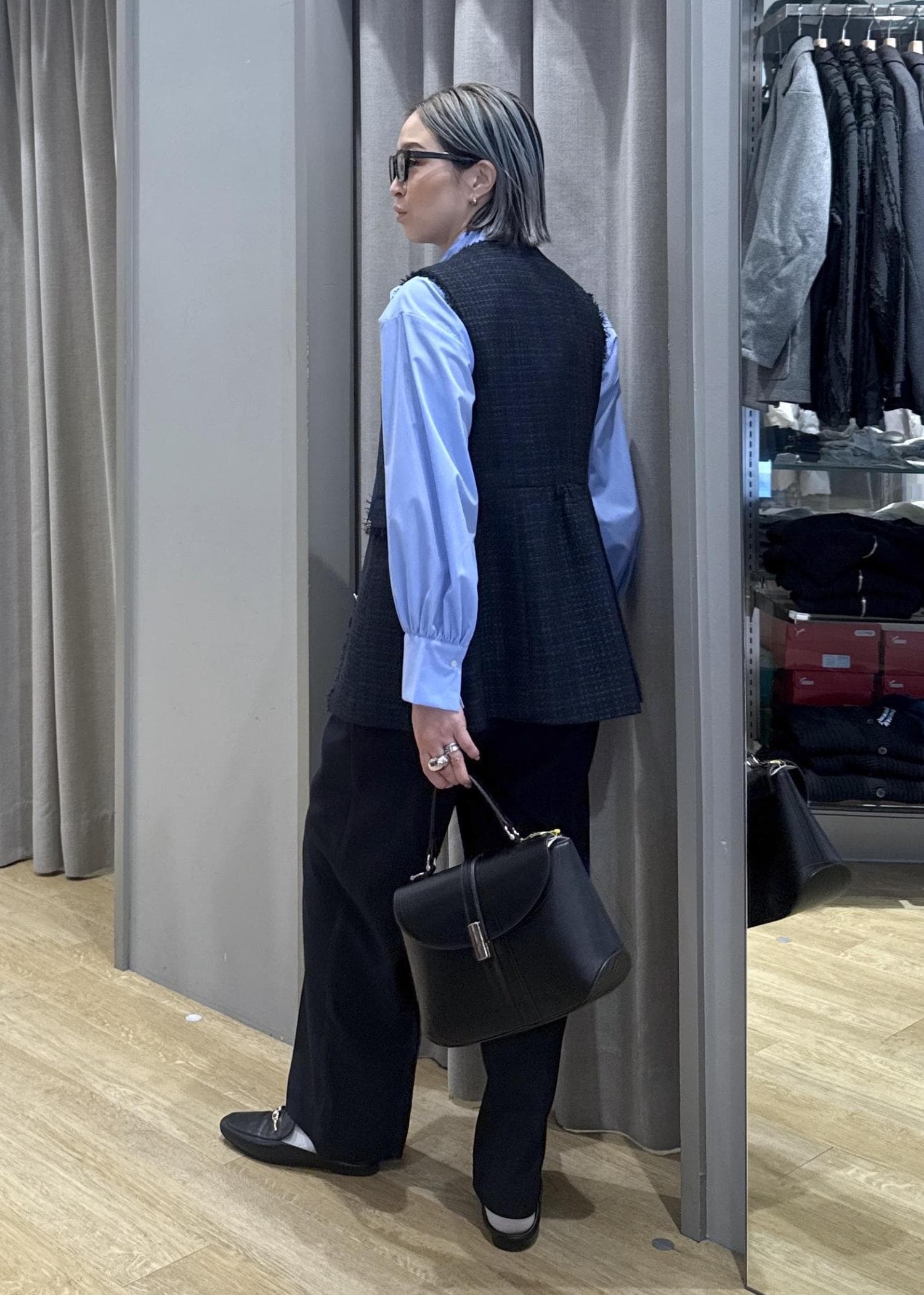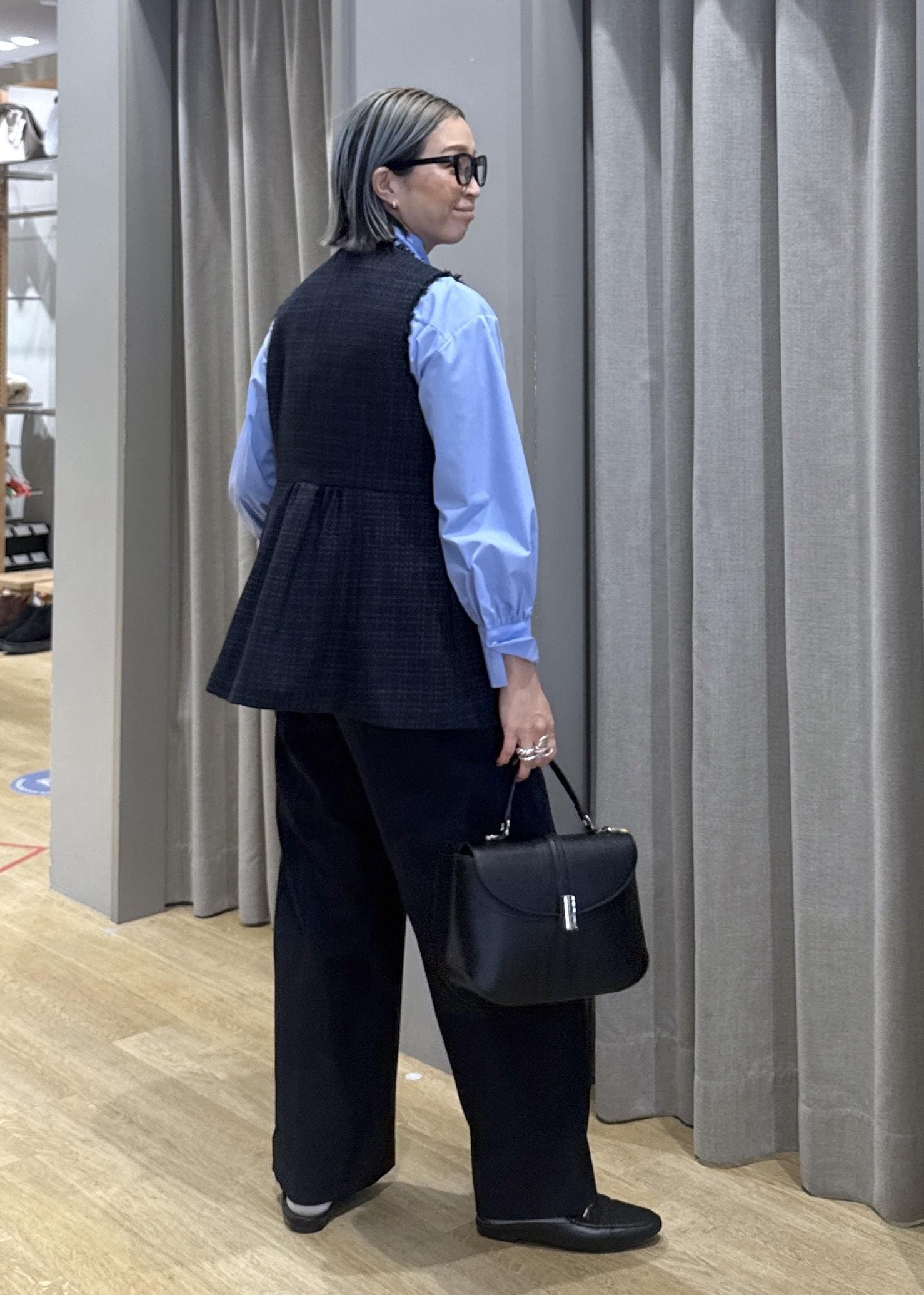 ベストの着丈が、自然とヒップカバーしてくれるので