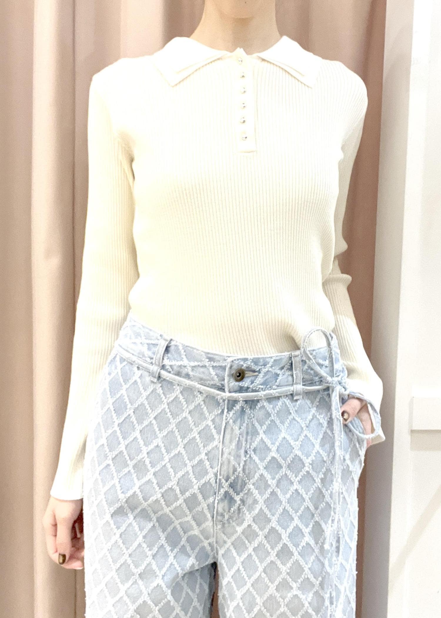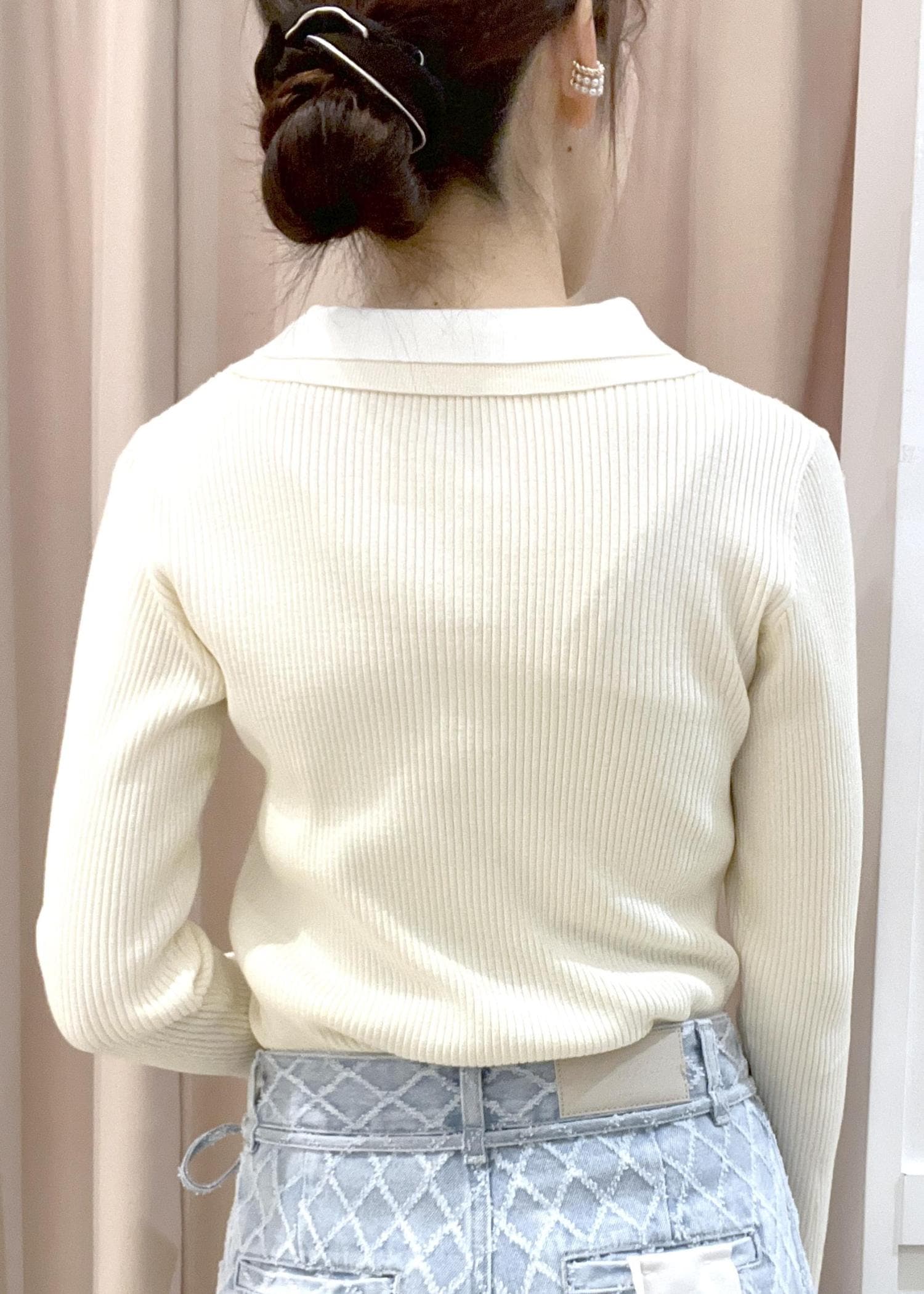 VISダブルカラーポロニットトップスオフホワイト / F¥5,489レビュートレンドのダブル襟のニットです。
