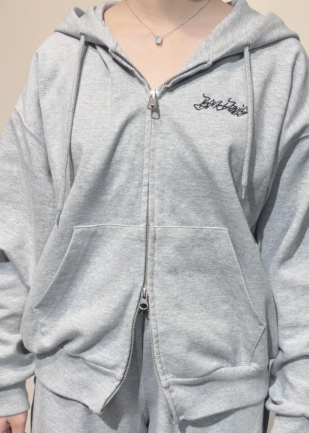 パーカーが短丈でダブルジップになっており下のジップを上にあげることで足長効果になります✨️