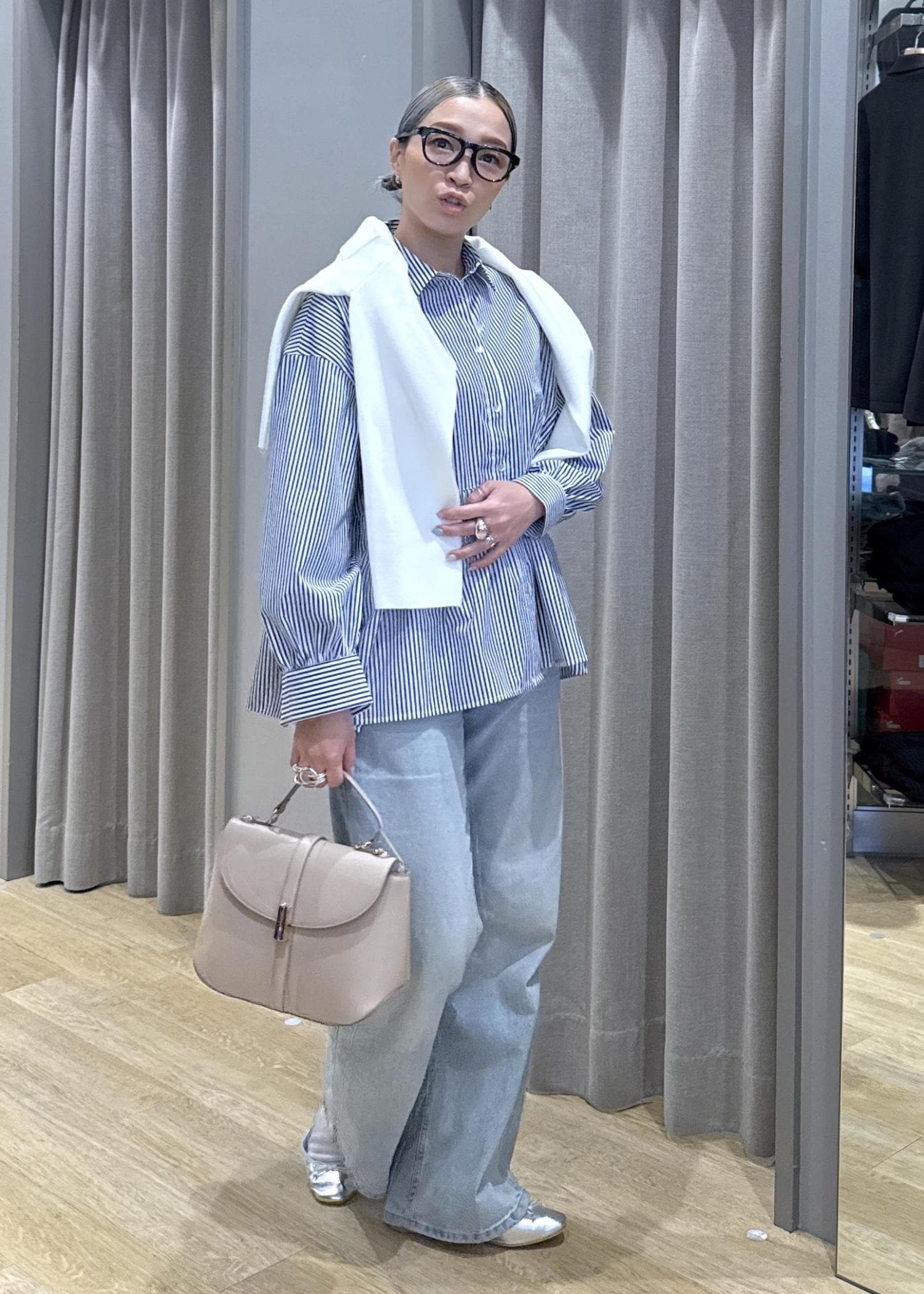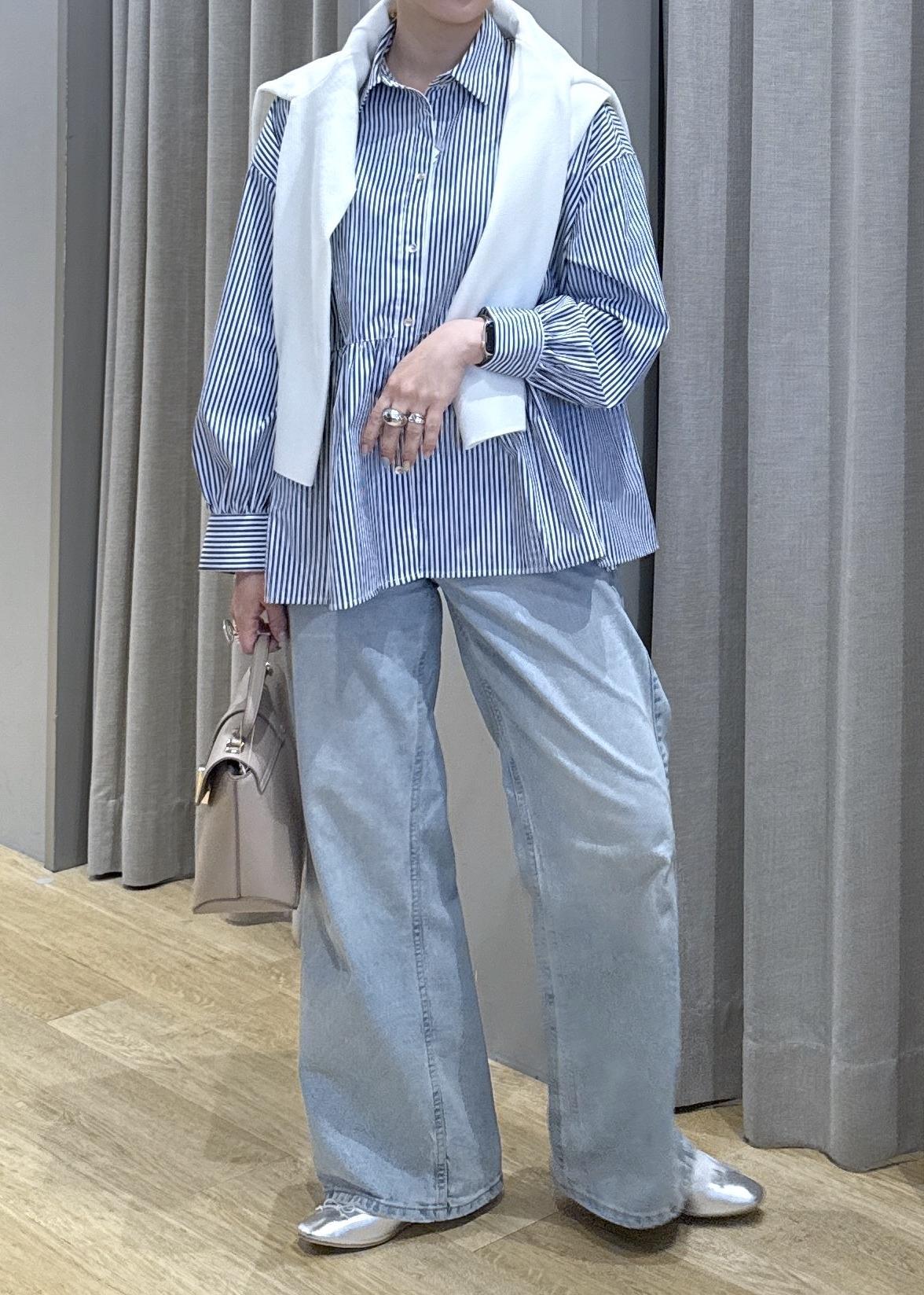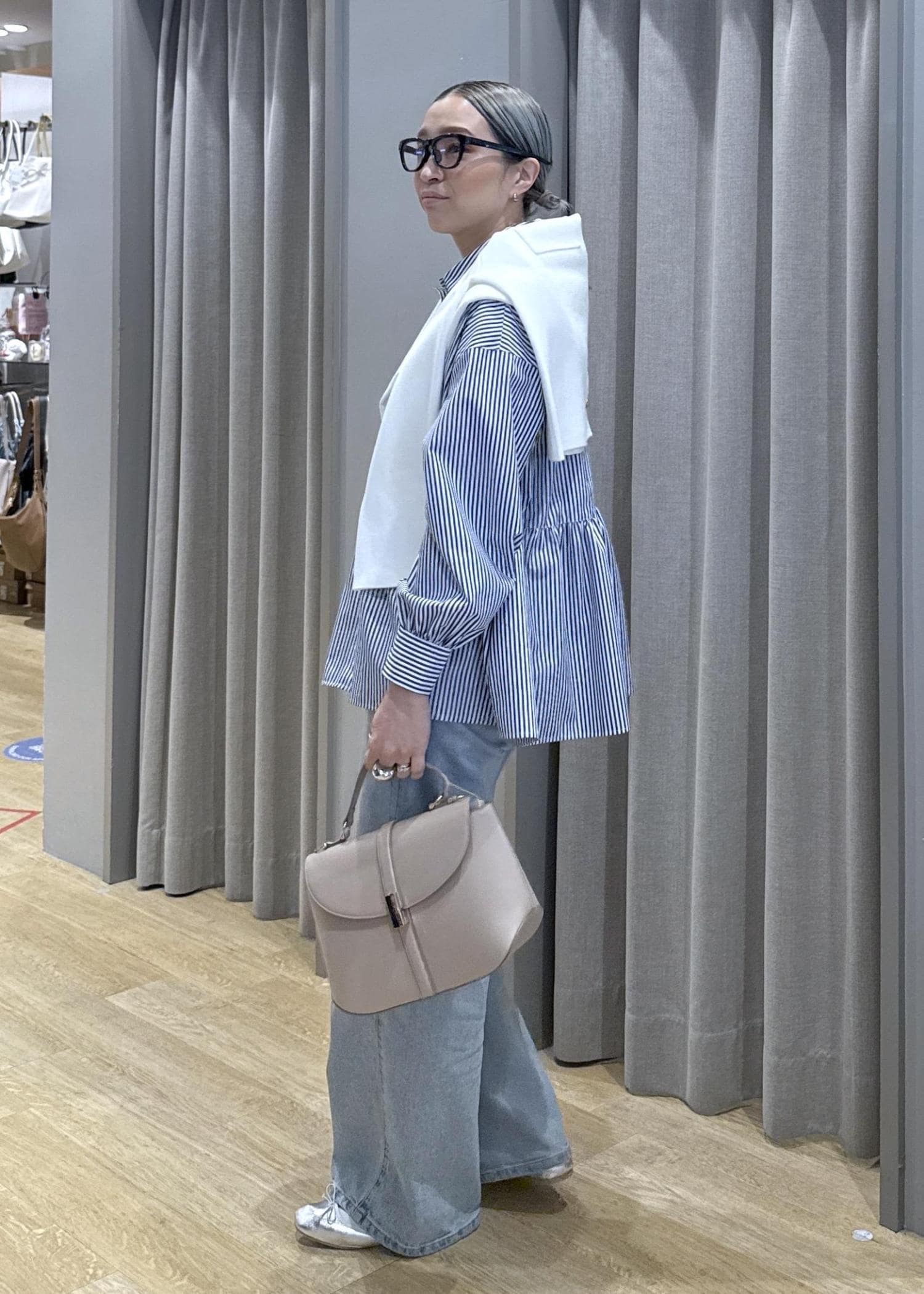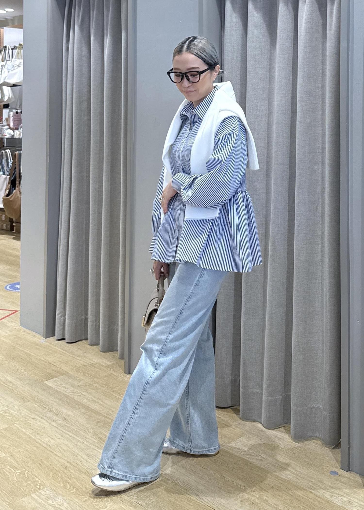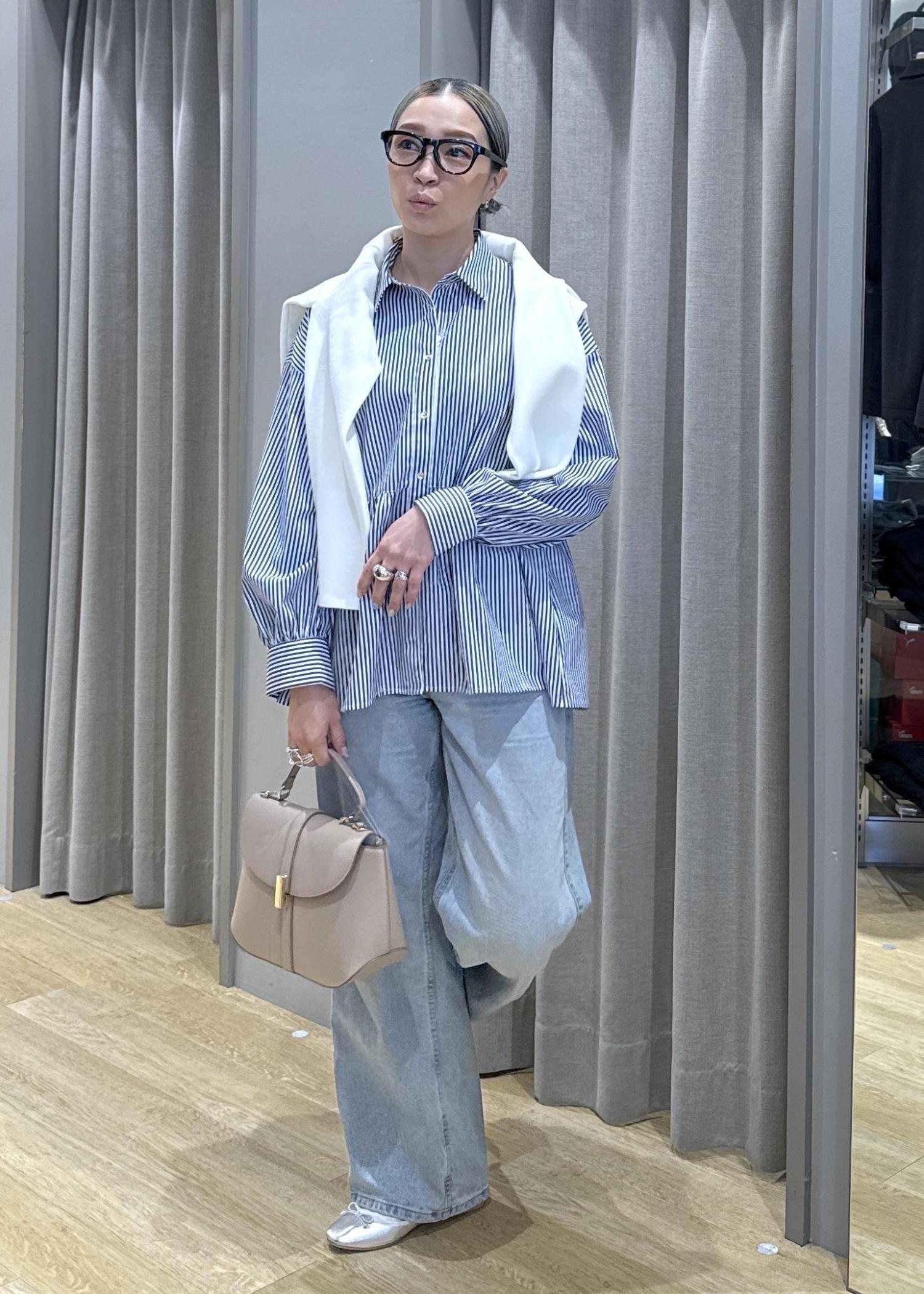 ボトムスにボリュームがあるものが多い方はジャストサイズで着るMサイズ。
