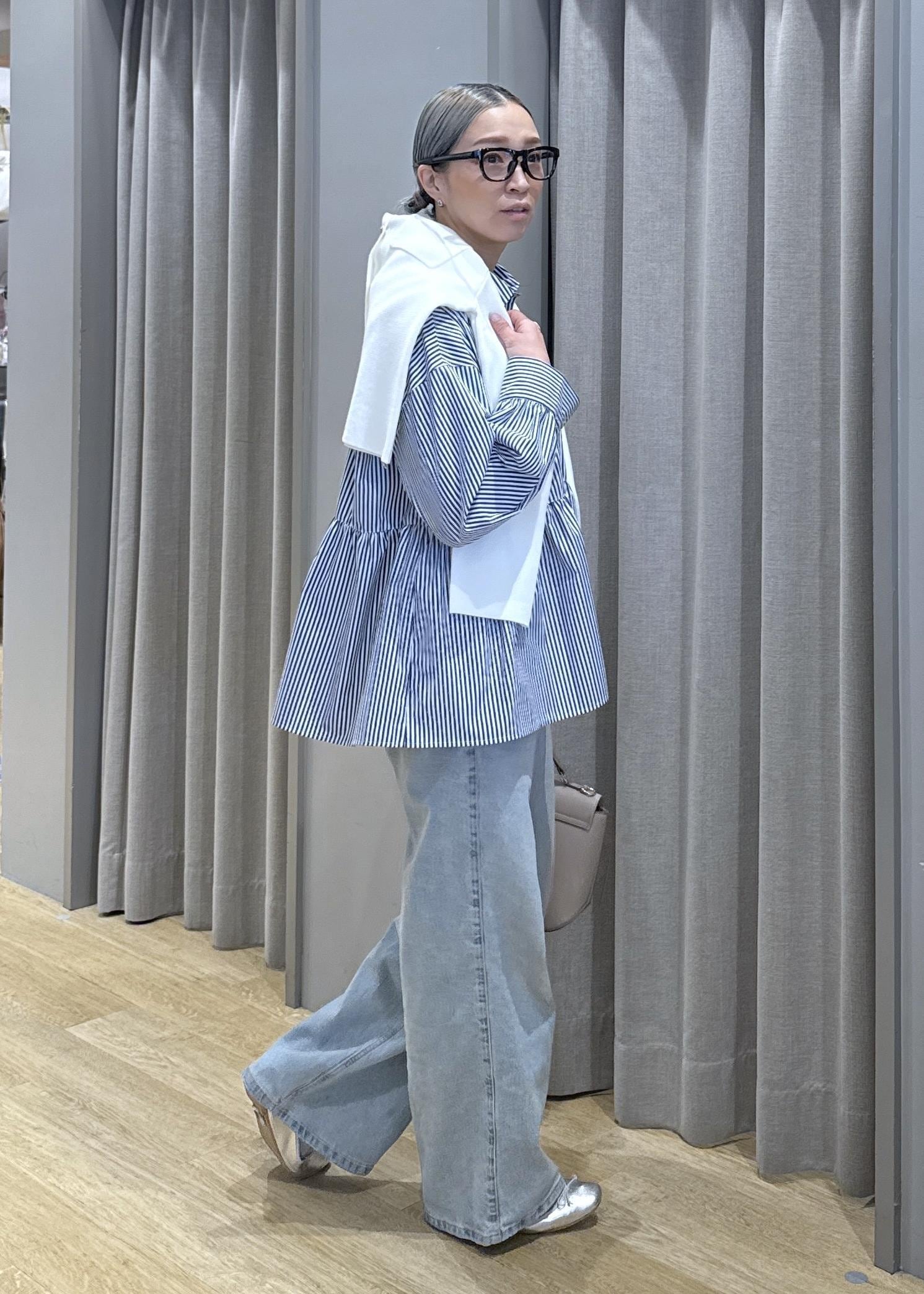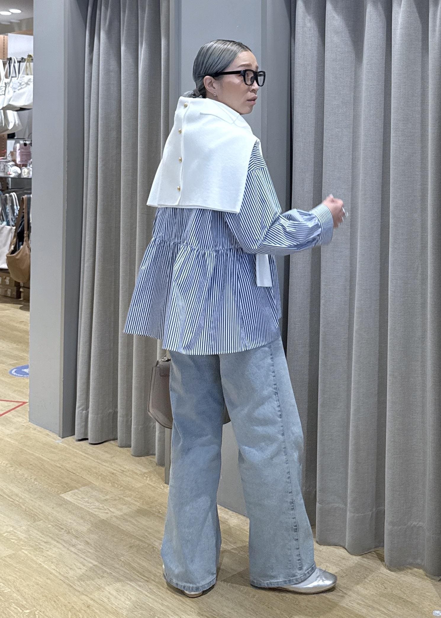 裾のフリルを活かす為に、ショート丈の羽織りと重ね着するのもおすすめですよ! -