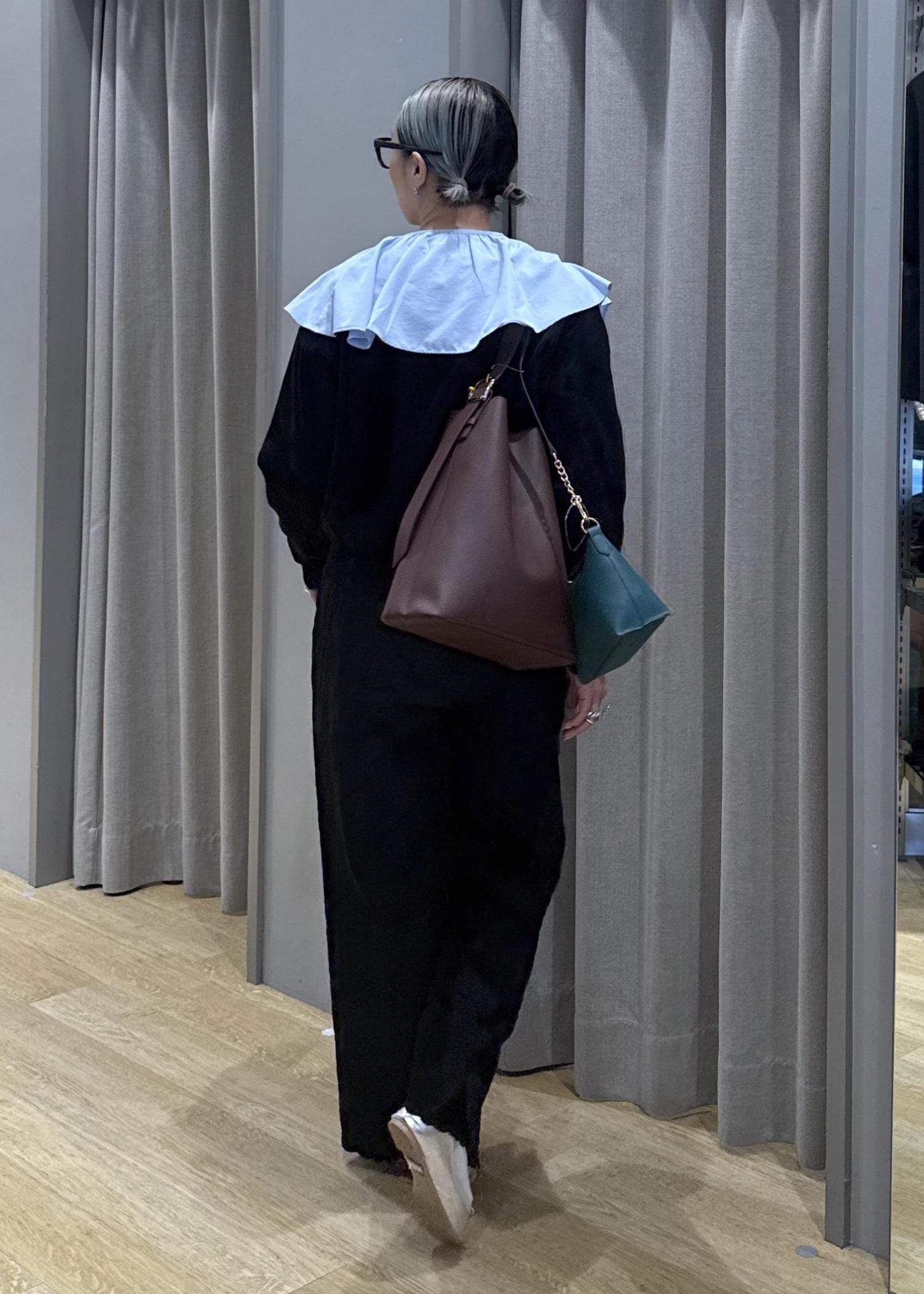 首周りも大きく開いていないので、襟なしの羽織りと相性がよく、