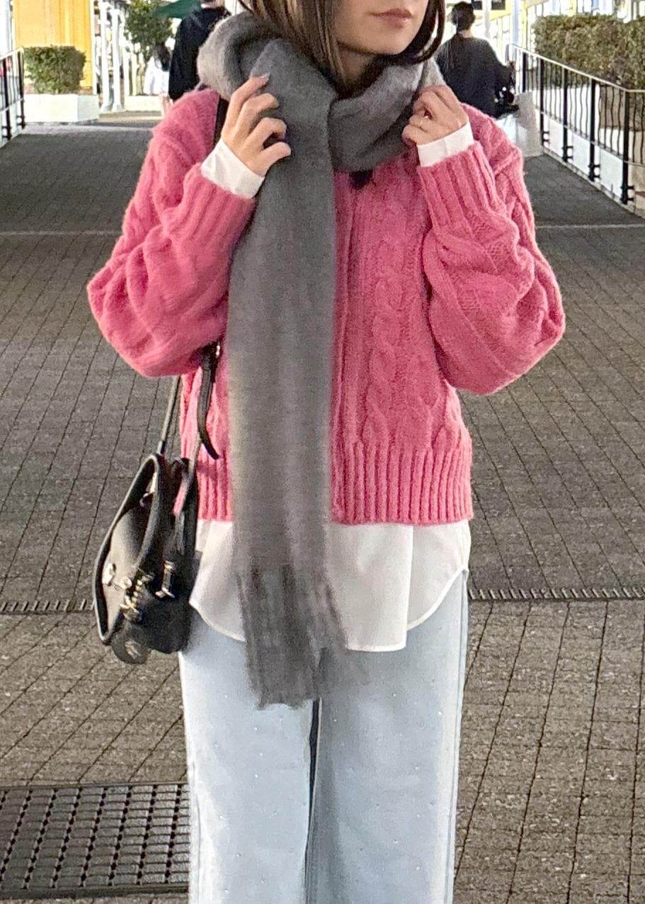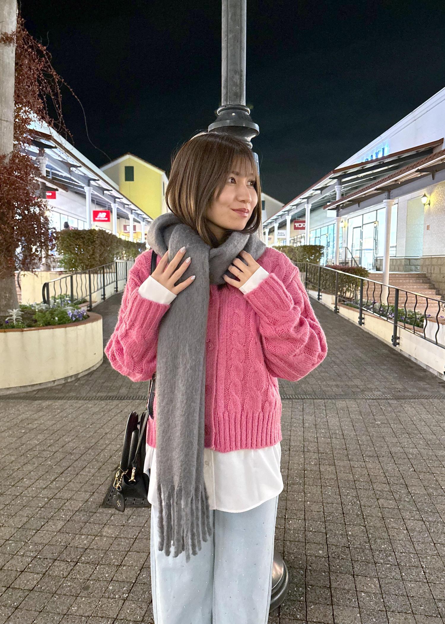 ピンクニットコーデ