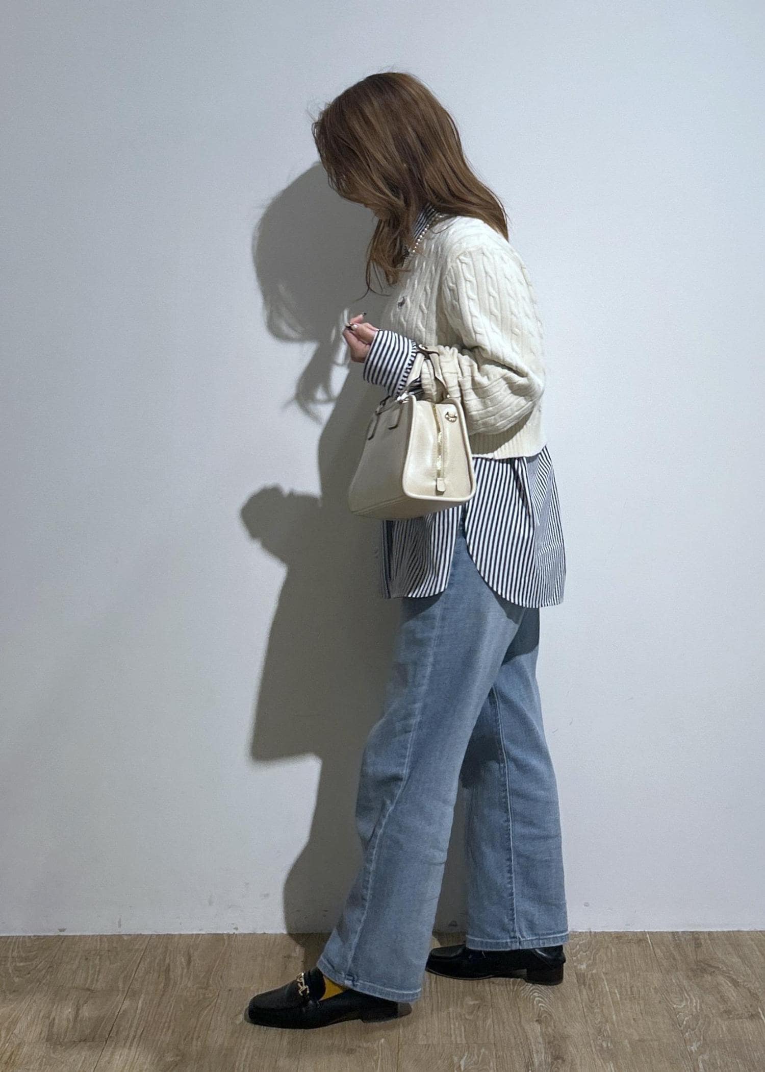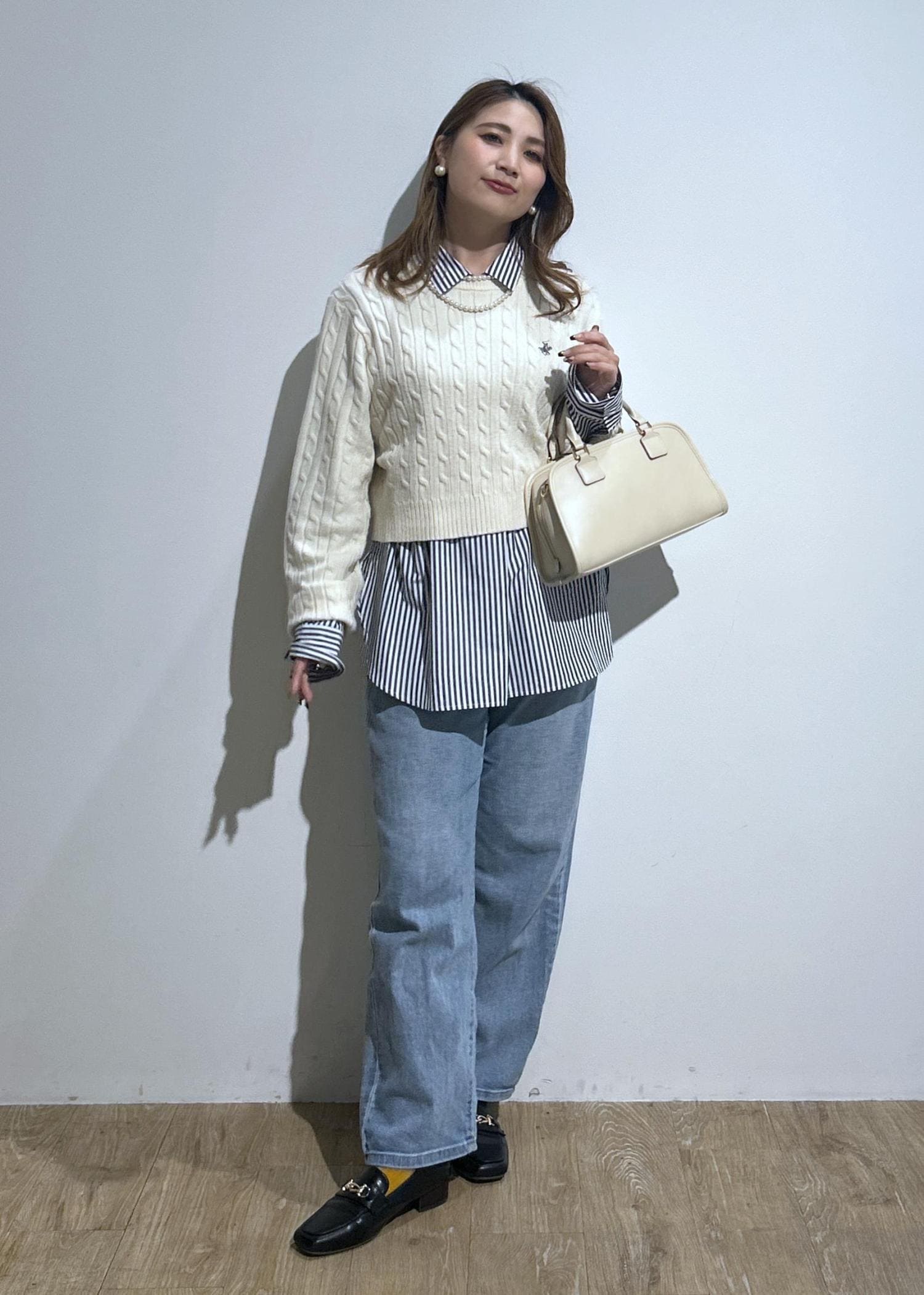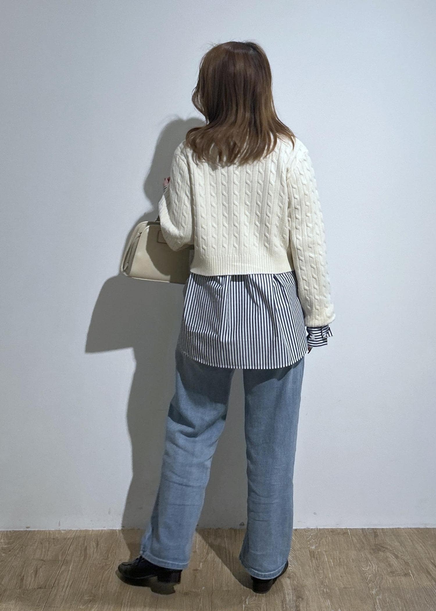 ハイゲージの編み柄もデザイン性がありベーシックなボトムを合わせてもお洒落見えします。着丈は154cmでオヘソ辺りと少し短いため、シャツやキャミとのレイヤードスタイルもおすすめです。 -