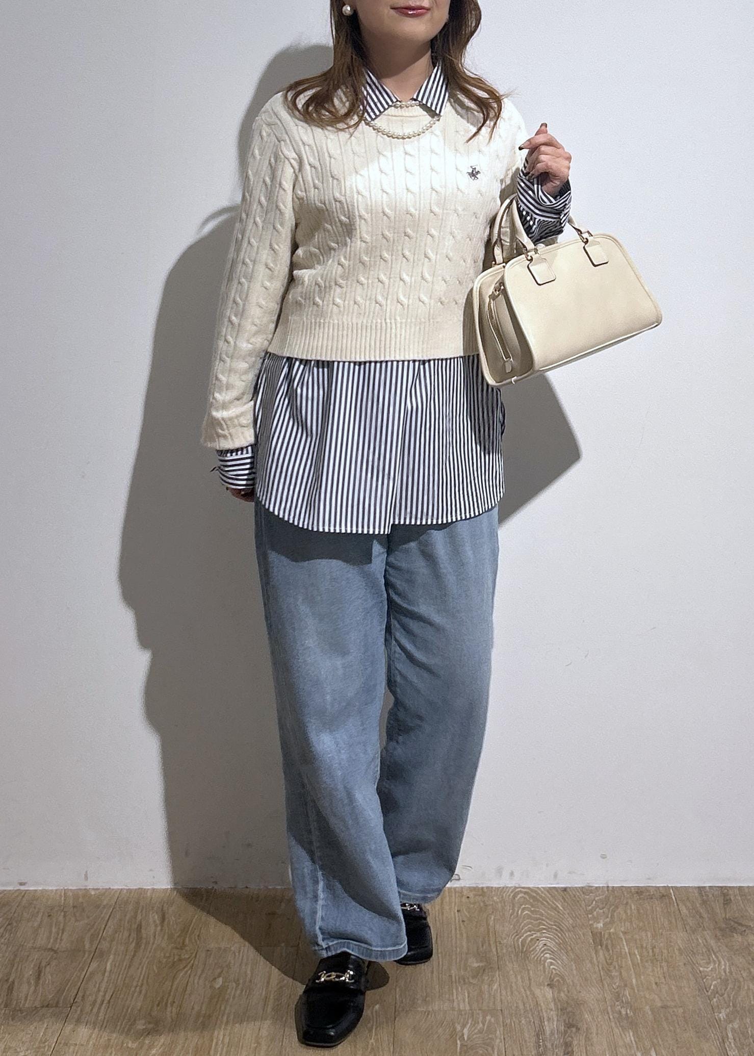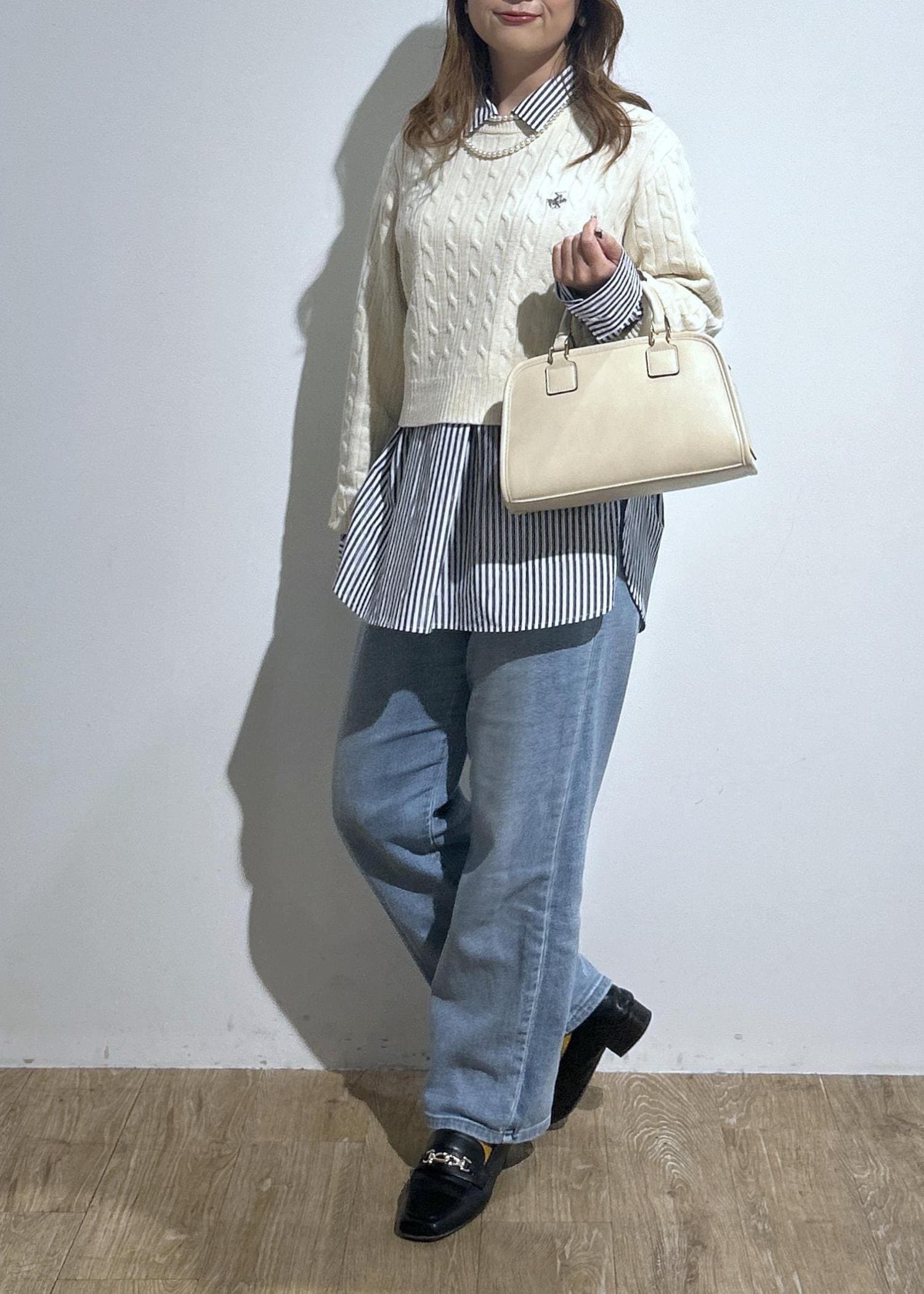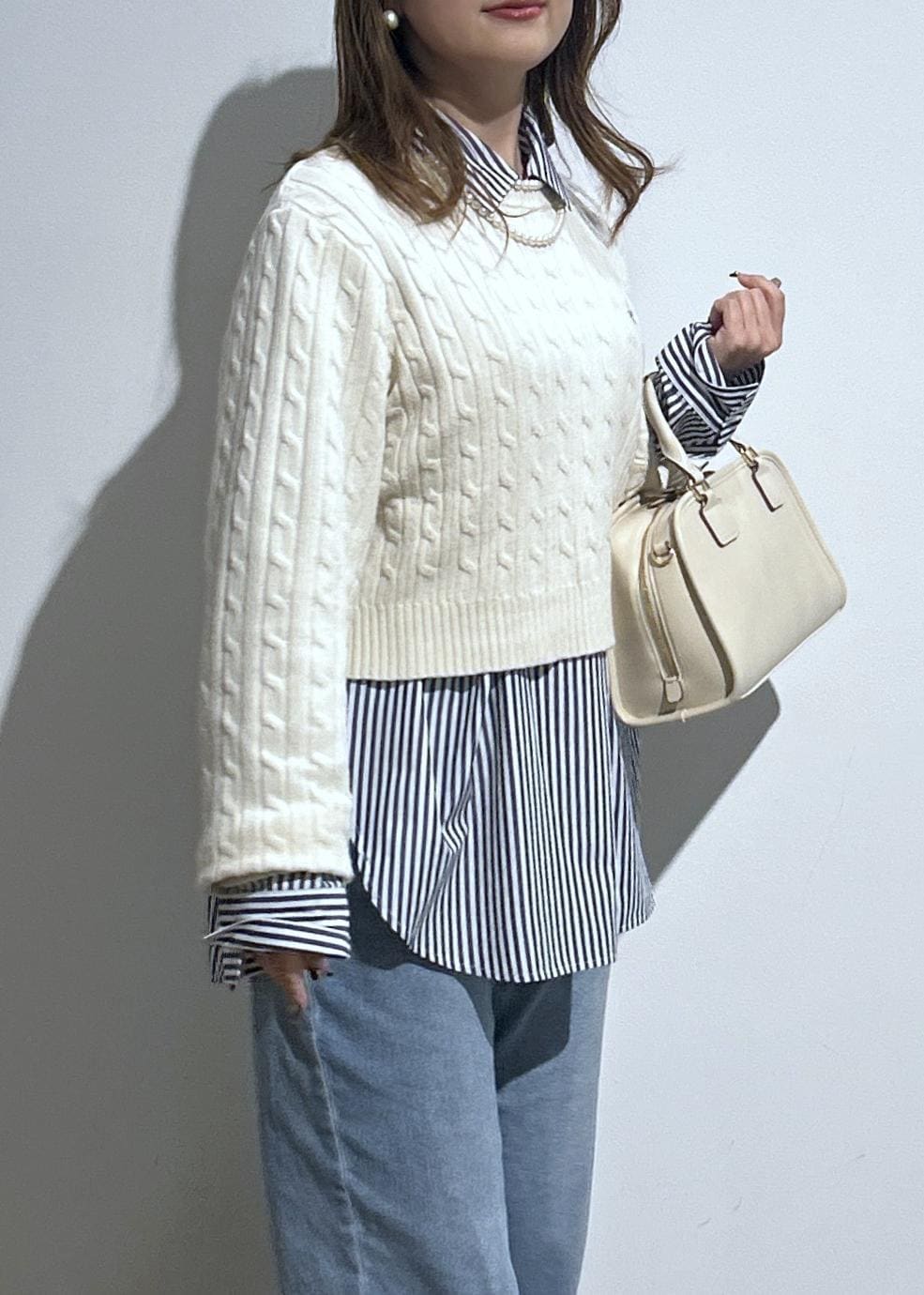 ハイゲージの編み柄もデザイン性がありベーシックなボトムを合わせてもお洒落見えします。着丈は154cmでオヘソ辺りと少し短いため、シャツやキャミとのレイヤードスタイルもおすすめです。