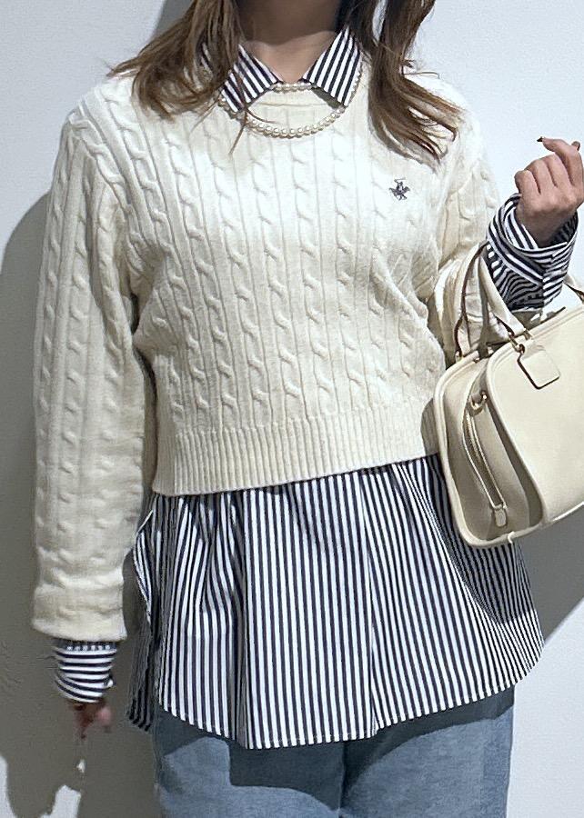 ROPÉ PICNIC【BEVERLYHILLS POLO CLUB・WEB限定】ケーブル編みクロップドニットプルオーバーキナリ / F¥5,489レビューPOLOロゴがポイントで可愛いです!!