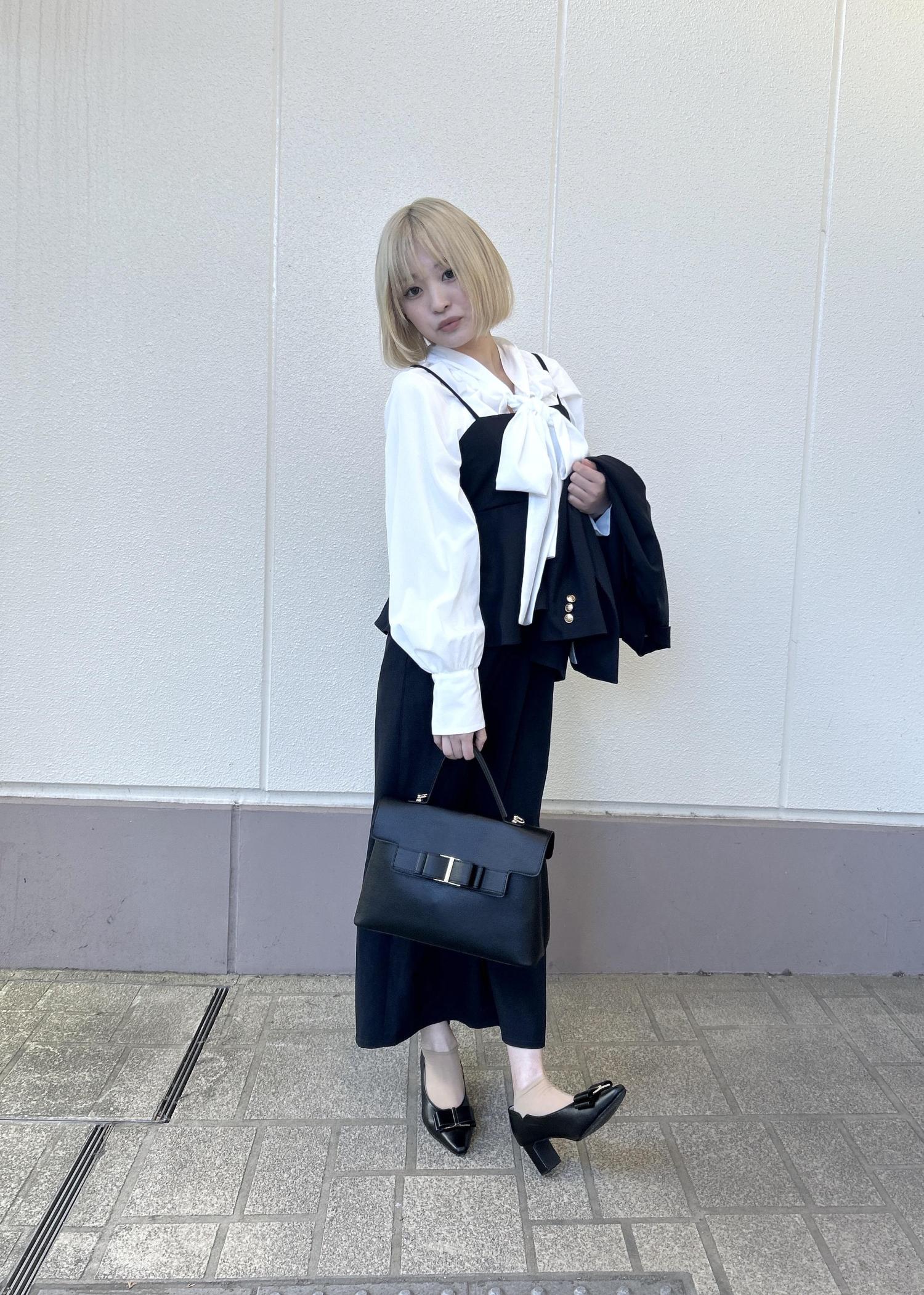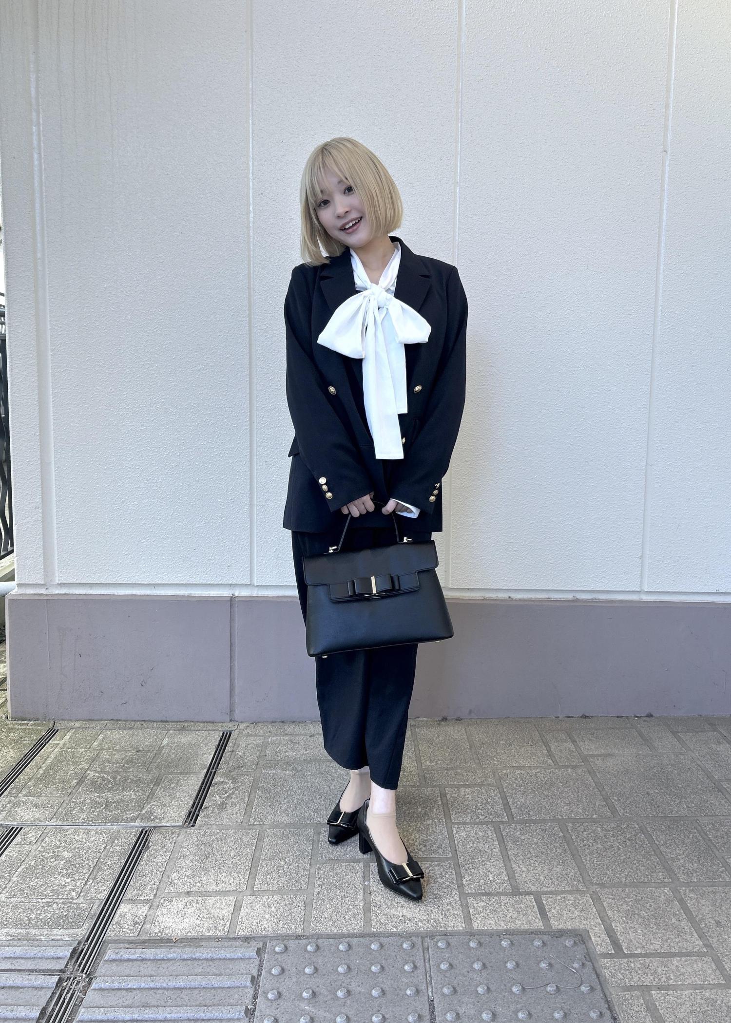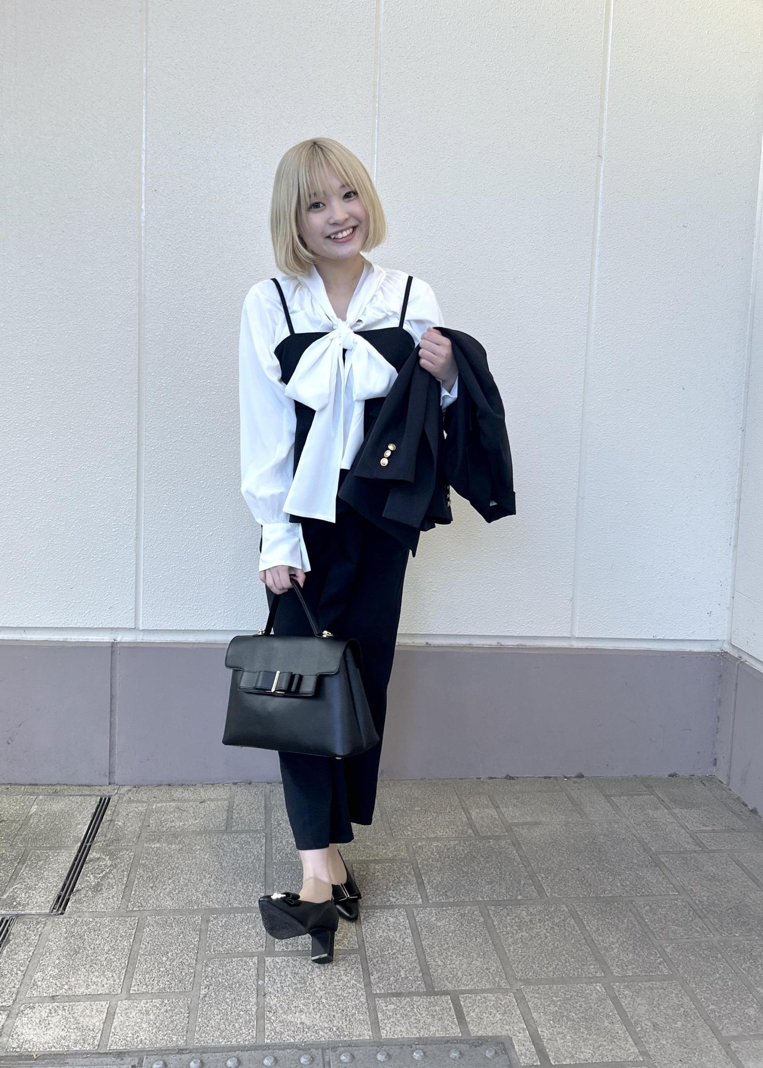 大きなリボンのブラウスにキレイめなジャケット、ワンピースをあせることによって、かわいいのに大人らしさを演出してくれます!!