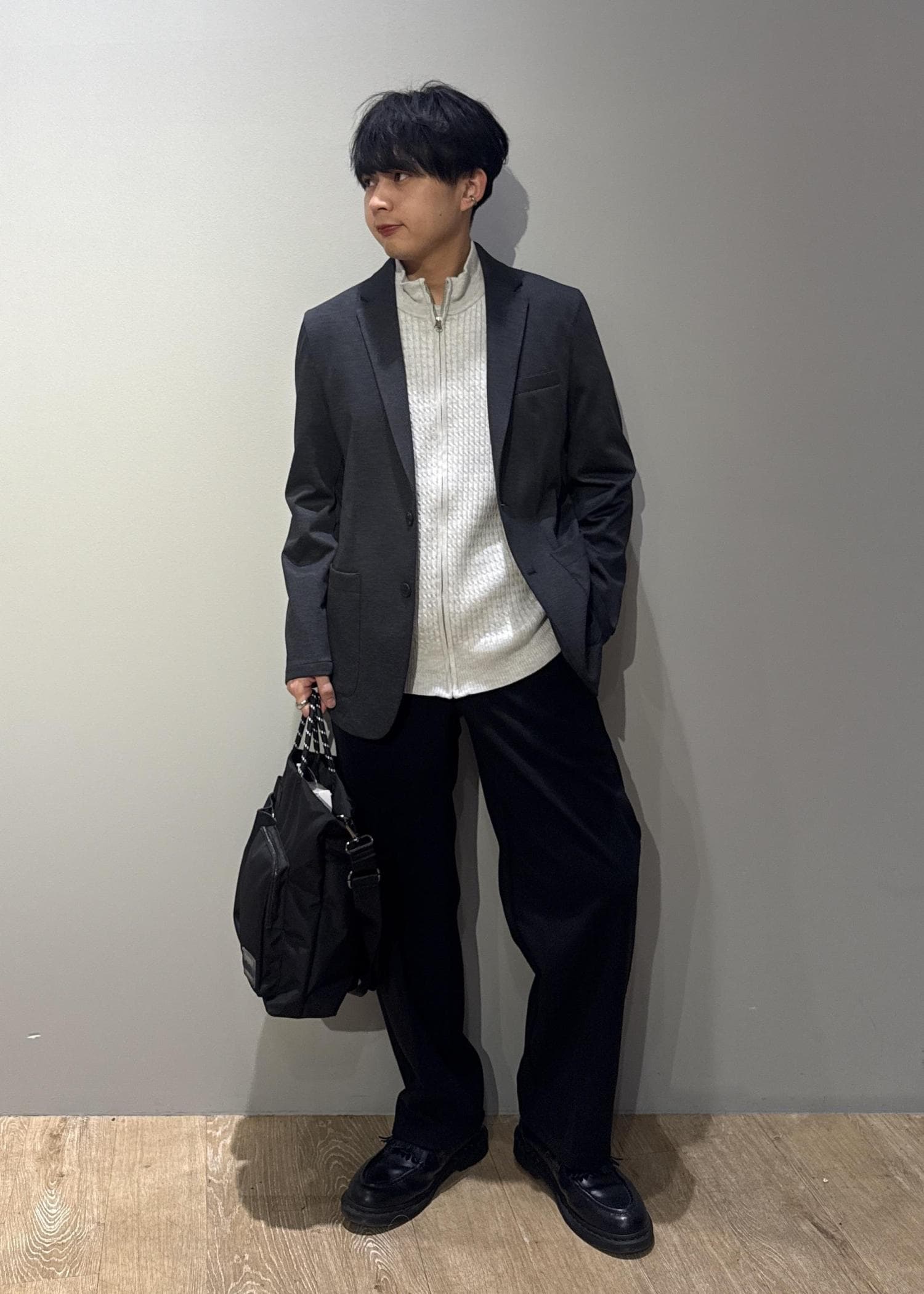今回はブライトダブルジャージージャケットを使ったコーデです。かっちりとした見え方なのにストレッチ性抜群でストレスフリーな着心地です。ドライバーズニットや、ややリラックス感のあるパンツと合わせたラフな見え方もおすすめです。
