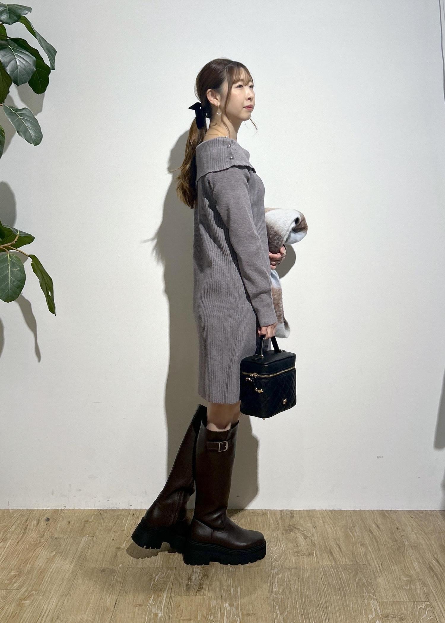 アウトレットVISアシメオフショルリブニット美シルエットワンピース/着丈が選べるグレー / FS¥4,450レビューオフショル風が抜け感をプラス♡