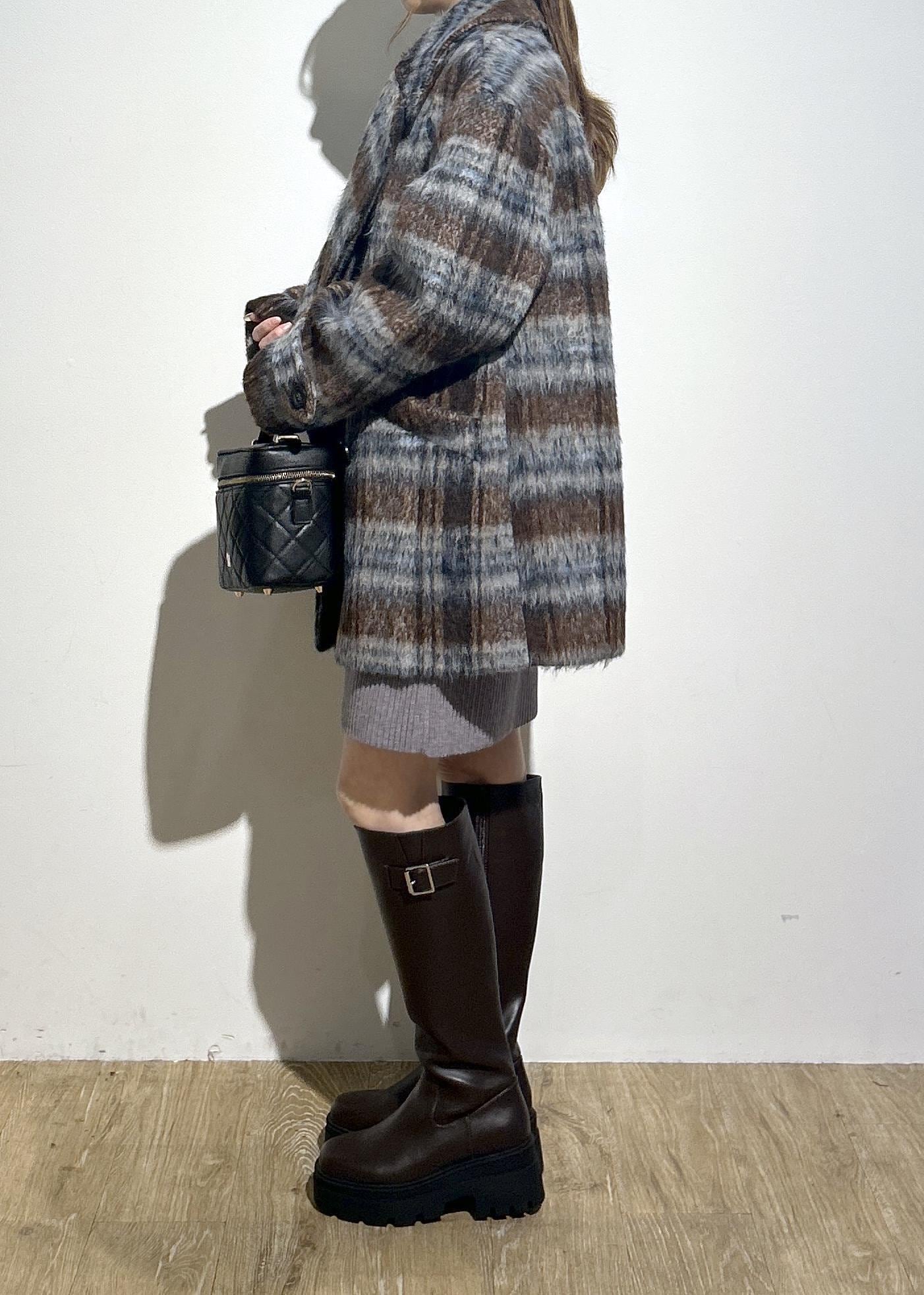大きめのチェック柄がシンプルなコーディネートのアクセントに◎