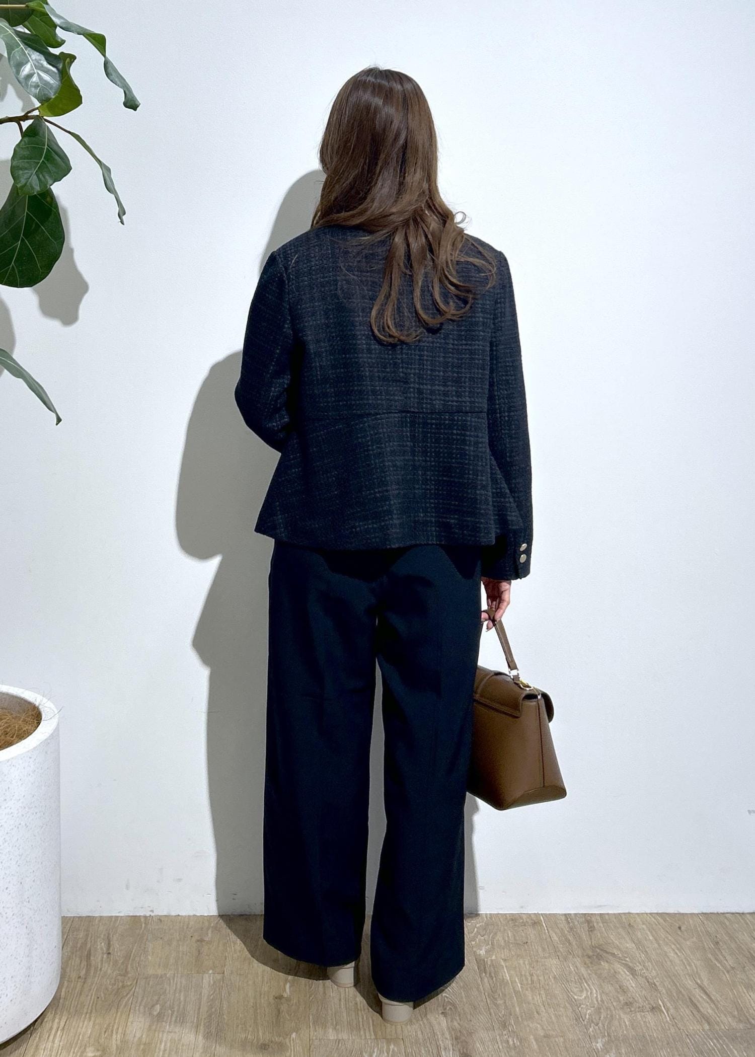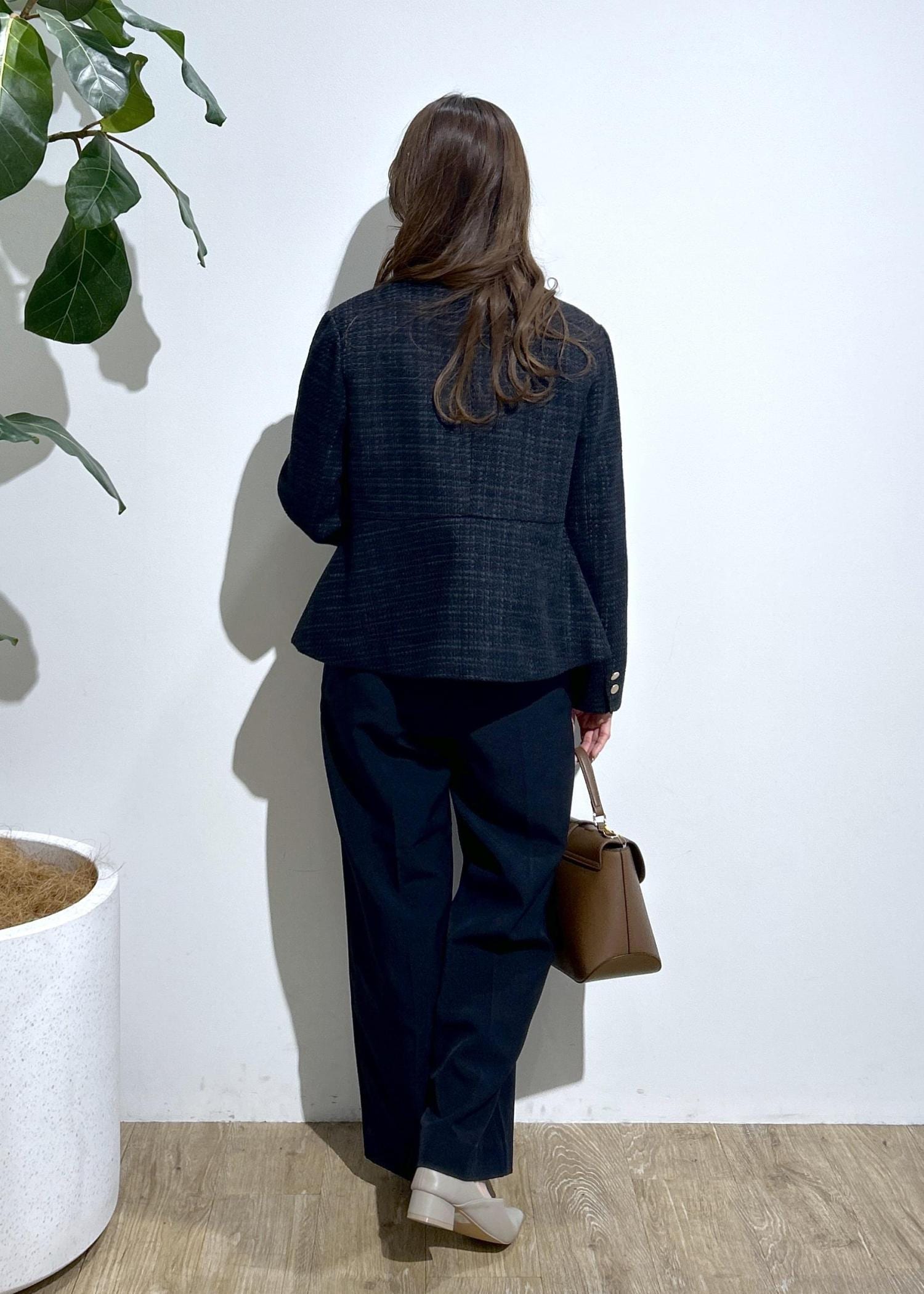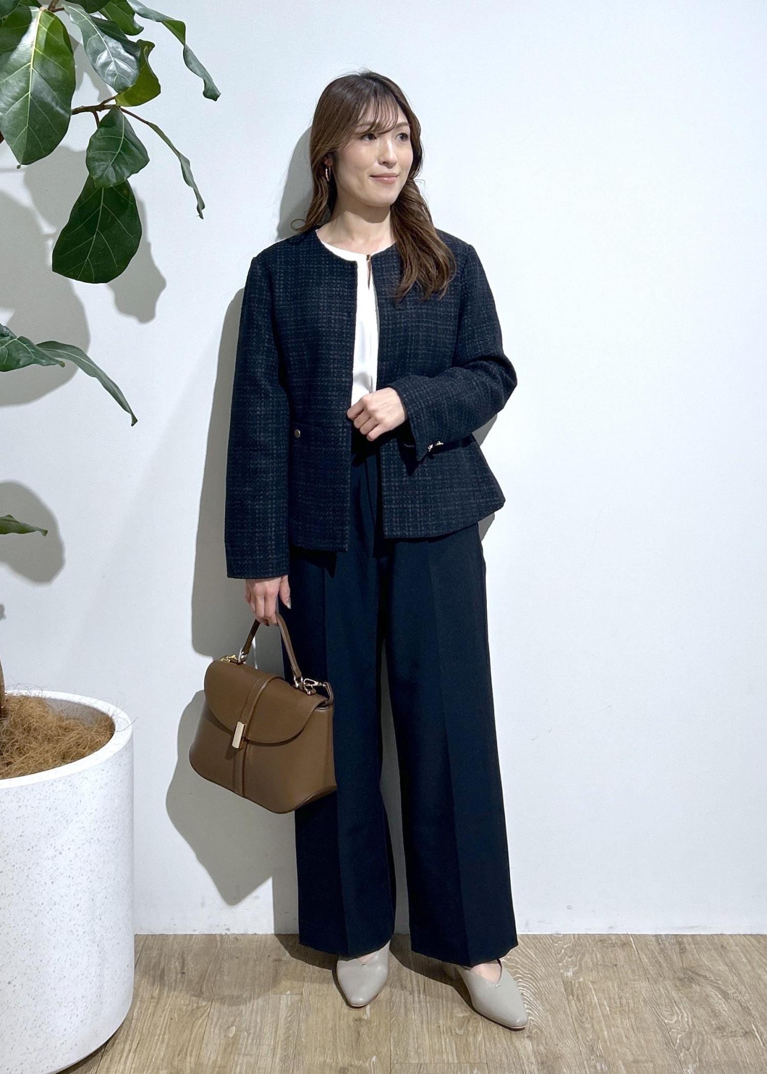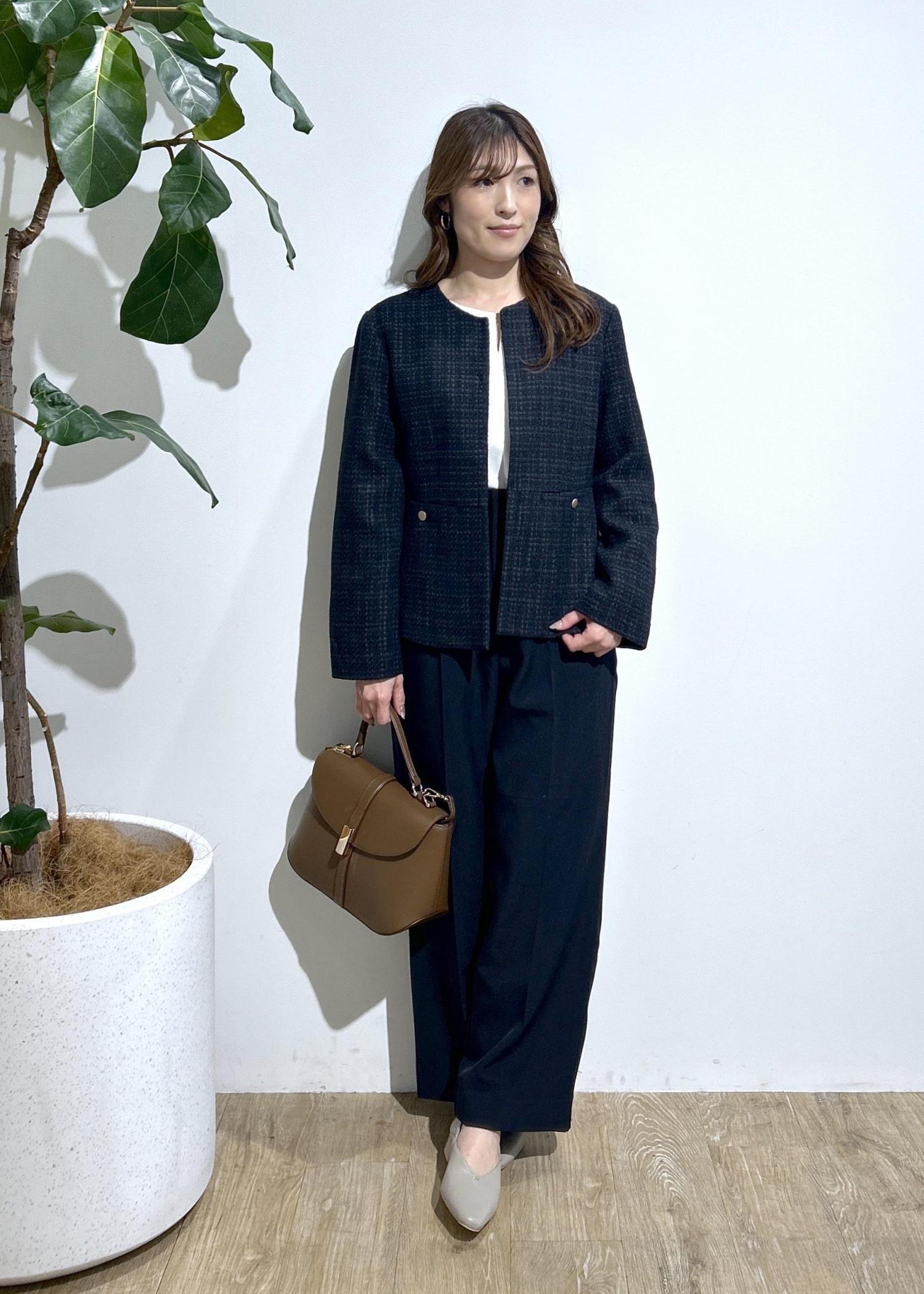 ツイードジャケットを使ってお仕事やセレモニーに合わせたスタイリングにしました。