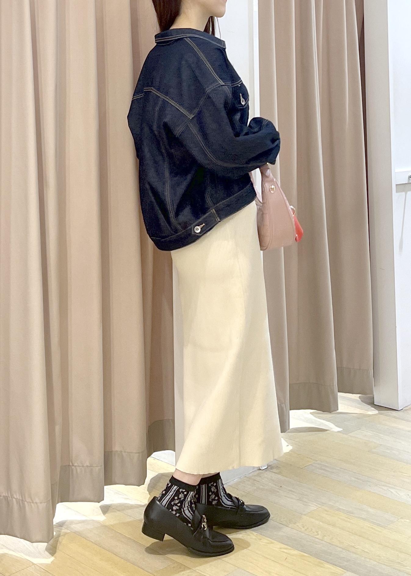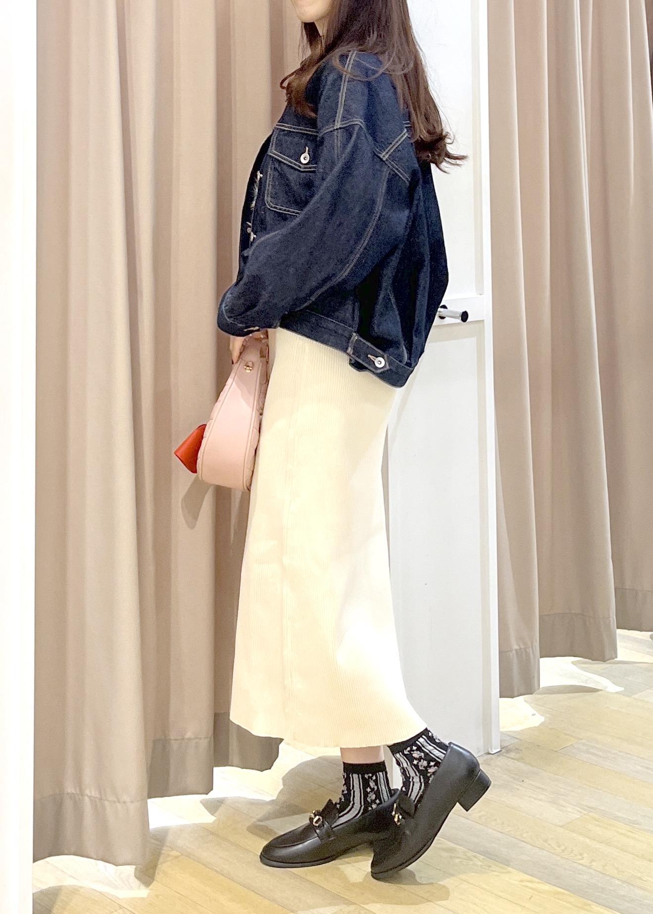 Gジャン×白ロングニットワンピの綺麗めカジュアルコーデ
