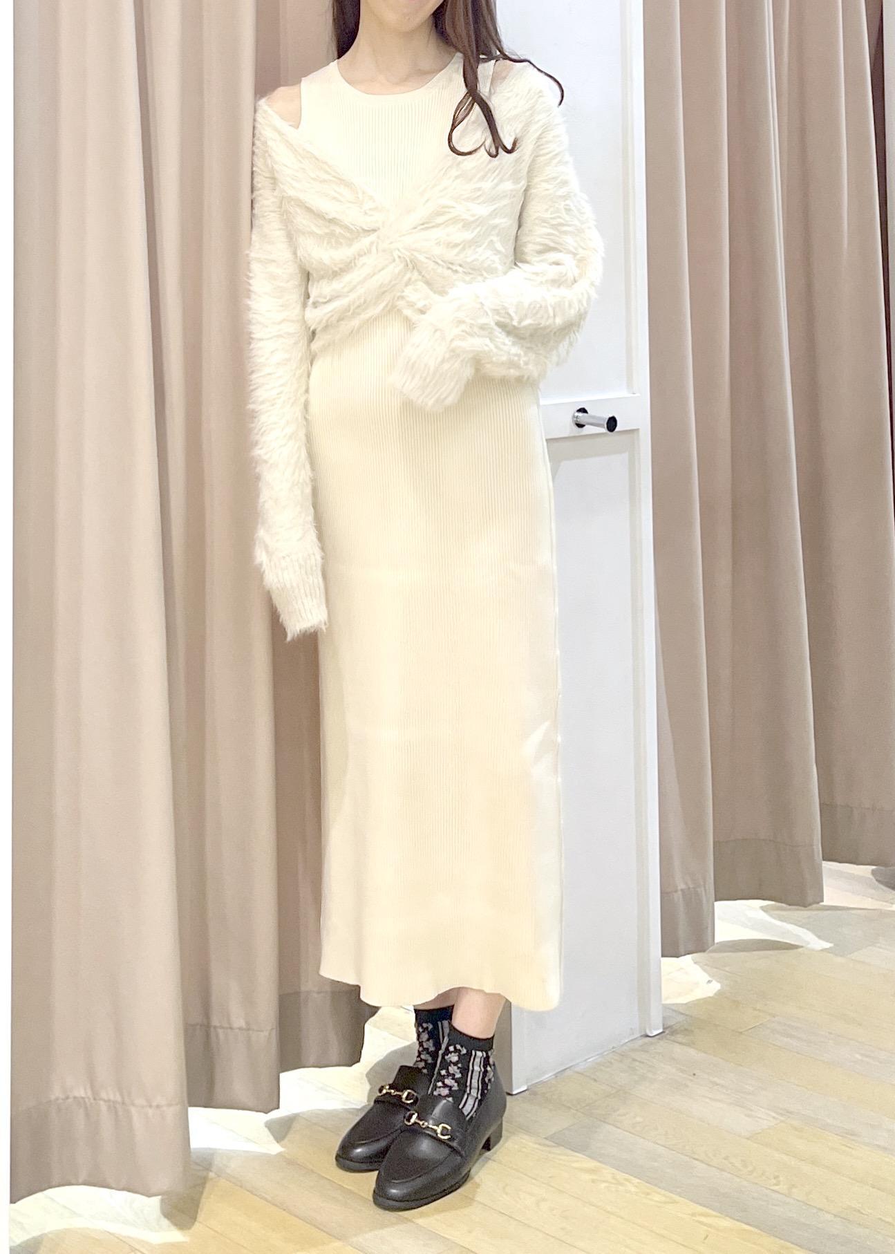 アウトレット 2BUY10%OFFVISねじりショートトップス付きロングニットワンピース/イージーケアキナリ / F¥5,000レビューねじりジャギーニットトップスとタンクニットワンピースのセットアイテムです。