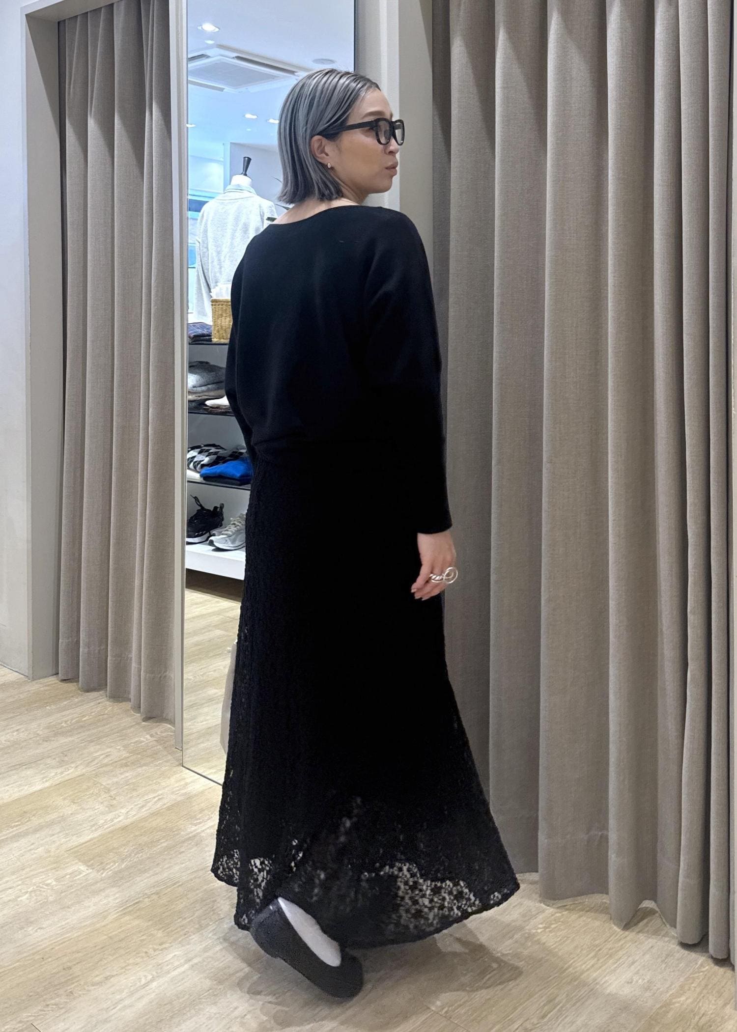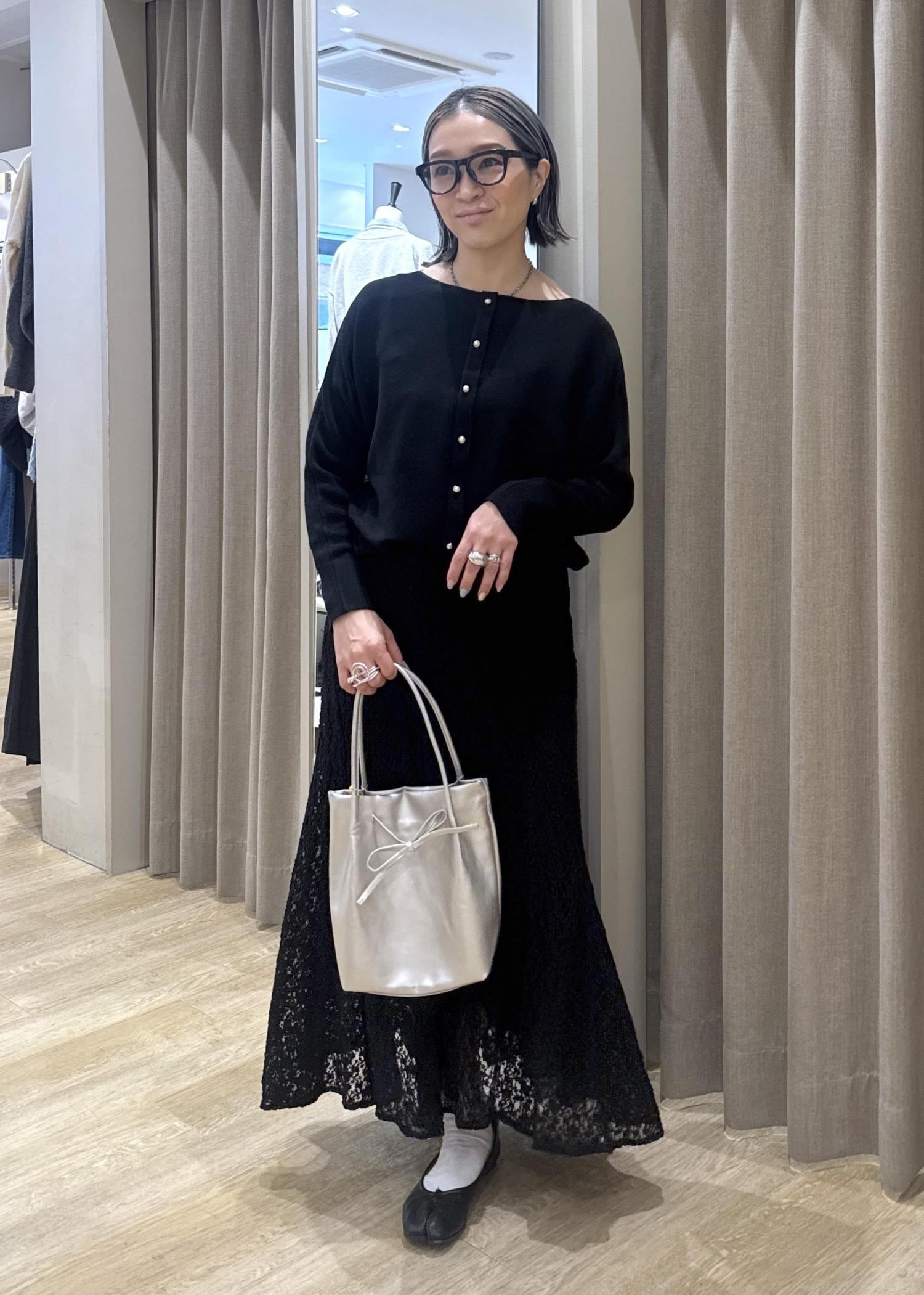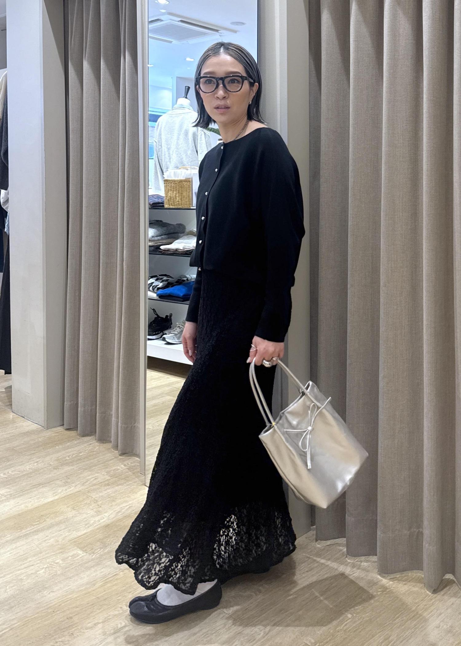 フェミニンが苦手な方は、一度このようにブラックのワントーンでレースアイテムを使ってみて下さい。