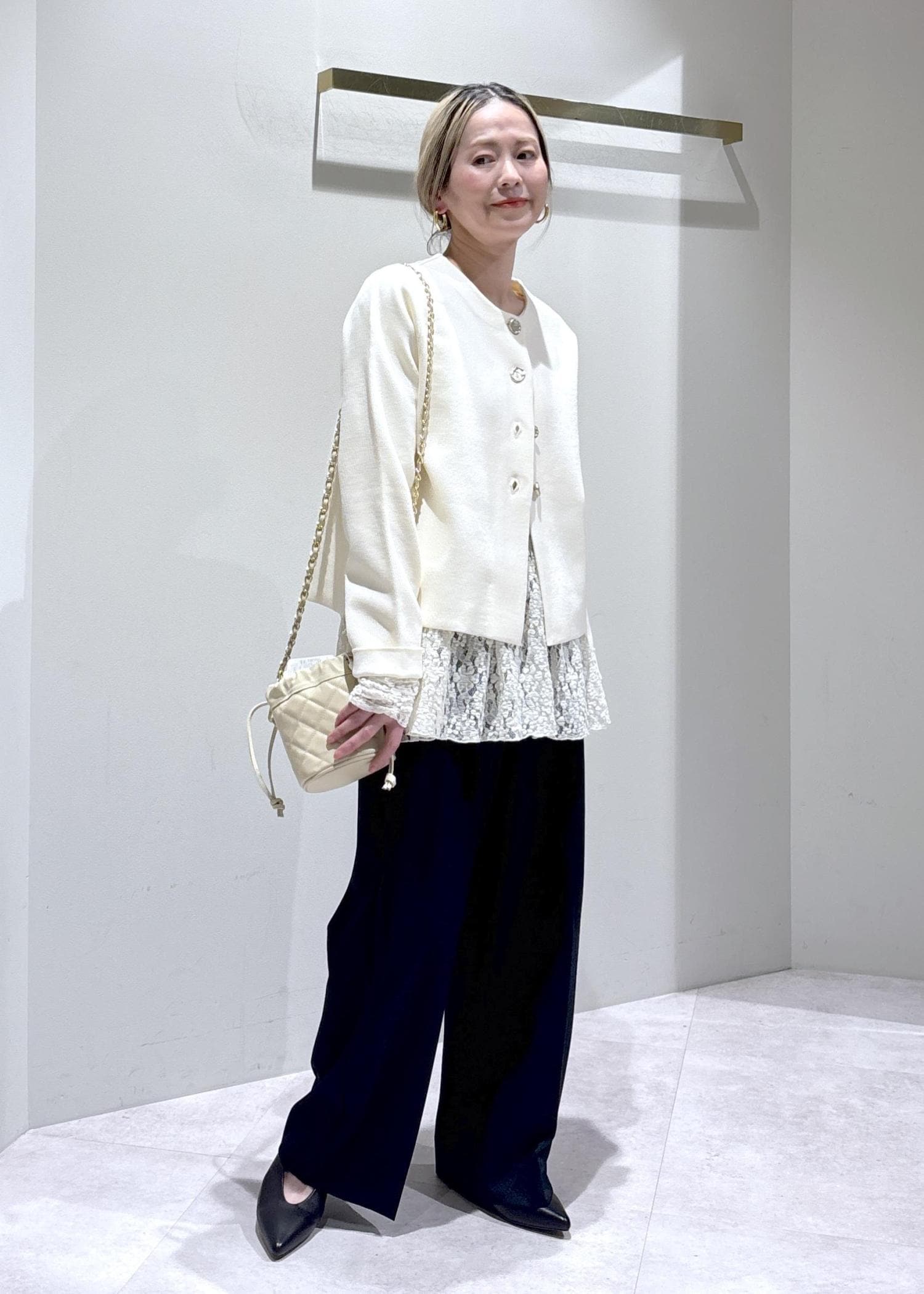 LE CERCLE par ropéメタルボタンカーディガンホワイト系 / F¥10,890レビュー程よくコンパクトなサイズ感ですが、袖まわりなどは程よくゆとりがあります。