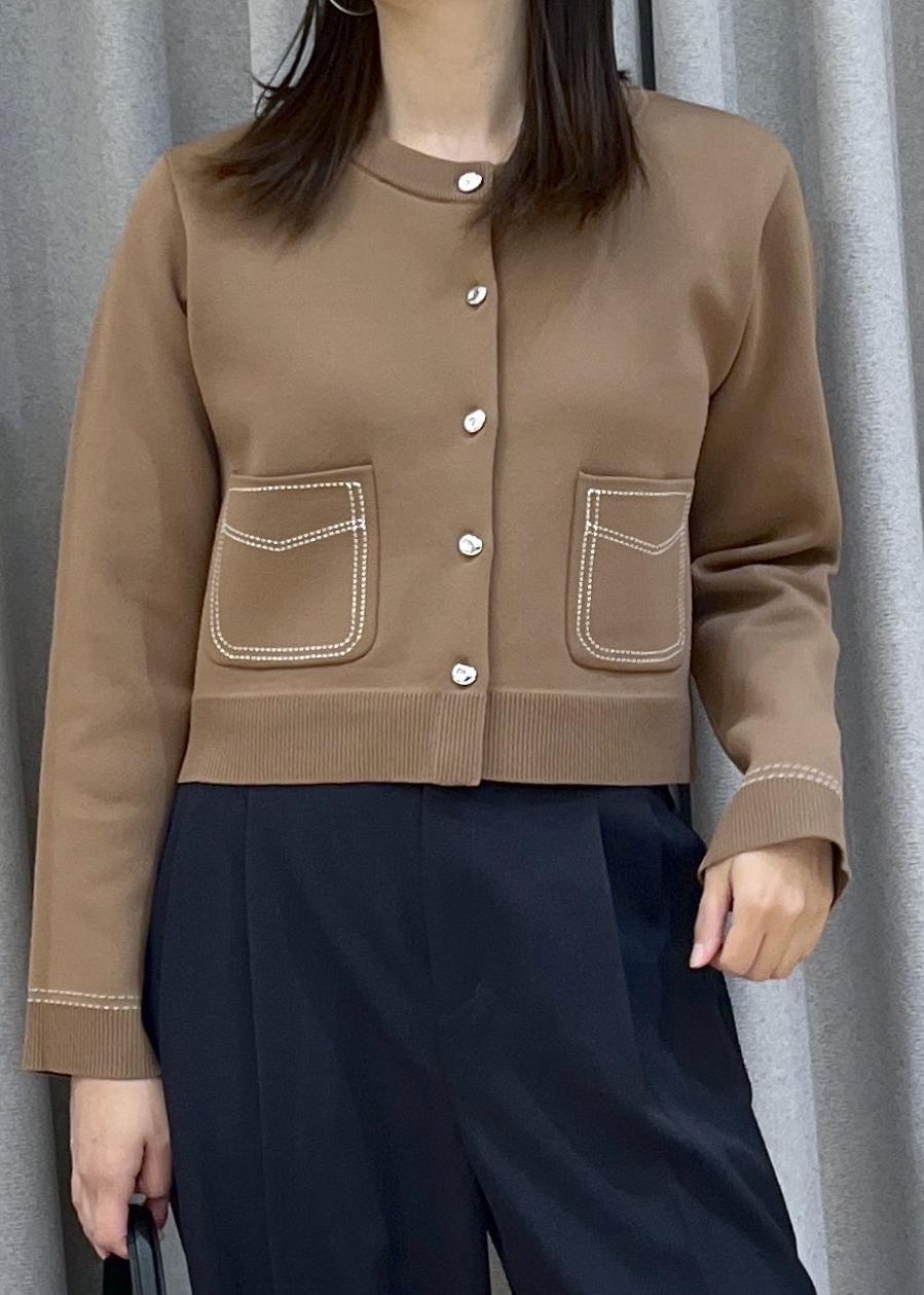 配色ステッチが映えるカーディガンに