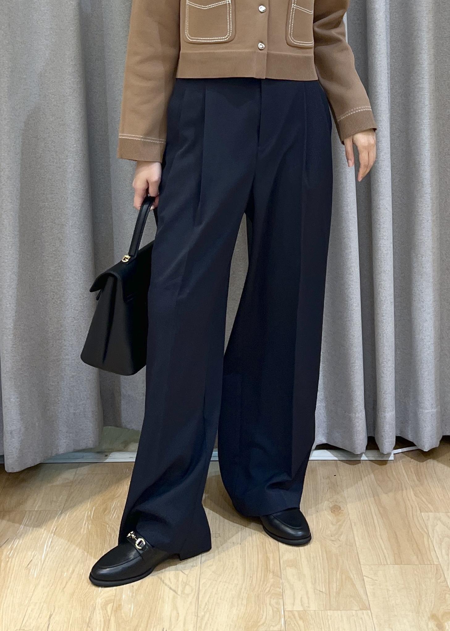 ワイドパンツを合わせた上品スタイルです!