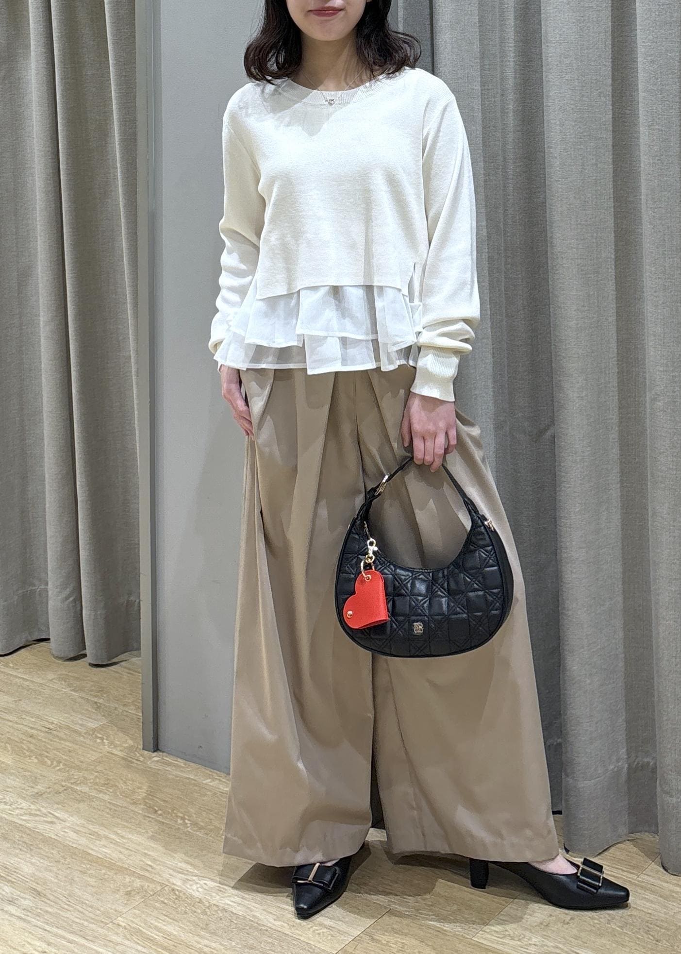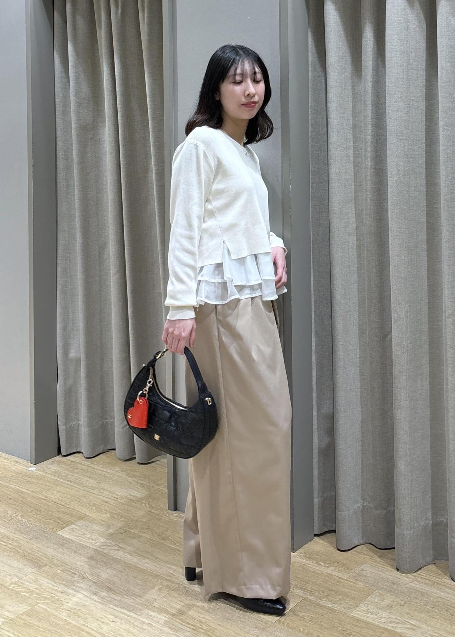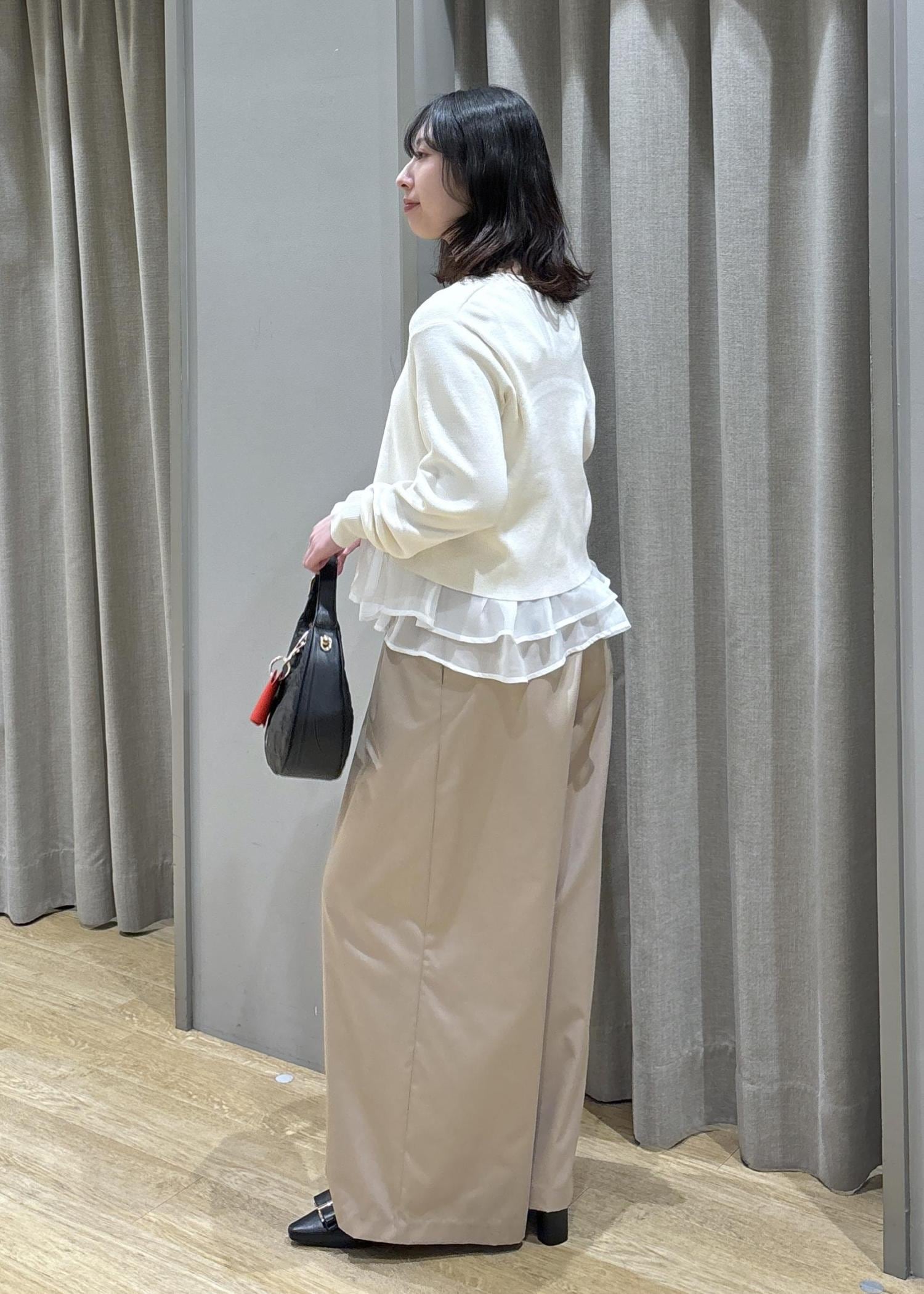 ペプラムオーガンジードッキングニット×フロントタックパンツ