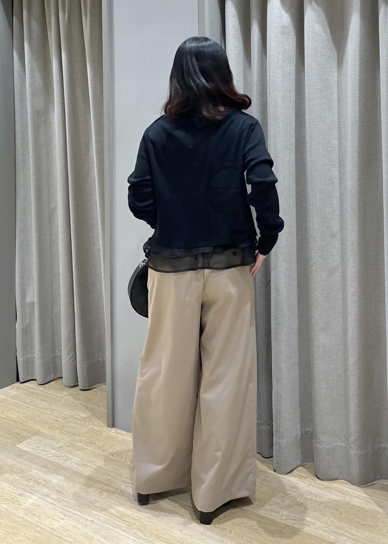 オーガンジードッキングニット×フロントタックパンツ