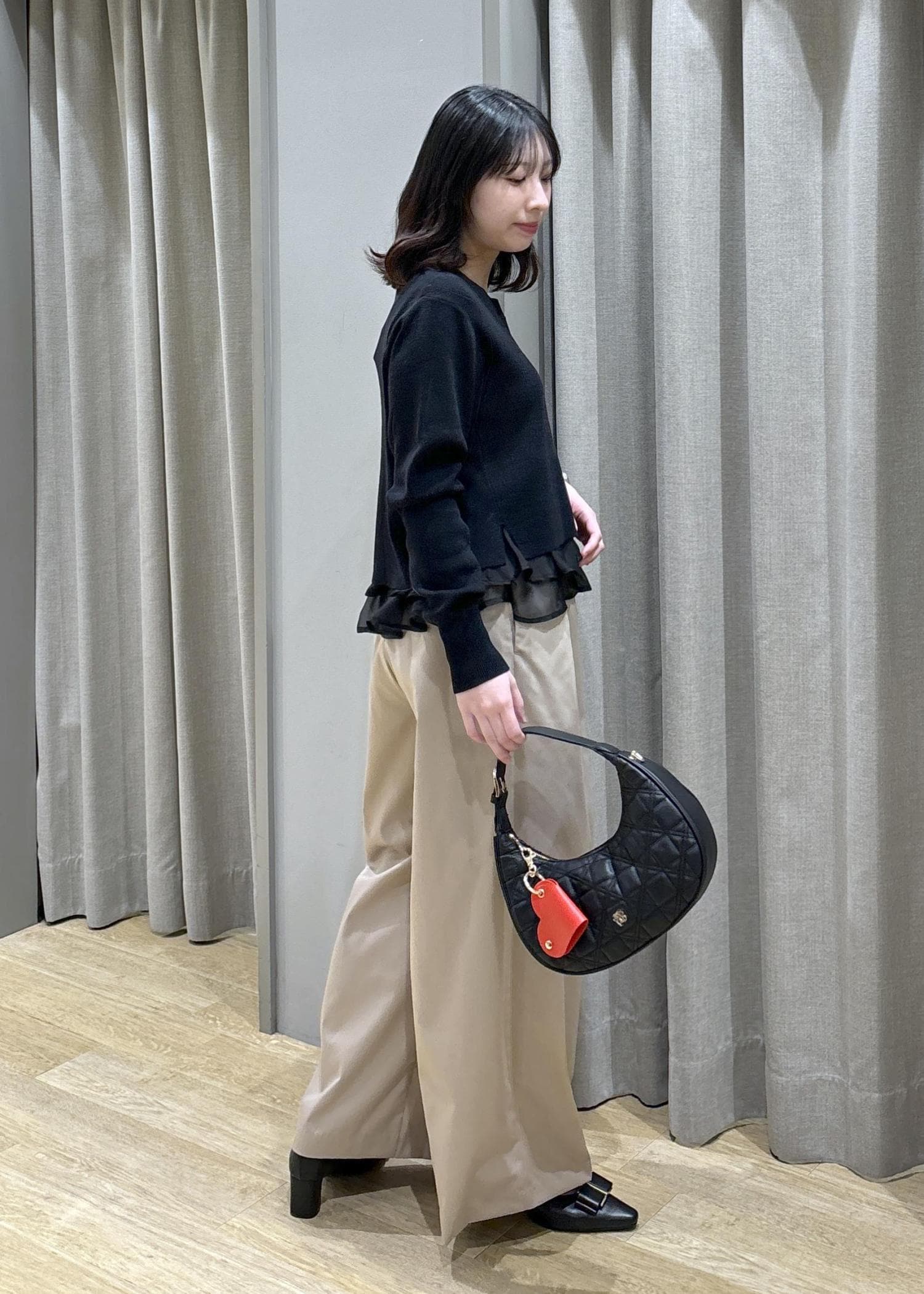 2BUY10%OFFVISハートチャーム付き2WAYキルトバッグブラック / F¥6,919レビューコンパクトに見えますが500mlのペットボトルが入るぐらいの使い勝手が良い大きさです!