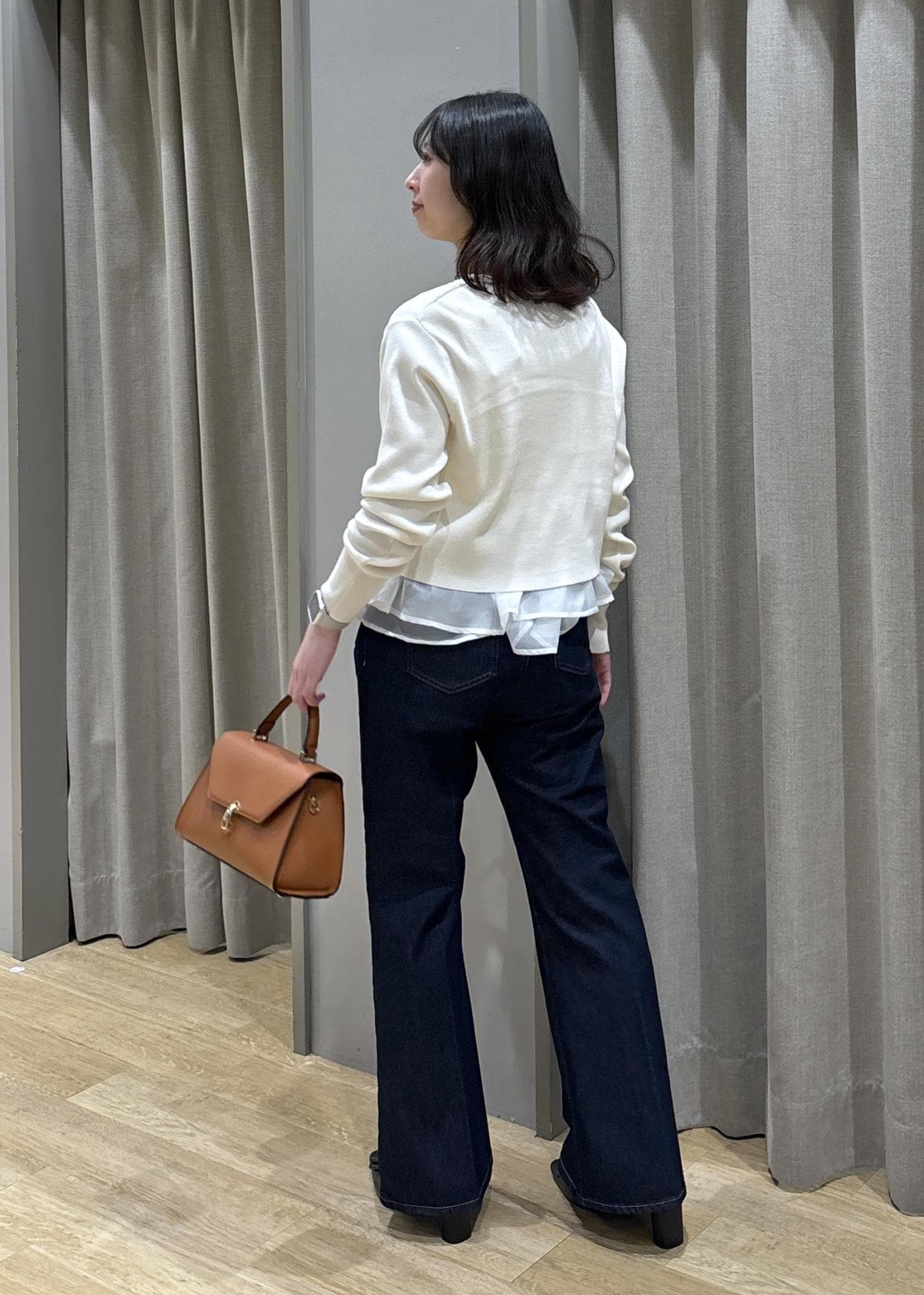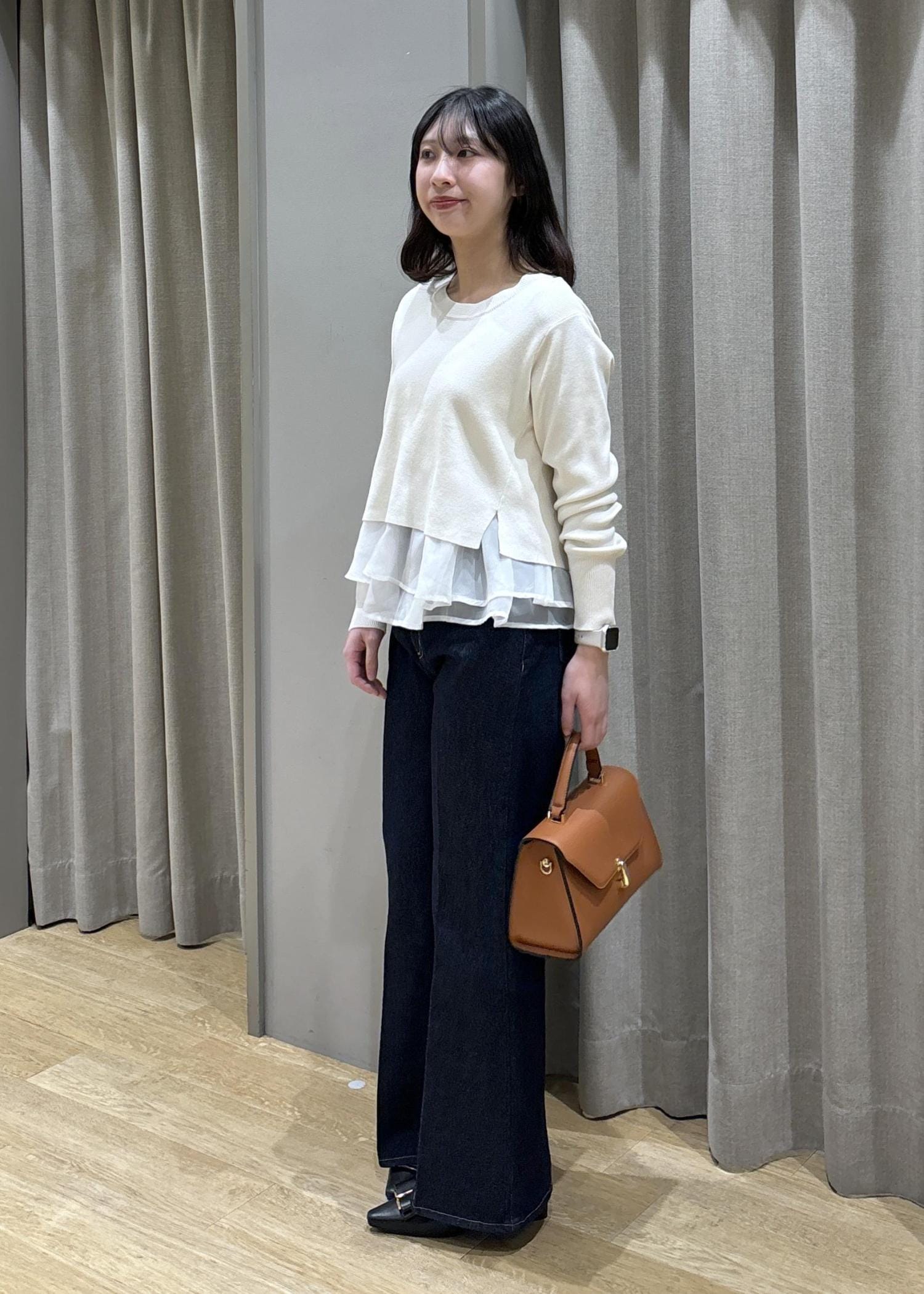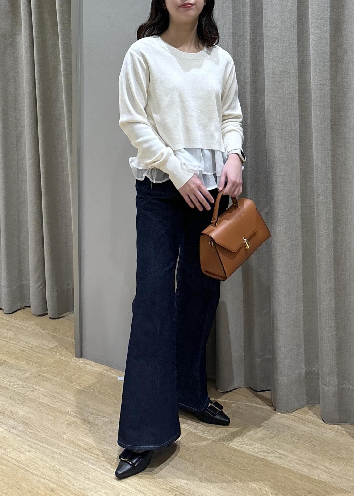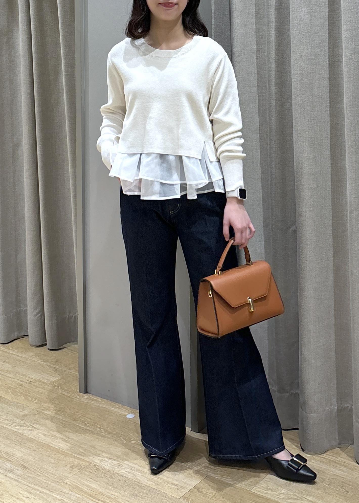 ペプラムオーガンジードッキングニット×フレアデニム
