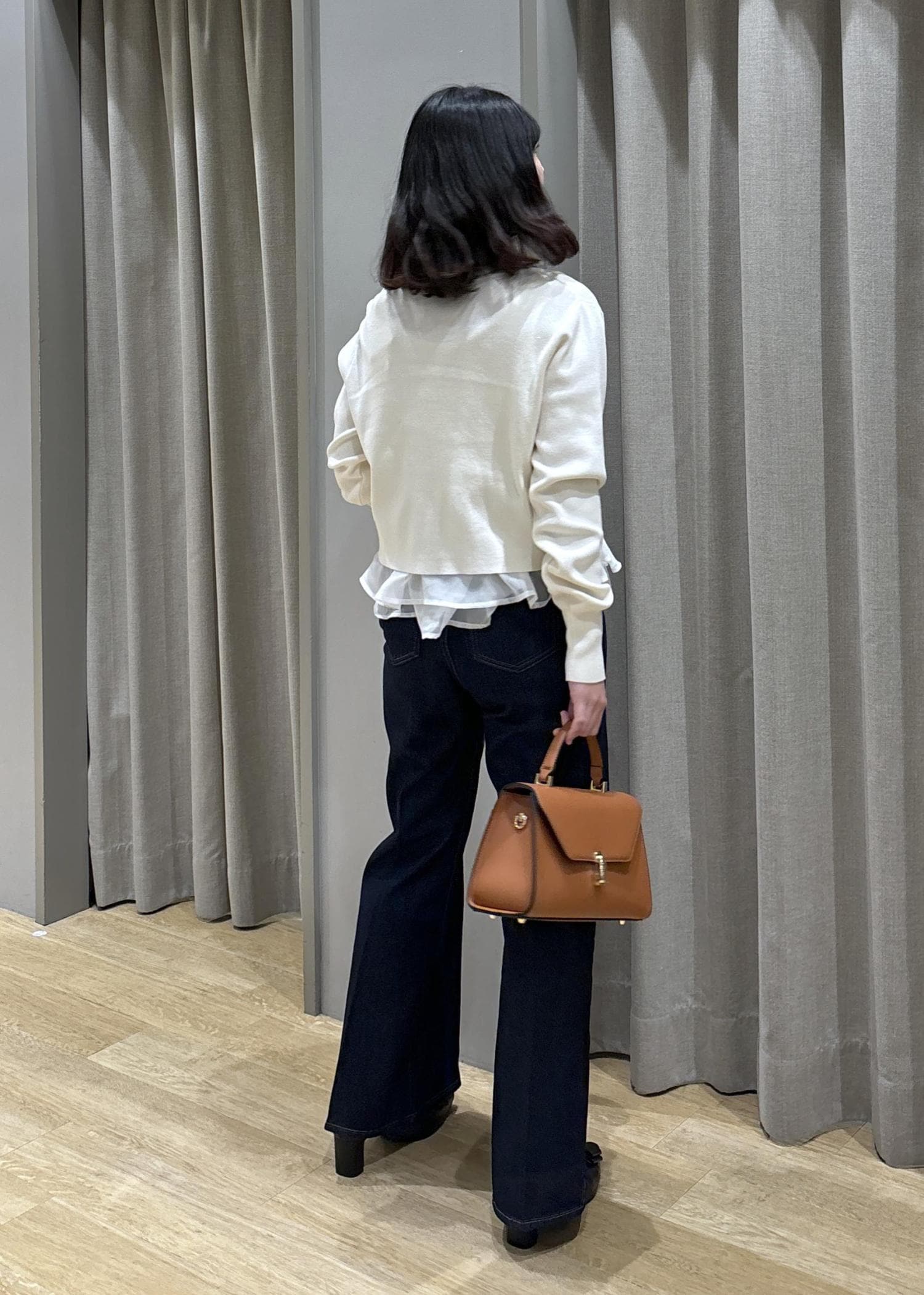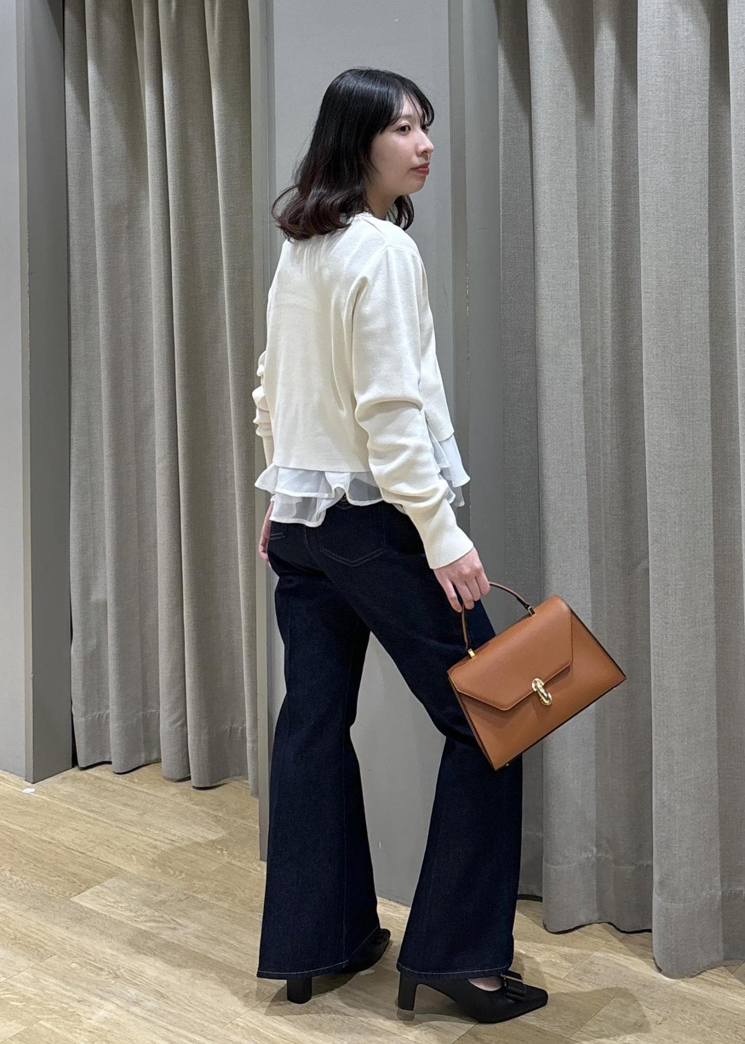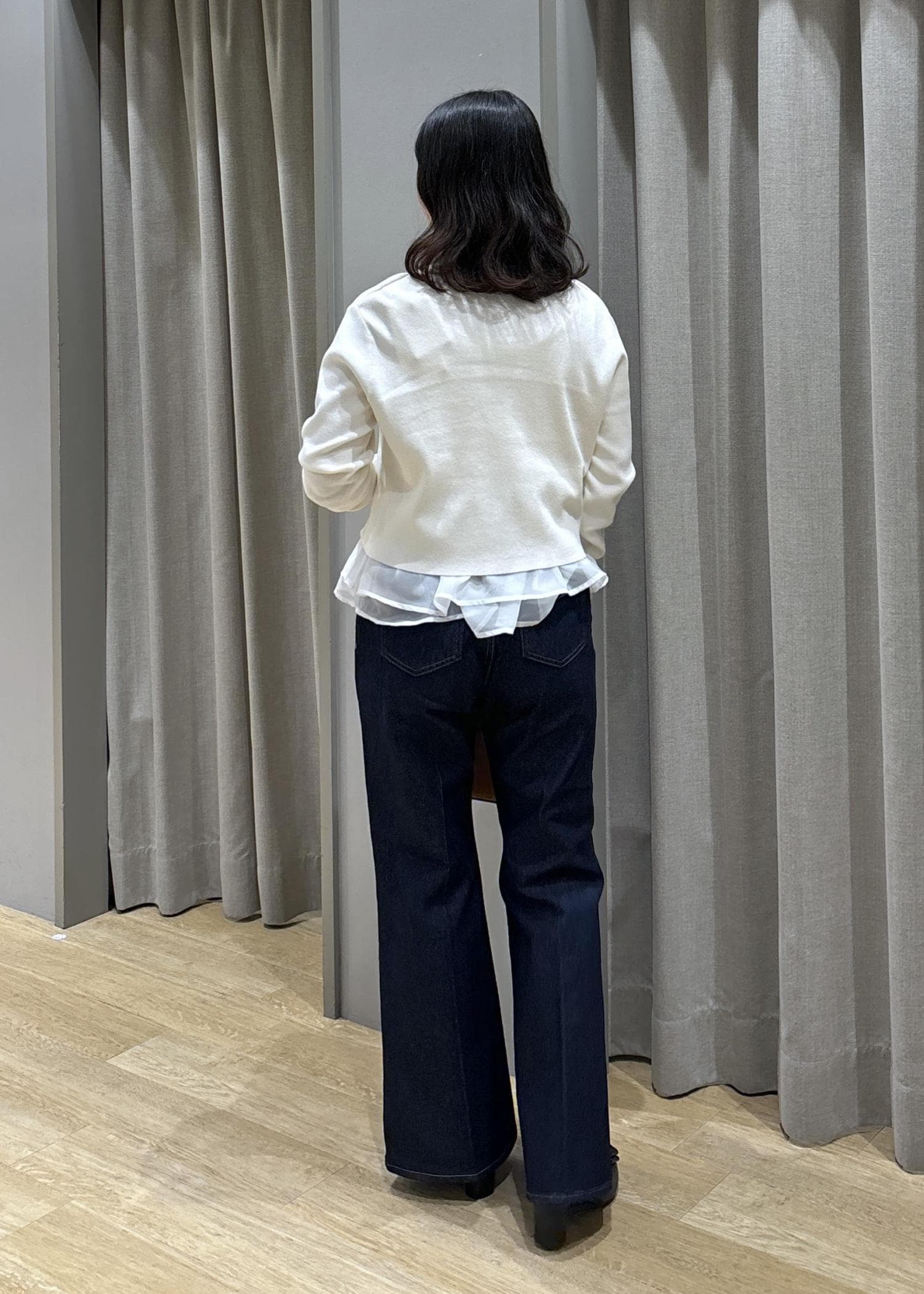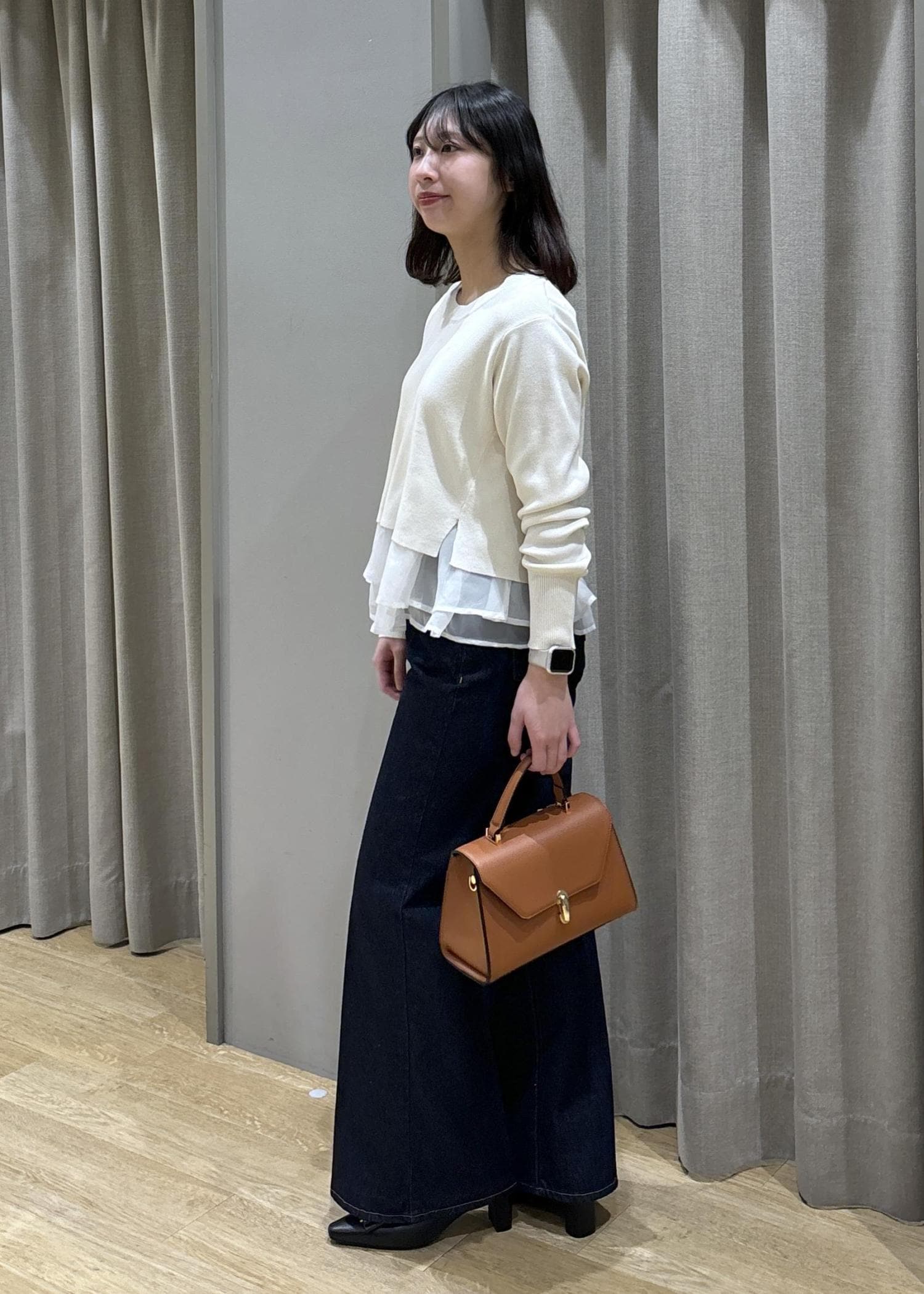 ペプラムオーガンジードッキングニット×フレアデニム
