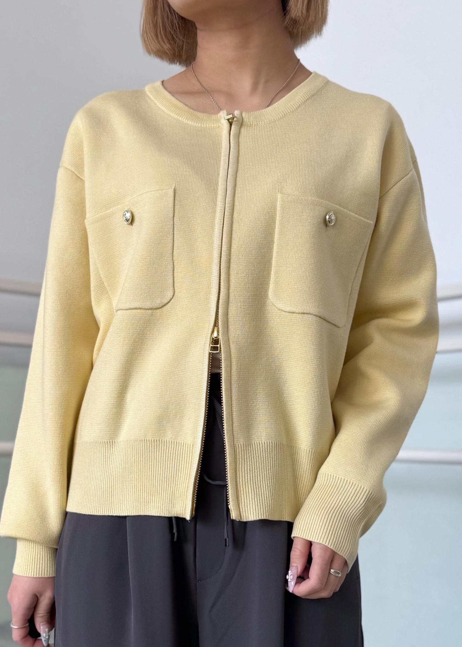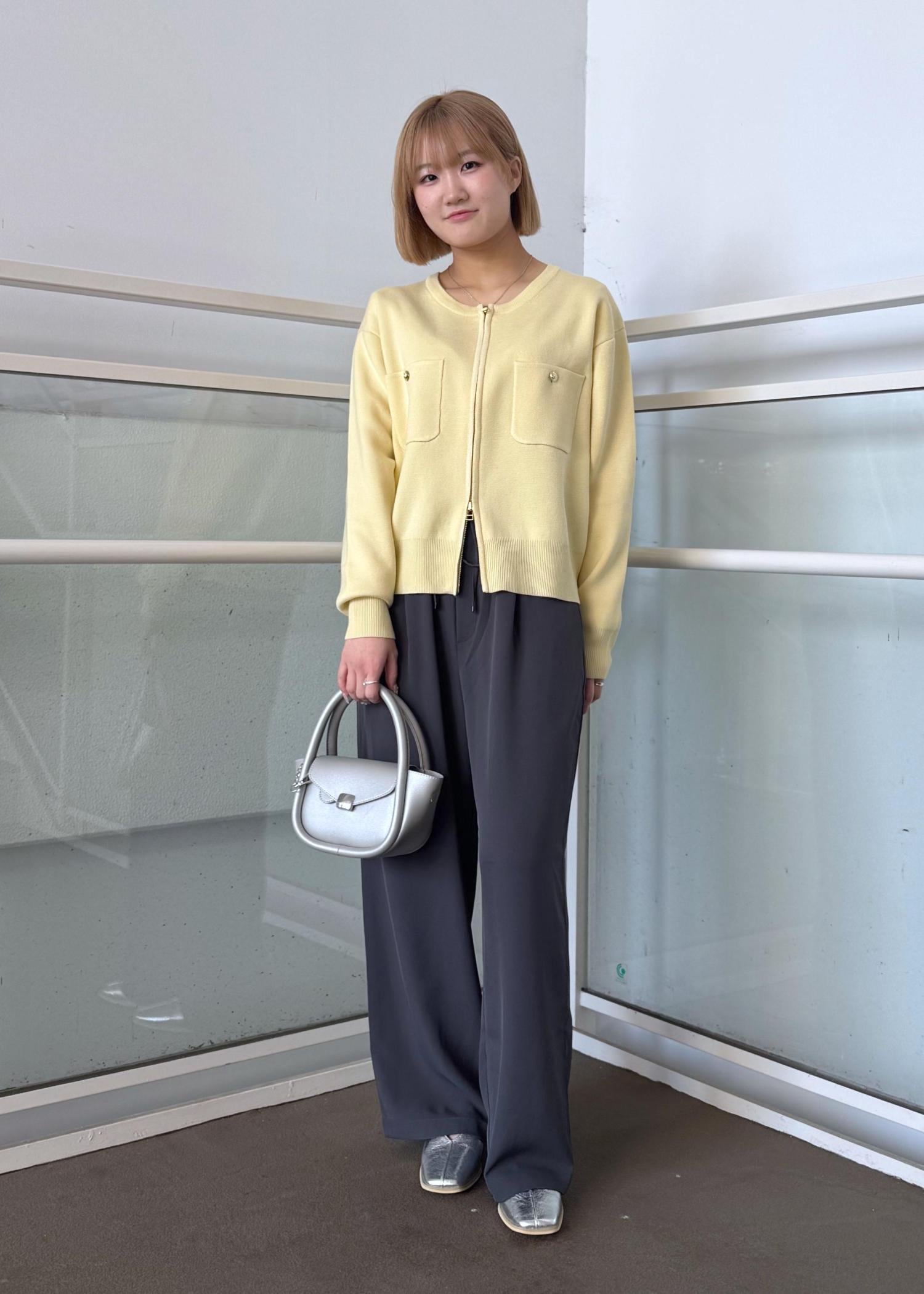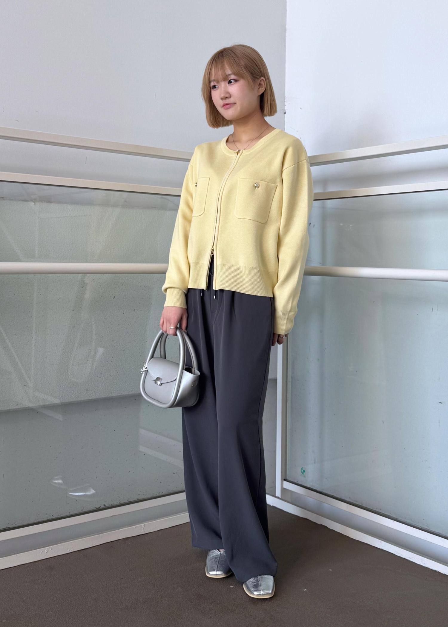ダブルジップニットカーディガンのカジュアルコーデ