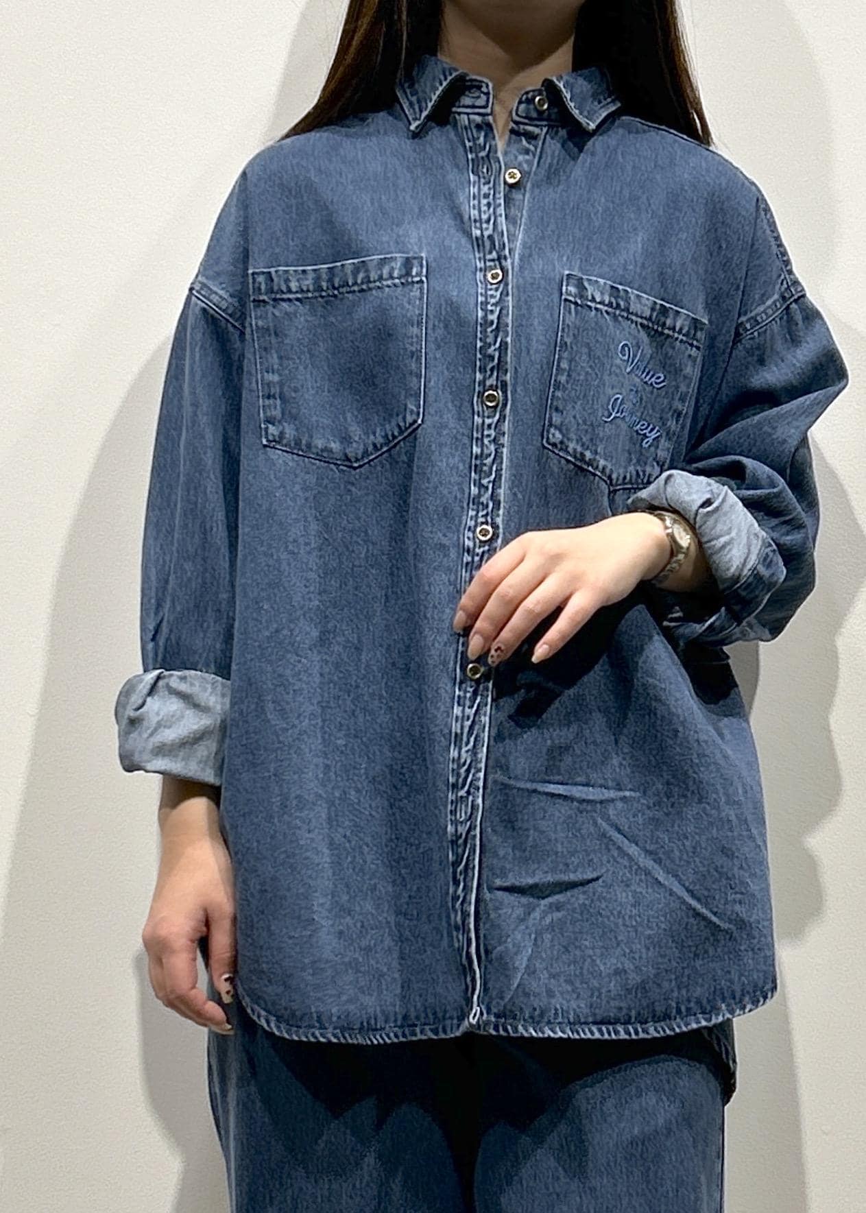2BUY10%OFFLE CERCLE par ropé刺繍入りデニムシャツ/セットアップ対応ネイビー系 / F¥8,690レビューしっかりした生地感で1枚着でも羽織としても使いやすいです!