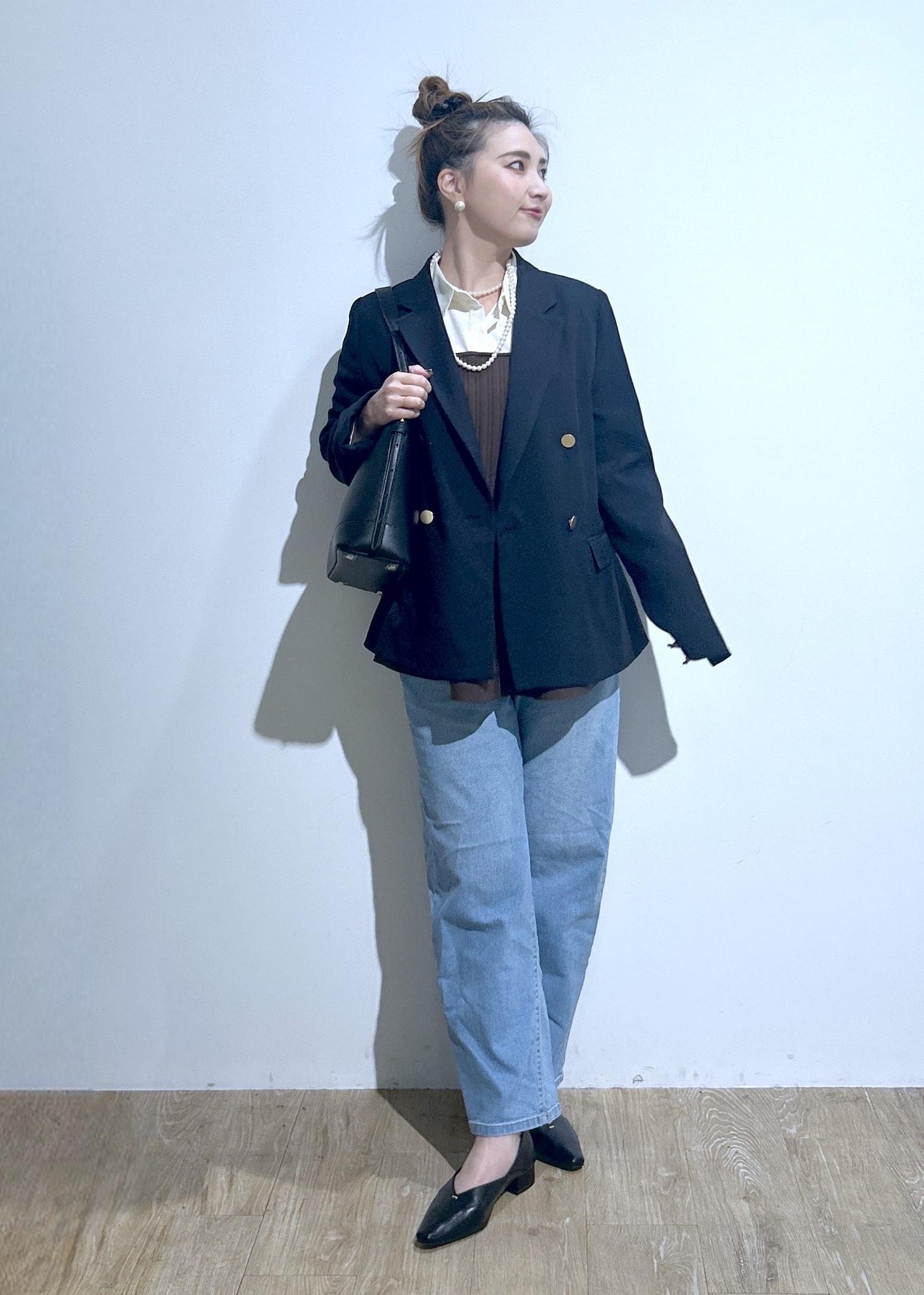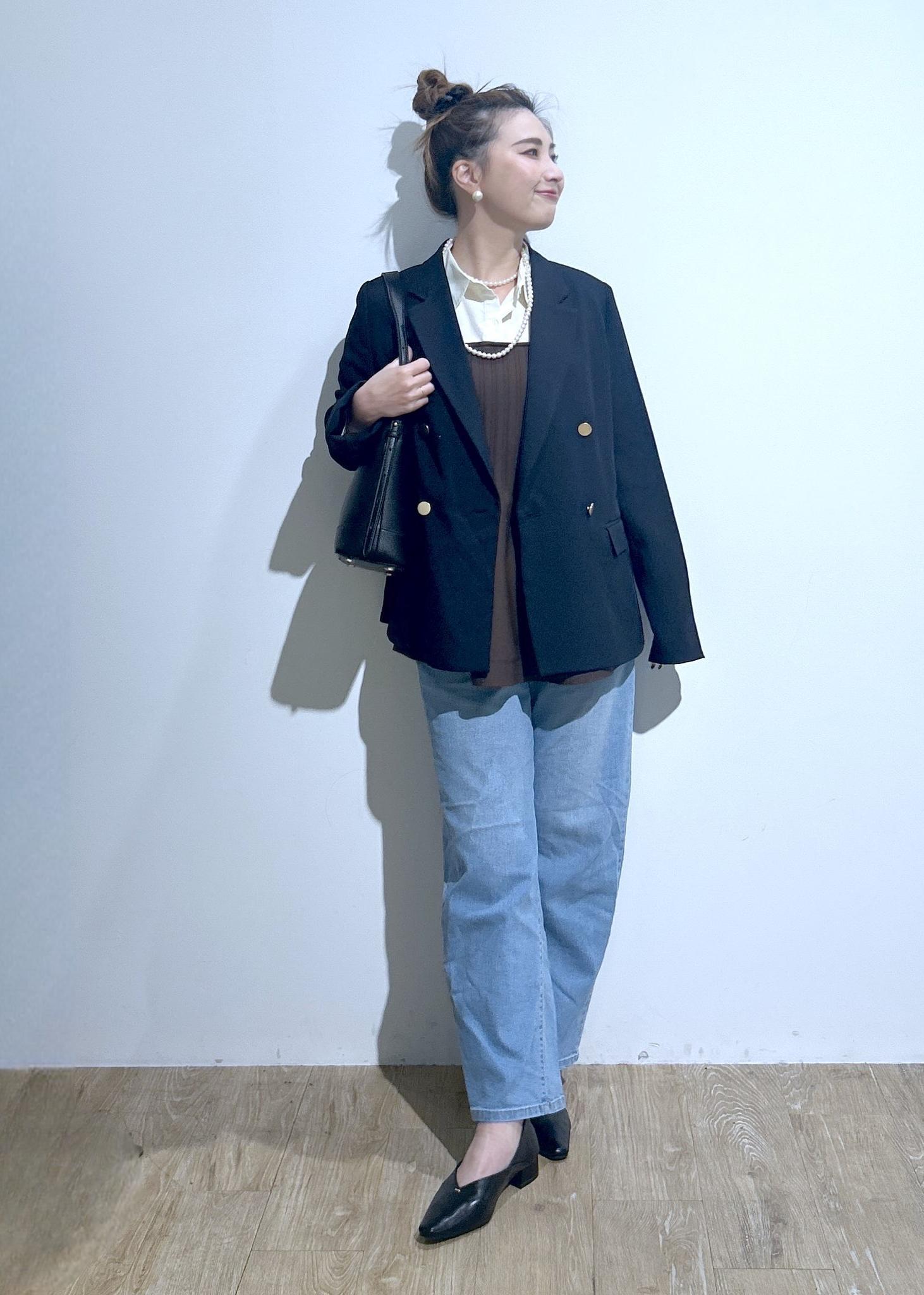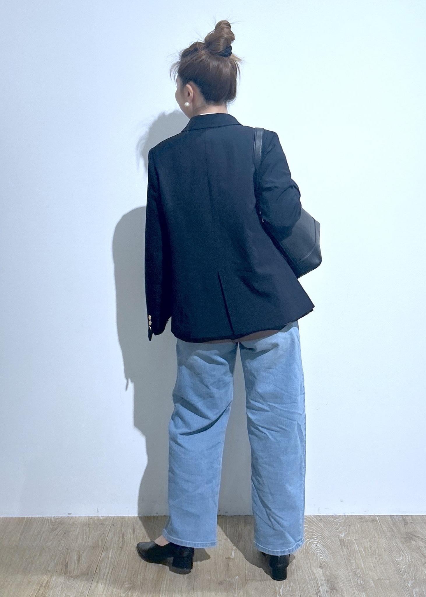 ジャケットにデニム合わせたカジュアルジャケットコーデ。