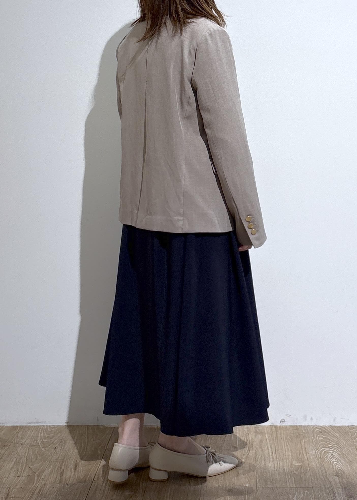 すとんと落ち感のある素材なので、広がり過ぎず大人っぽくスタイリングできます。