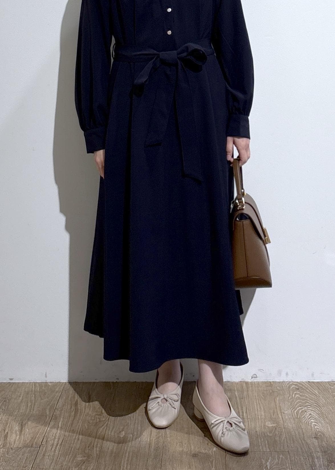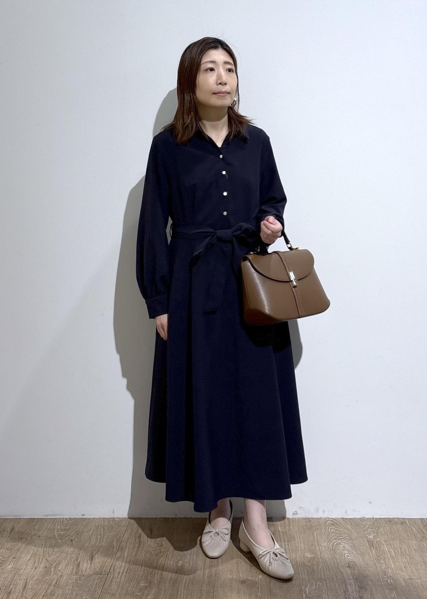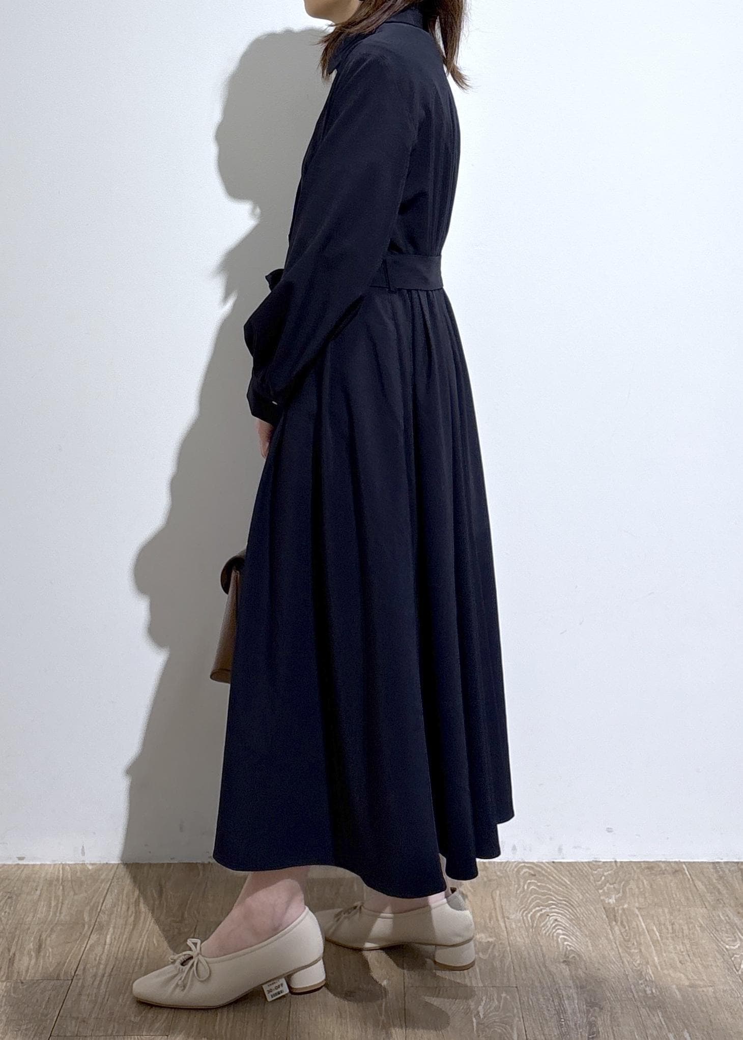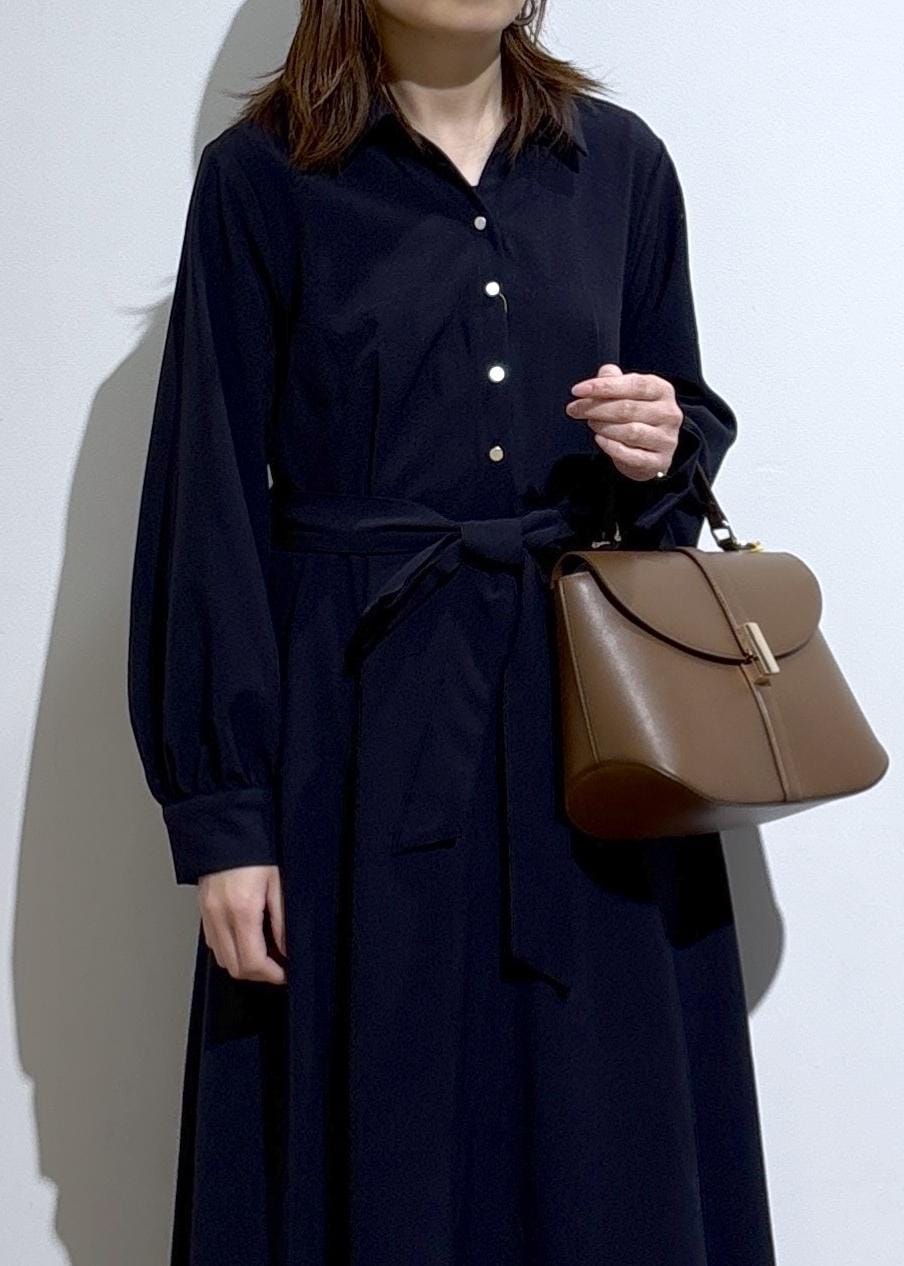 セレモニーや通勤スタイルにも使える、上品なシャツワンピース。