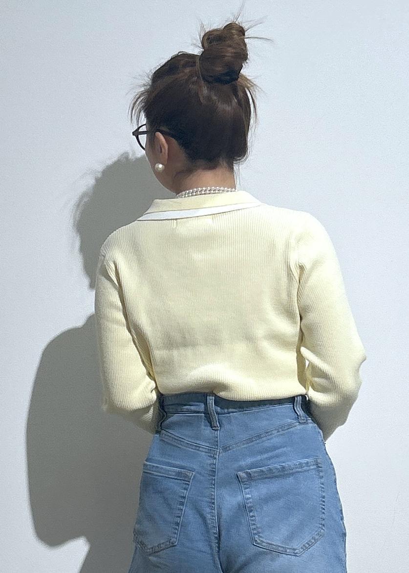 春らしいイエローカラーが気持ちを明るくしてくれます。袖口・裾・襟などバイカラーで可愛いです♡