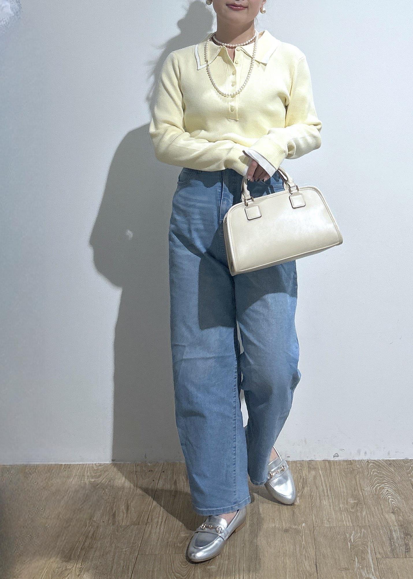 ポロシャツ風リブニット×デニム♪
